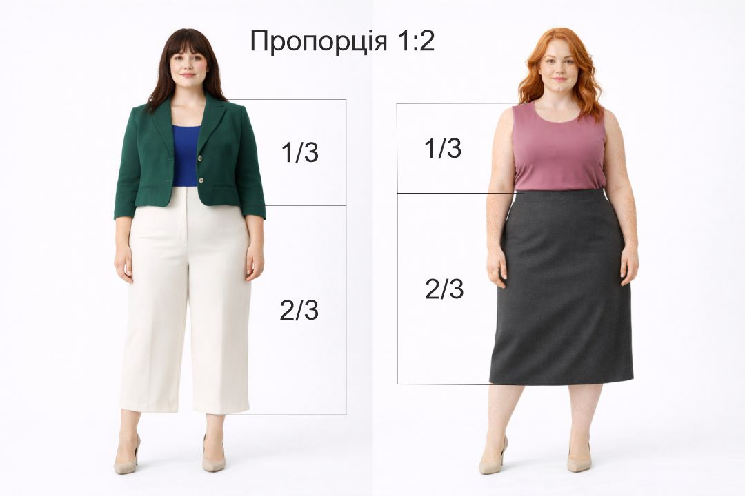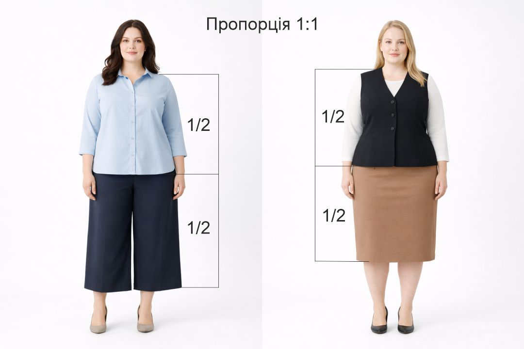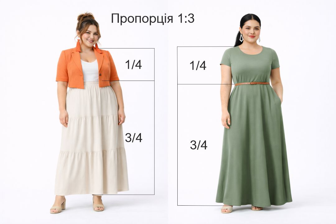 Пропорції — це те, як ми ділимо фігуру одягом на частини: де закінчується верх, де починається низ, на якій висоті “стоїть” талія, і в якій точці око зчитує перехід між верхом і низом.