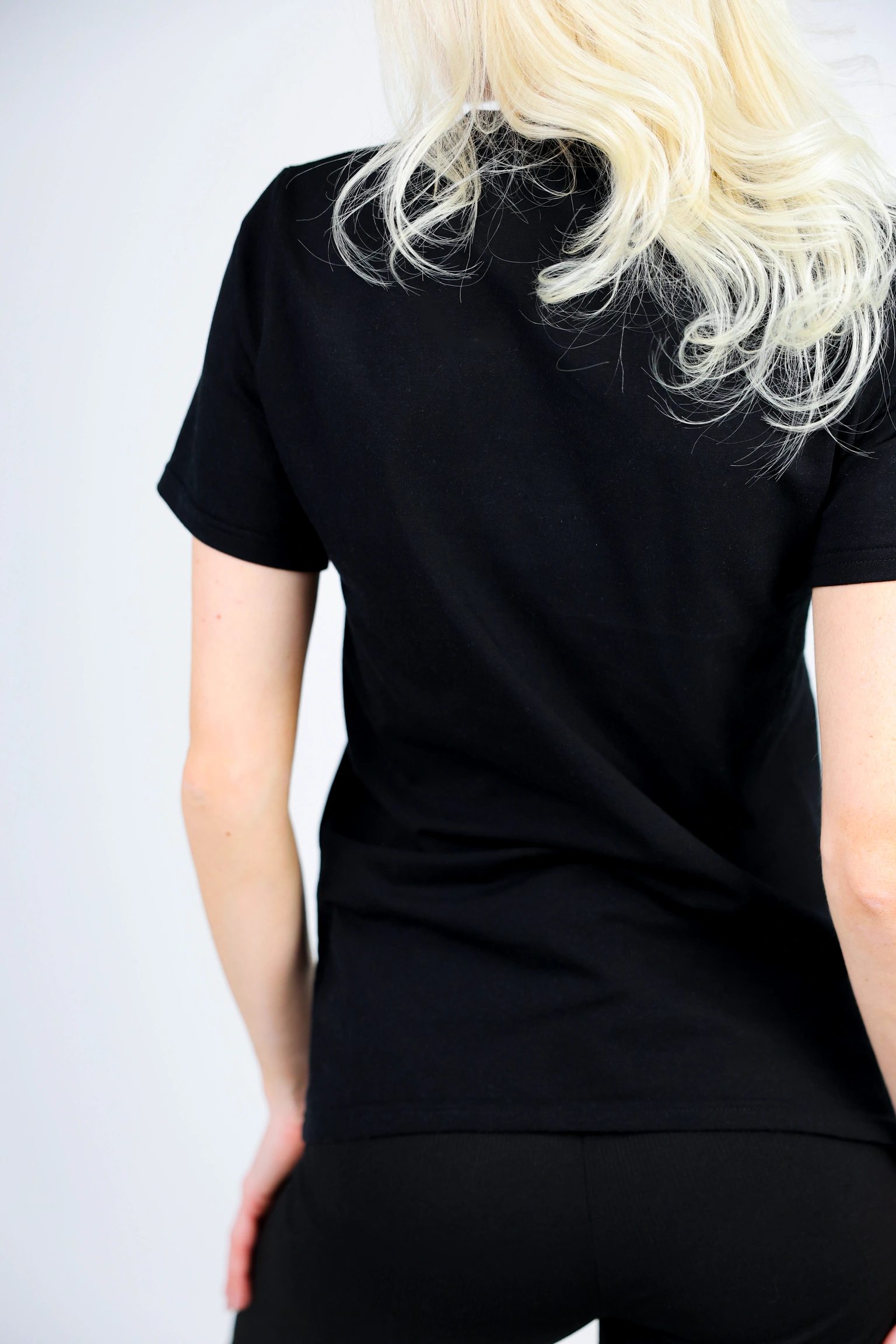 • Під джинсовку/косуху/жакет — ця футболка не “губиться”, бо виріз формує чітку лінію.