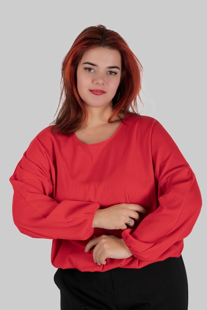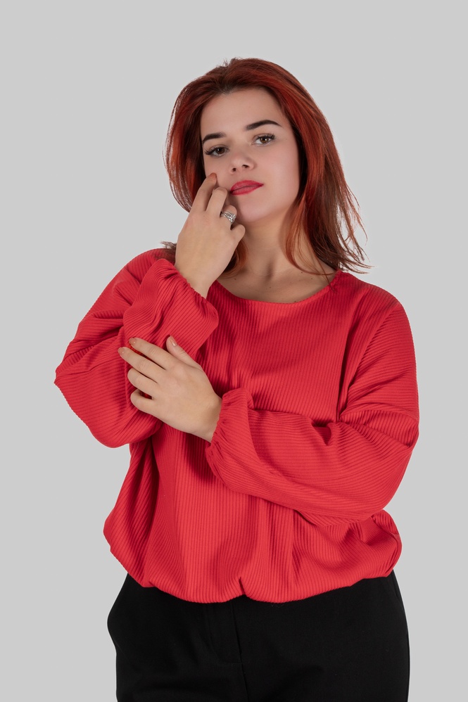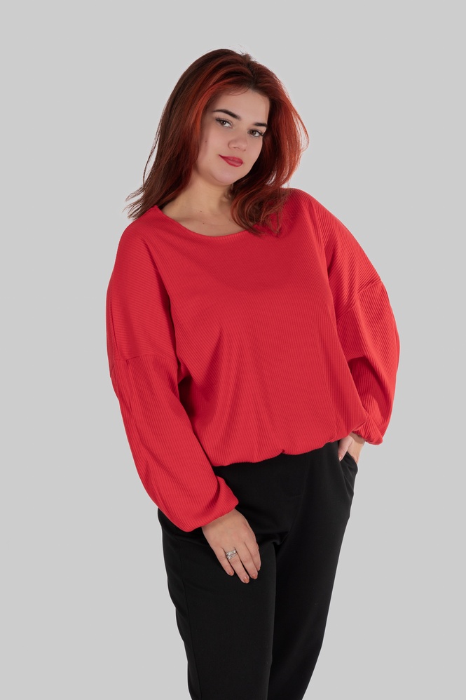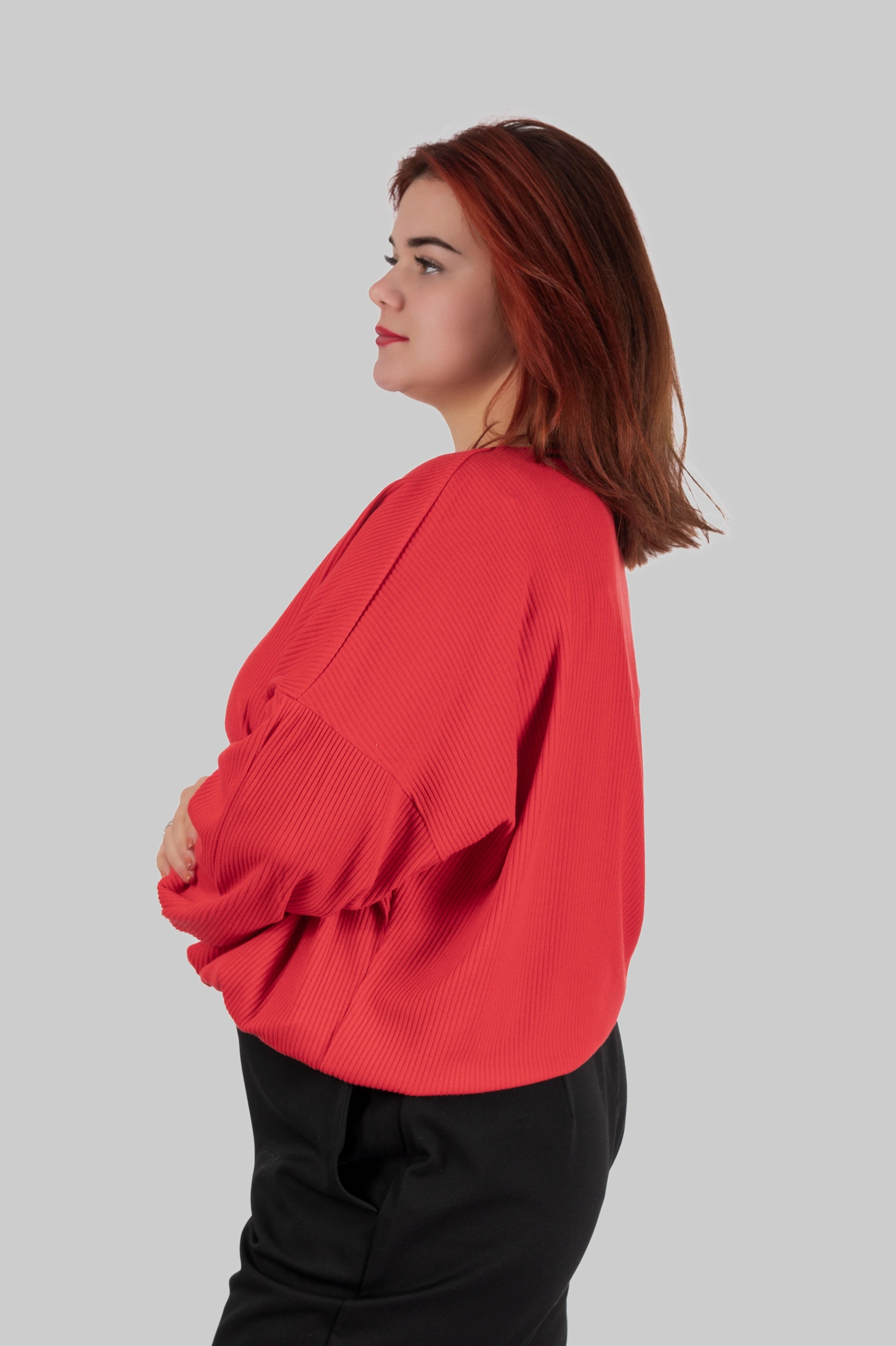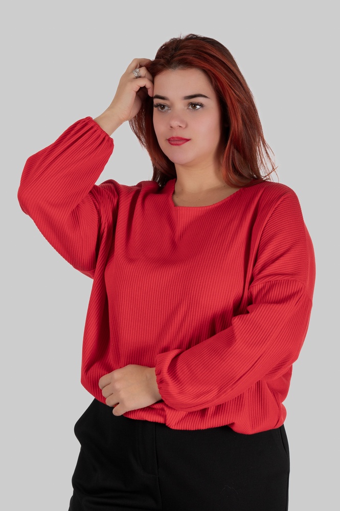 Джемпер має вільний силует із рукавом типу «летюча мишка», тому модель комфортно сідає в зоні плечей та рук і не обмежує рухи. М’який трикотаж у рубчик добре адаптується до фігури та не обтягує активні зони.