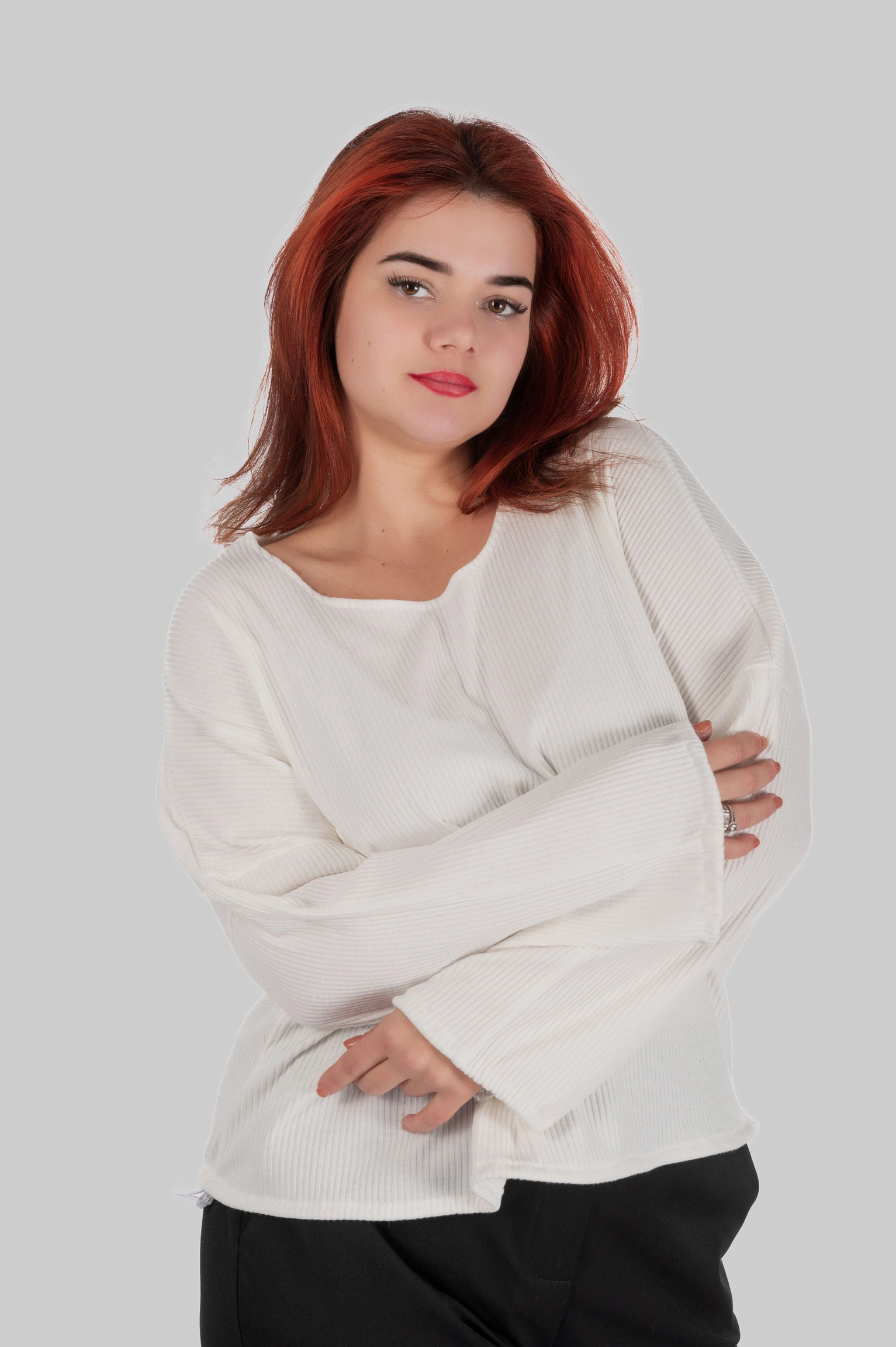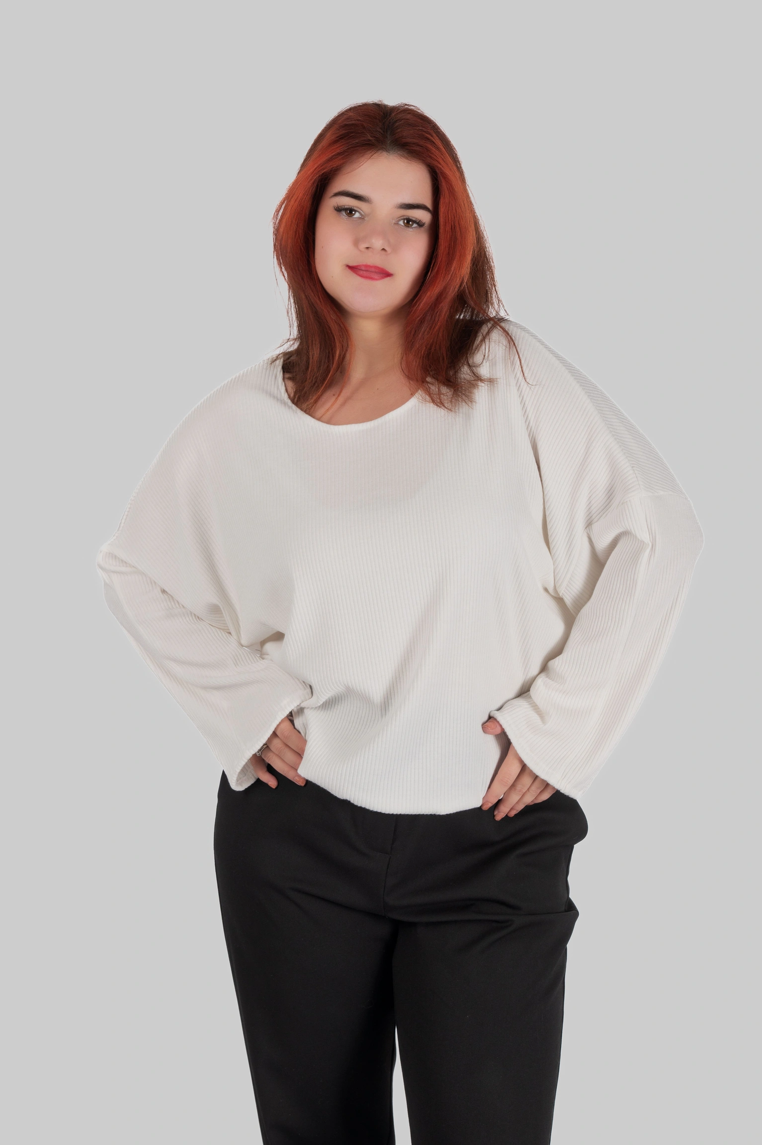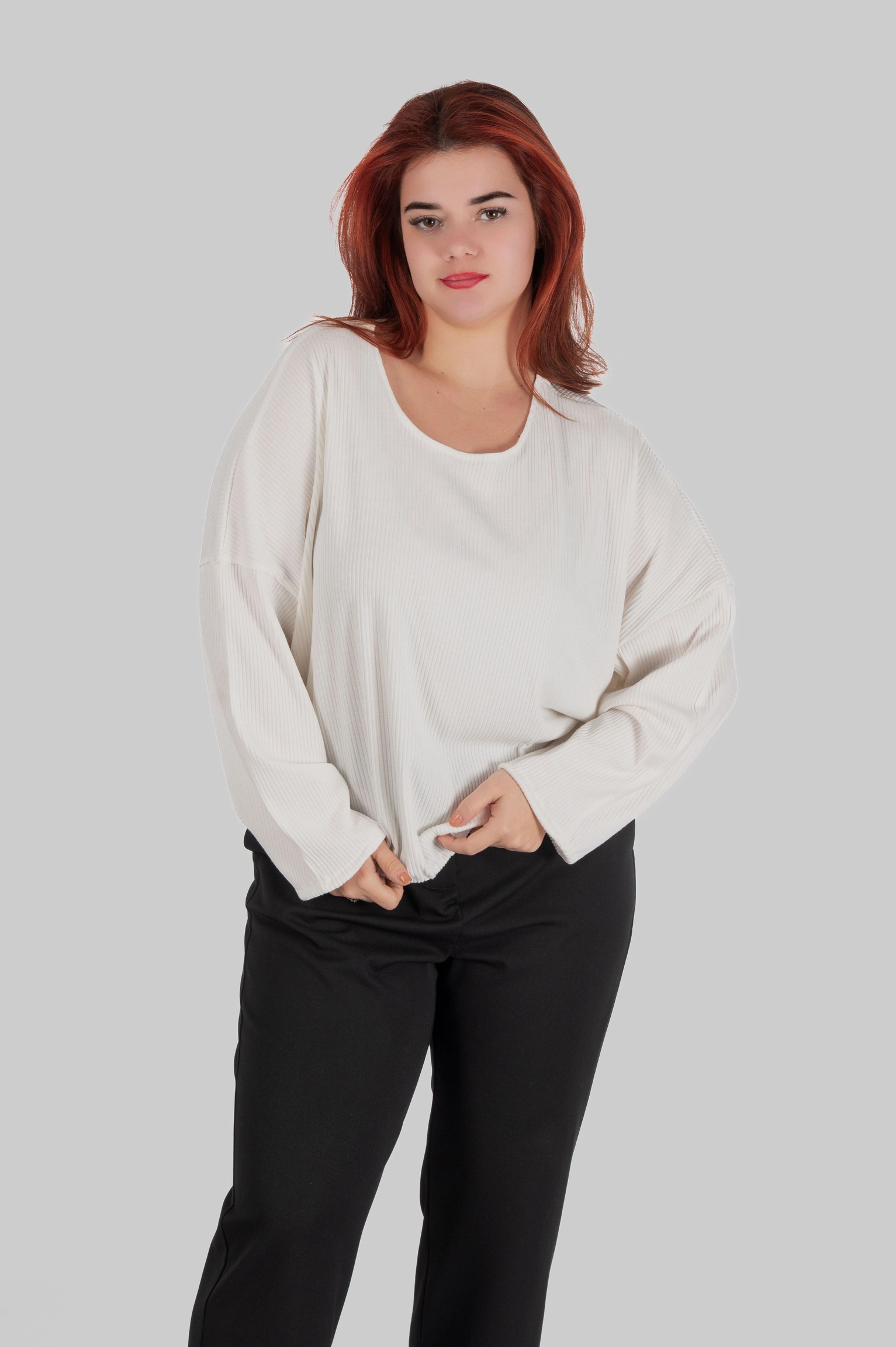 Напівприталений крій забезпечує баланс між комфортом і візуальною зібраністю. Горловина середньої глибини адаптована для носіння як самостійно, так і в багатошарових поєднаннях.