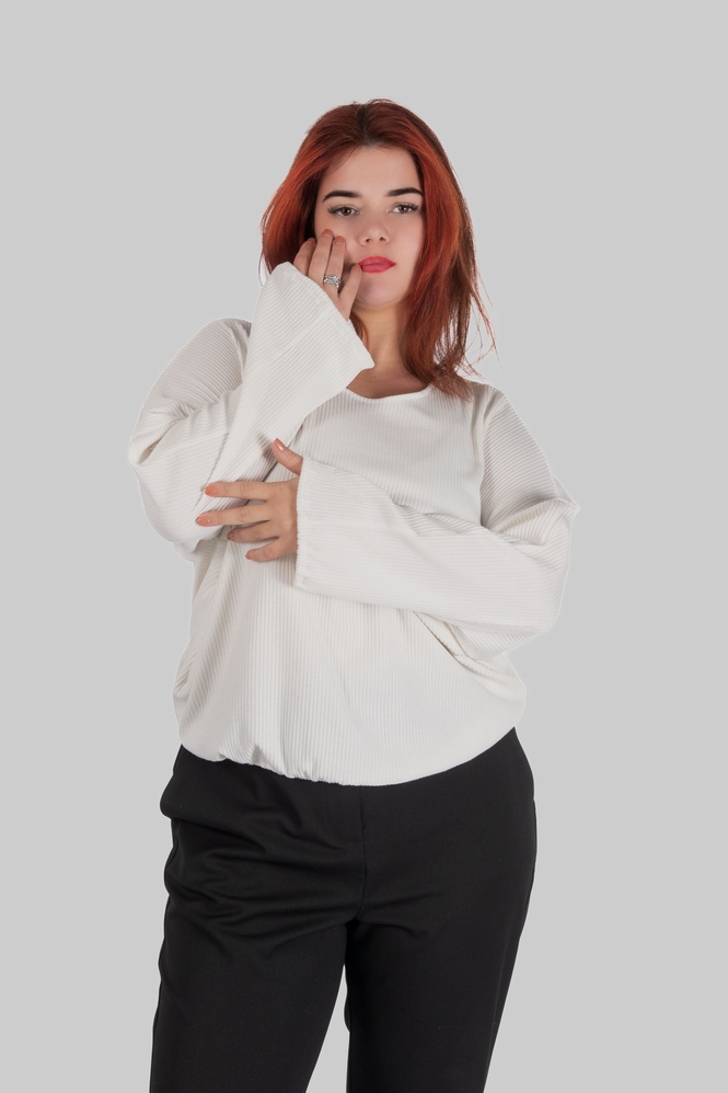 Завдяки вільному крою та еластичній тканині джемпер має запас свободи посадки і комфортно сідає на різні типи фігур.
