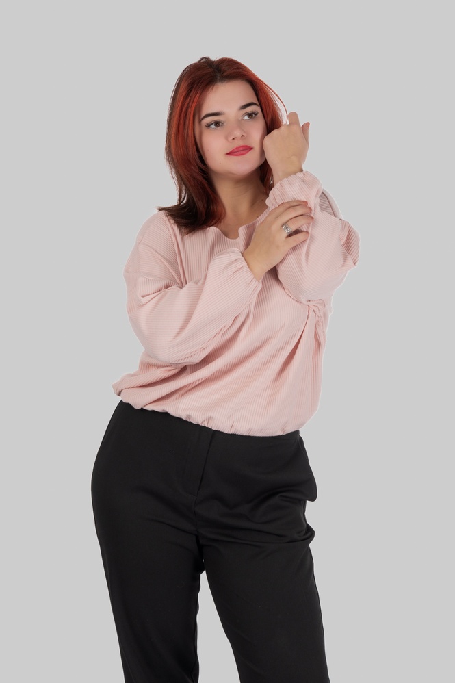 Завдяки вільному крою та еластичній тканині джемпер має запас свободи посадки і комфортно сідає на різні типи фігур.