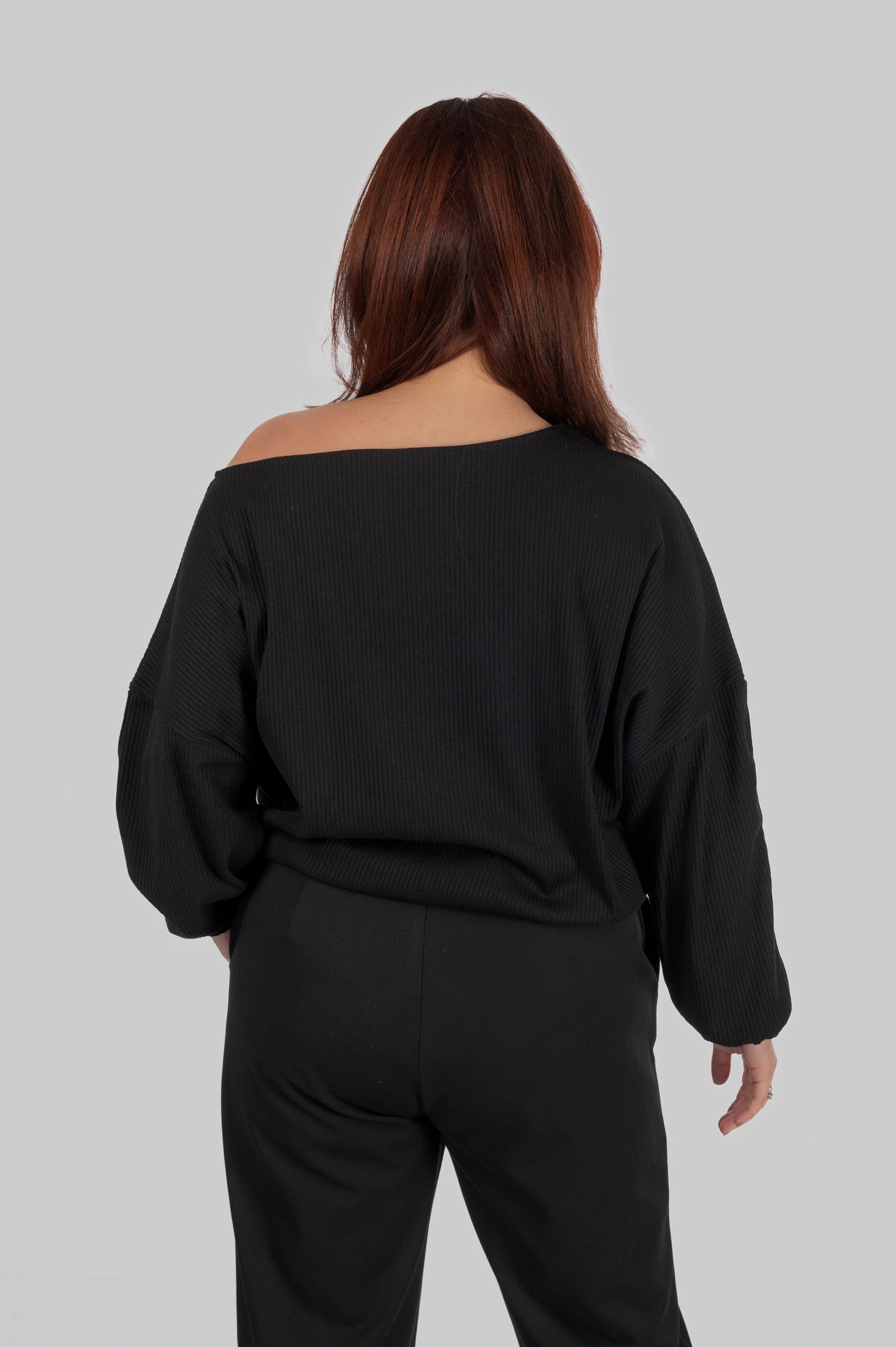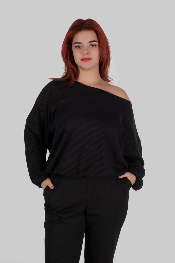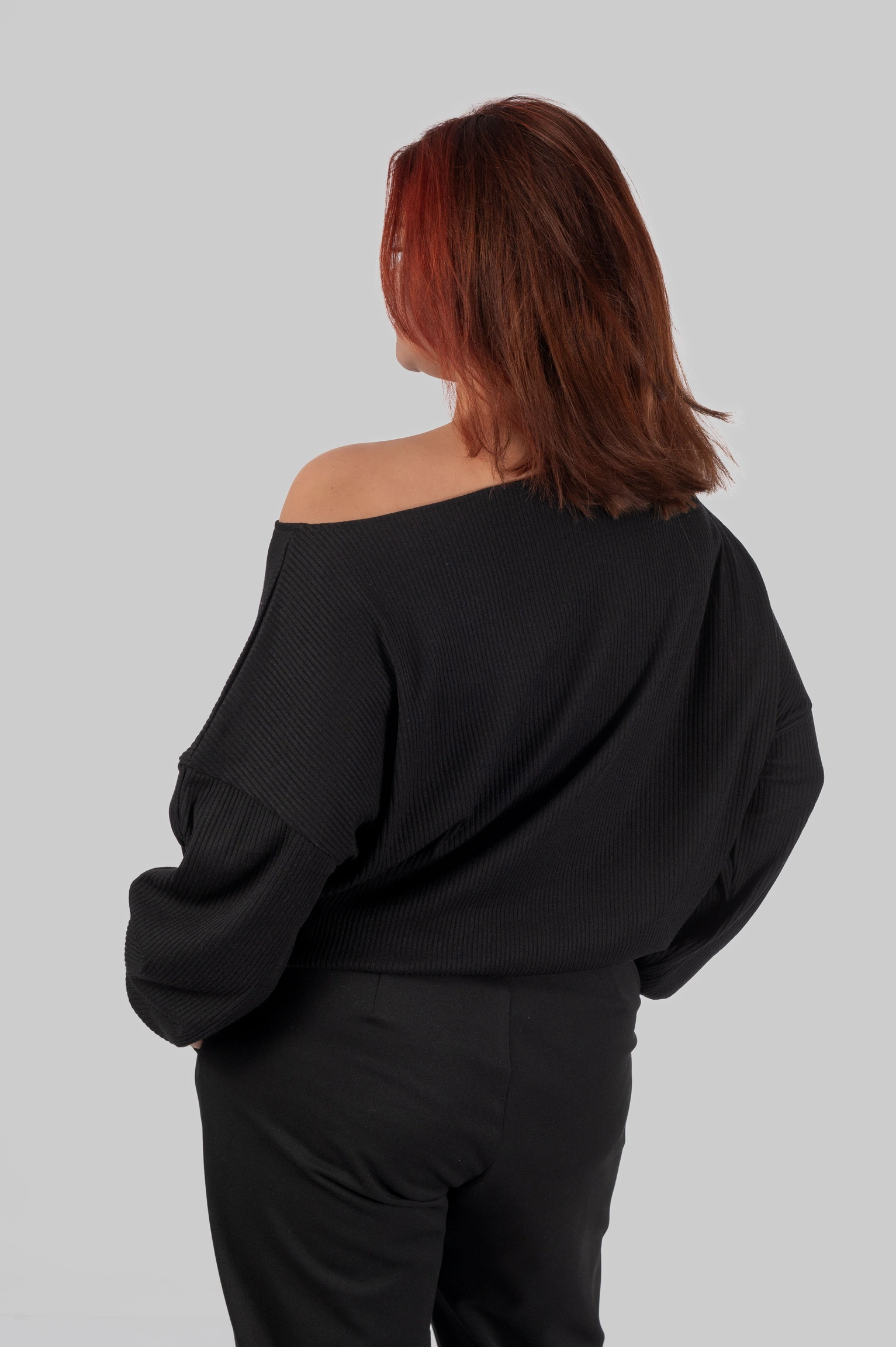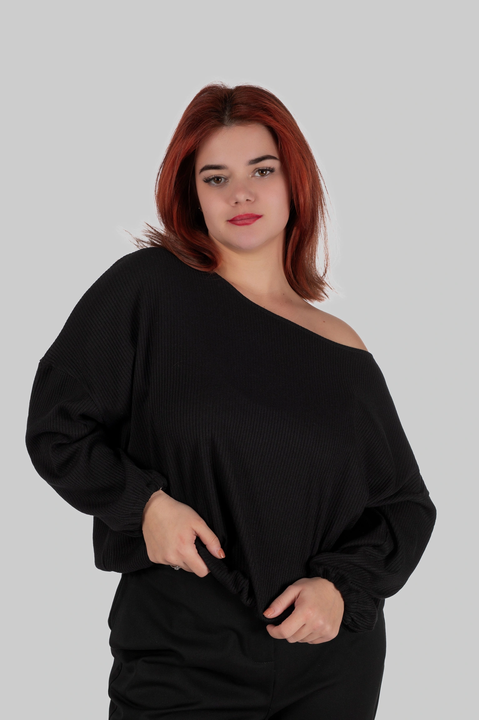 Джемпер рубчик віскоза з відкритим плечем KAYA