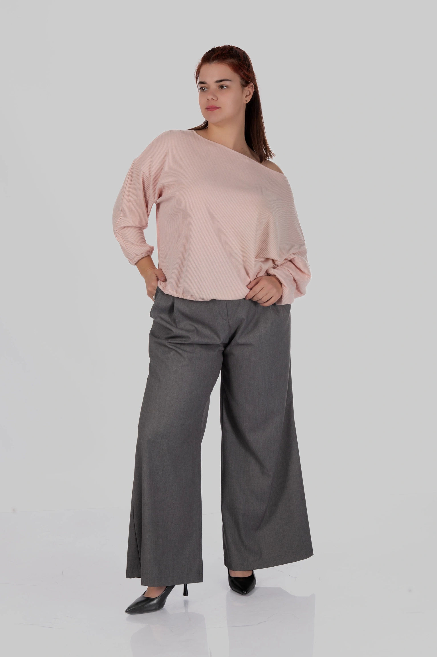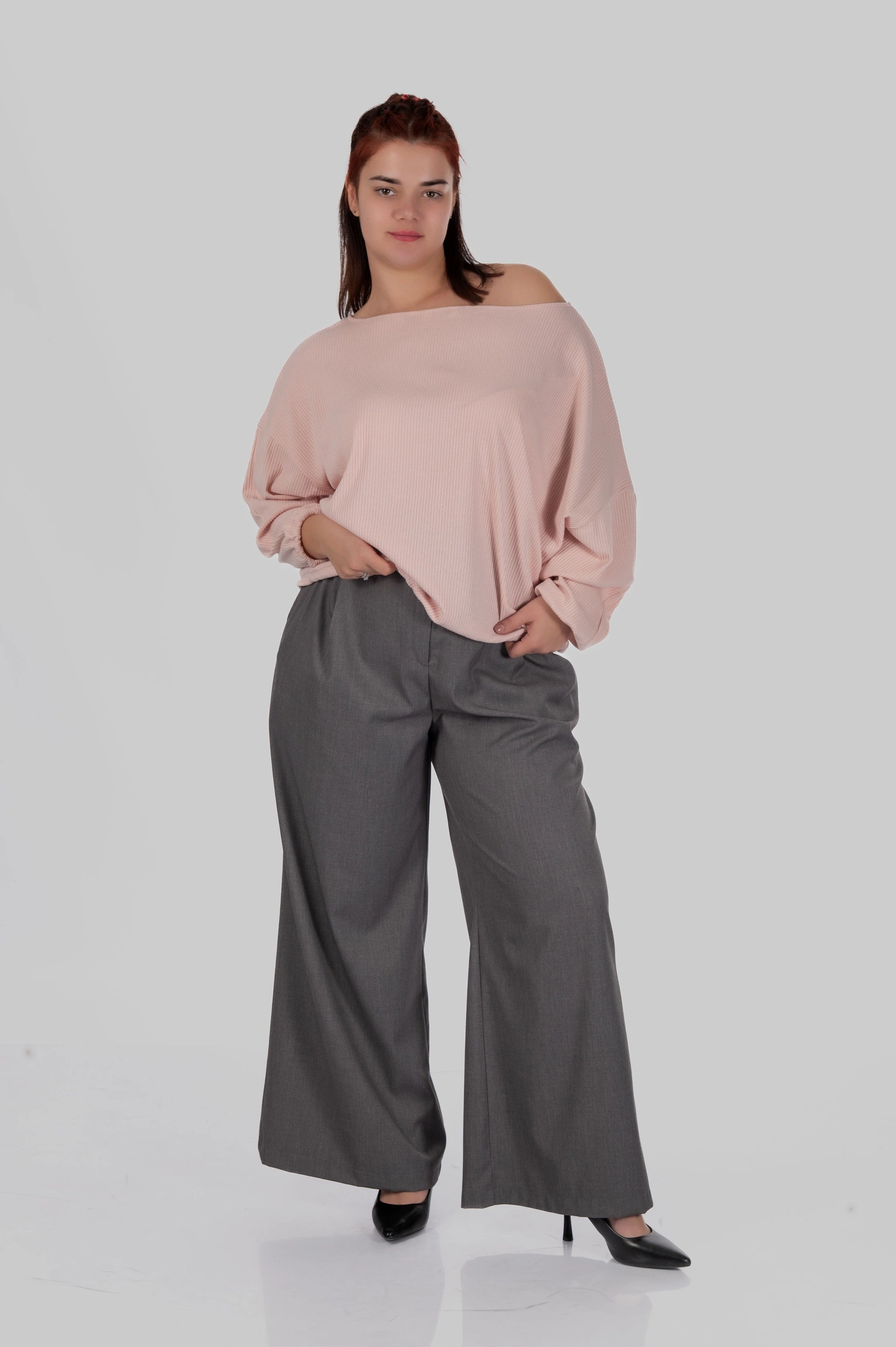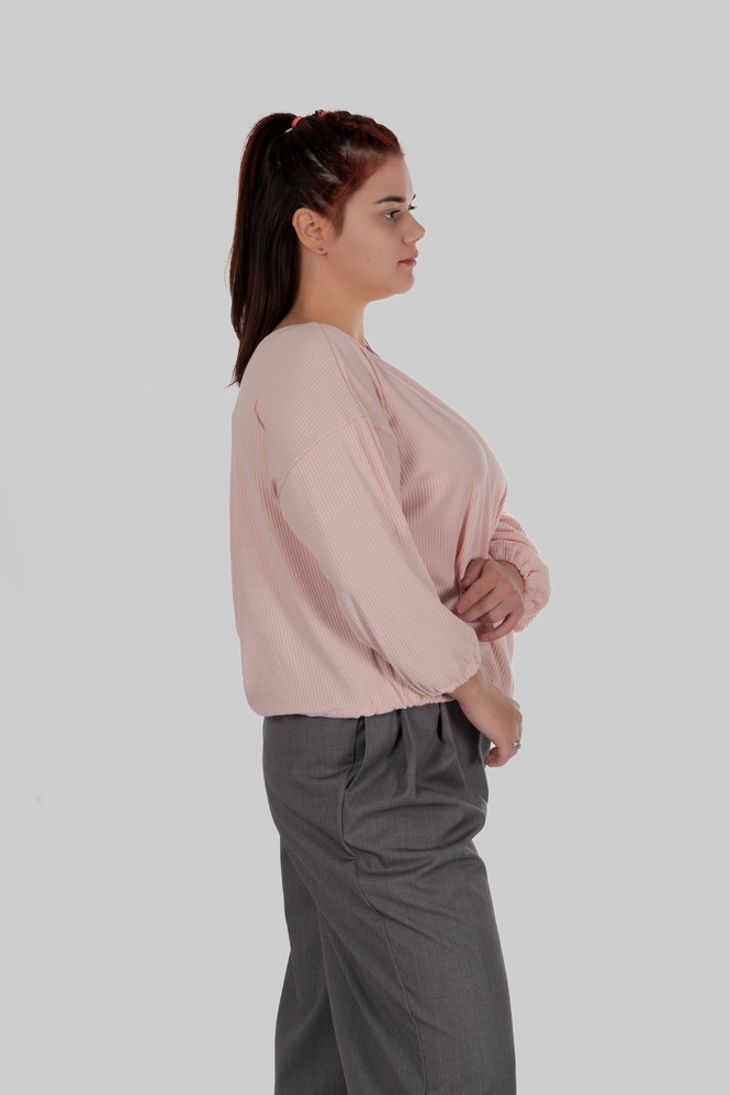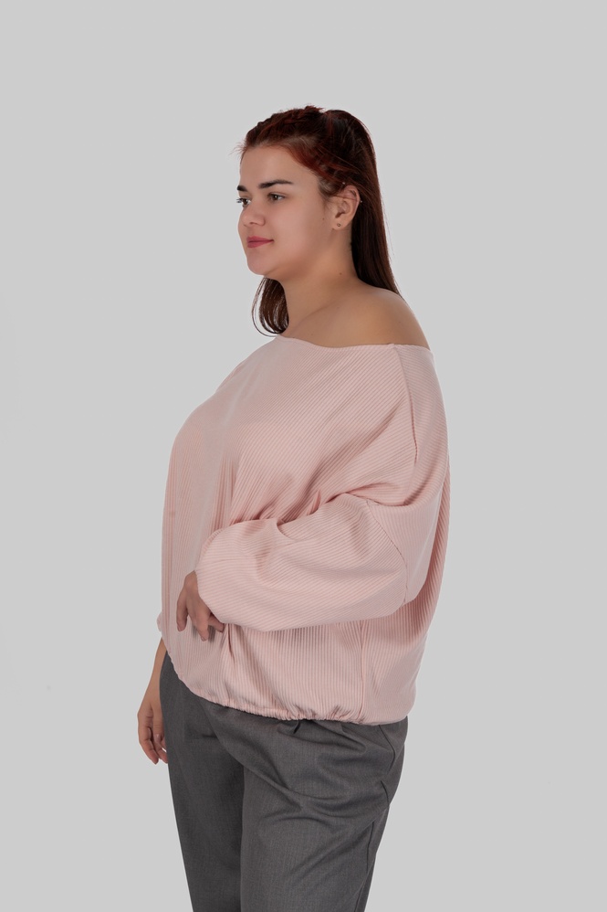 Джемпер має вільний силует із рукавом типу «летюча мишка», тому модель комфортно сідає в зоні плечей та рук і не обмежує рухи. М’який трикотаж у рубчик добре адаптується до фігури та не обтягує активні зони.