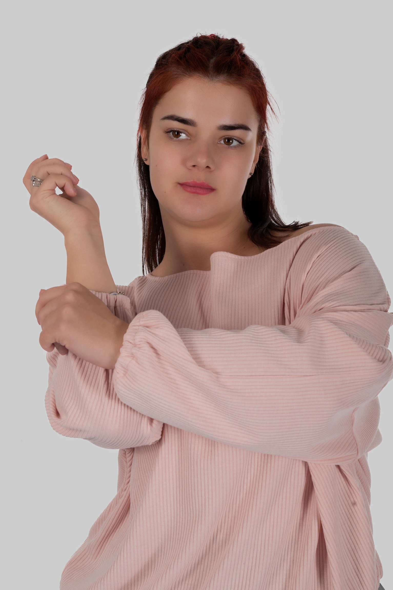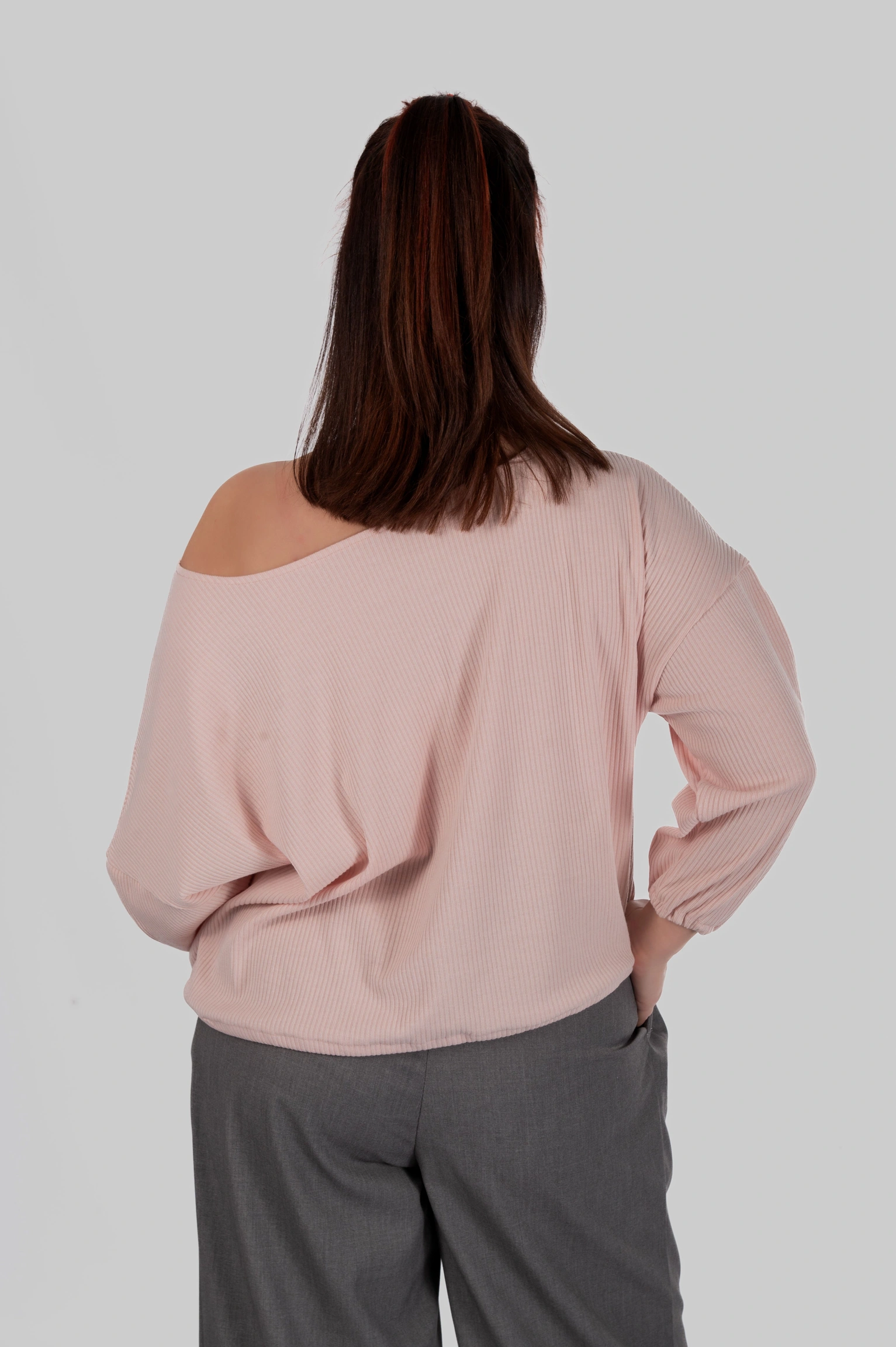 Джемпер рубчик віскоза з відкритим плечем KAYA