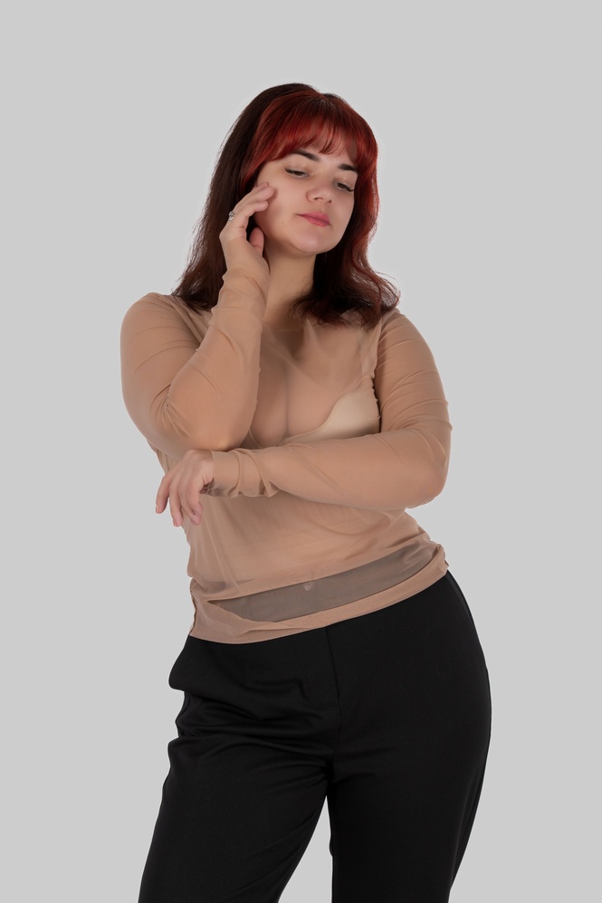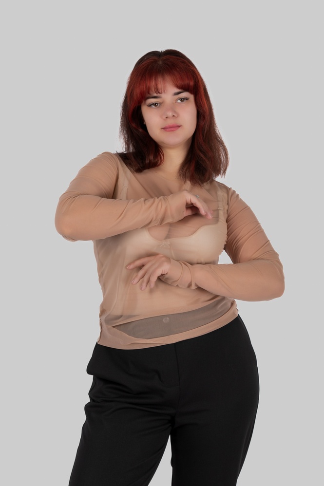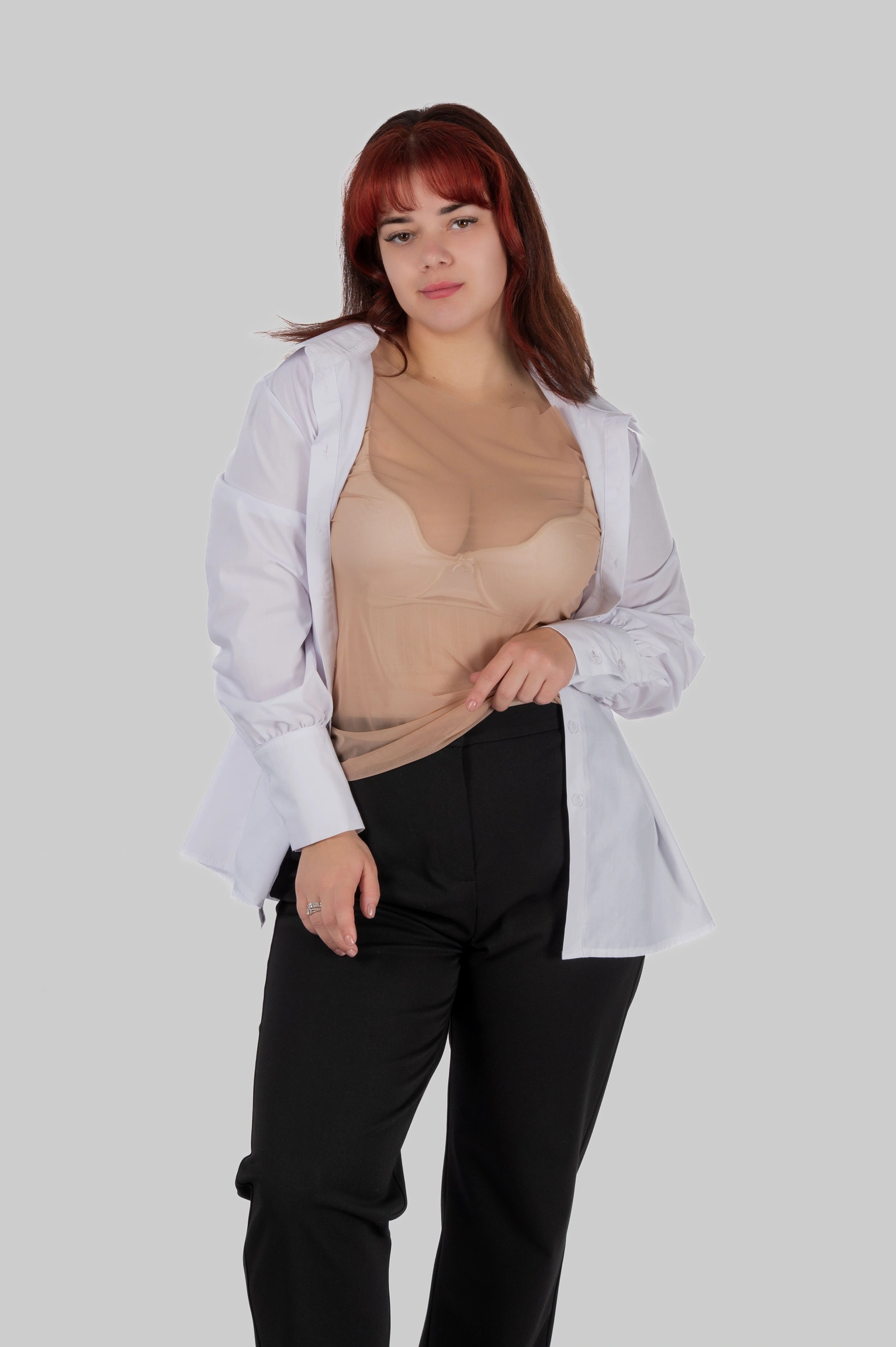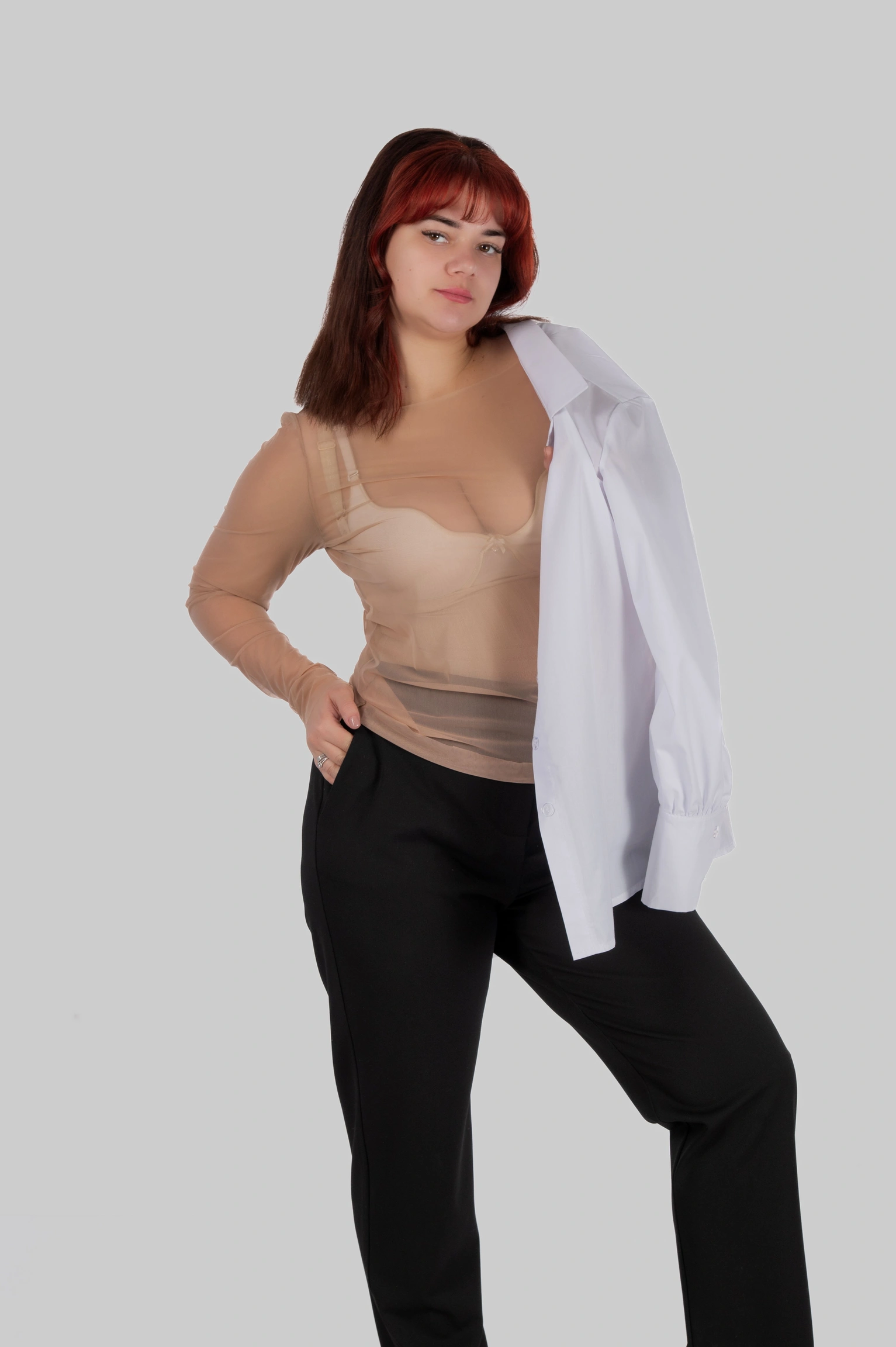 Модель розроблена спеціально для носіння під сорочки, жакети, жилети та сукні, коли важливо зберегти легкість силуету й водночас додати образу завершеності. Сітка м’яко повторює лінії тіла, не створюючи об’єму і не обмежуючи рухів.