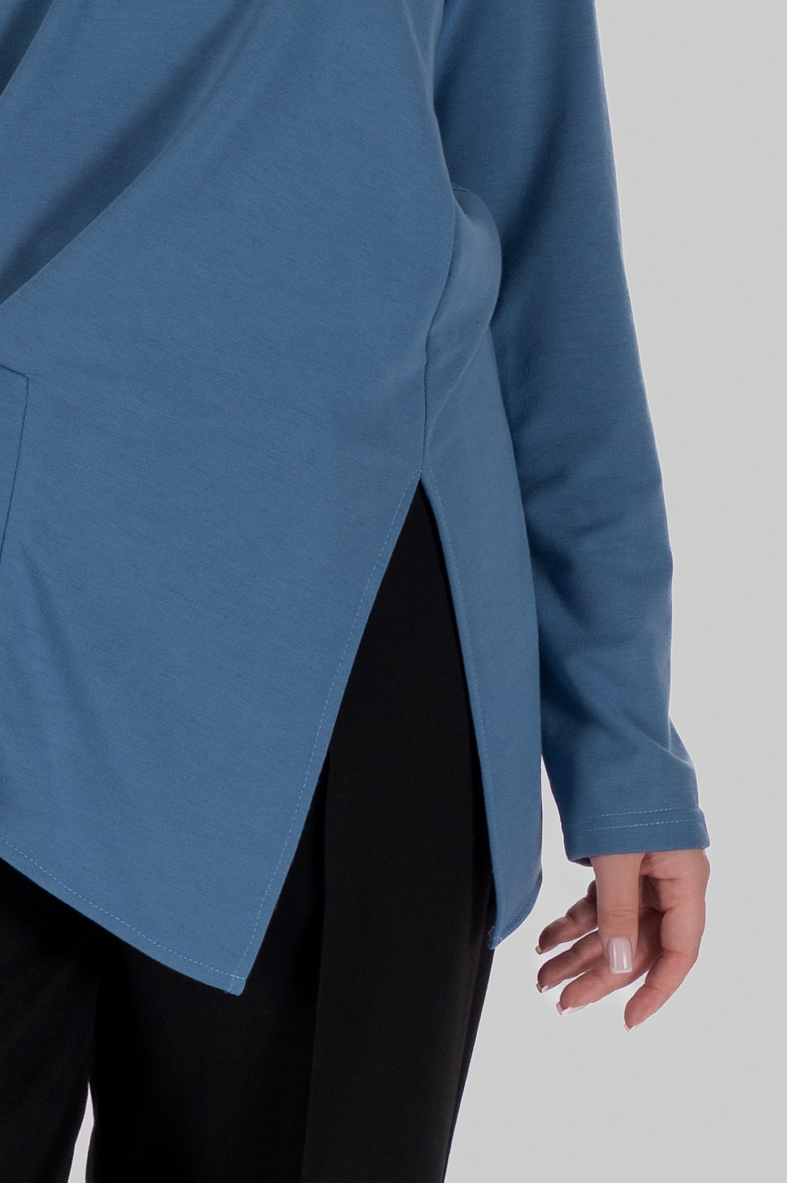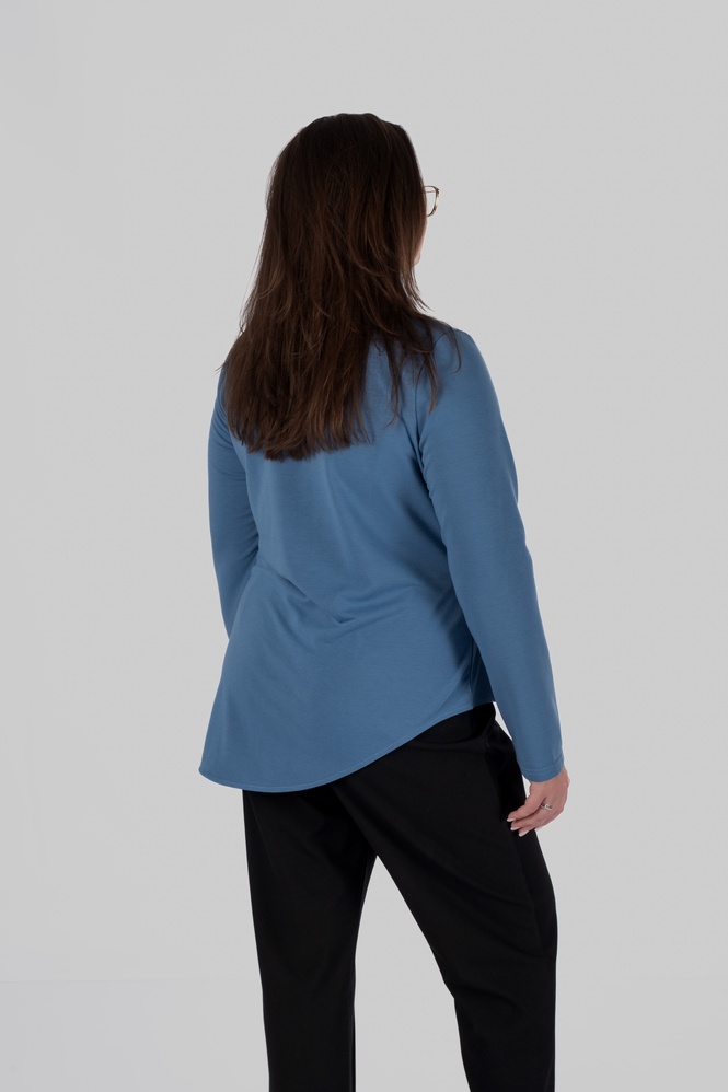 Лонгслів виготовлений з двохнитки — щільного трикотажу, який добре тримає форму та дозволяє конструктивним елементам працювати максимально ефективно.