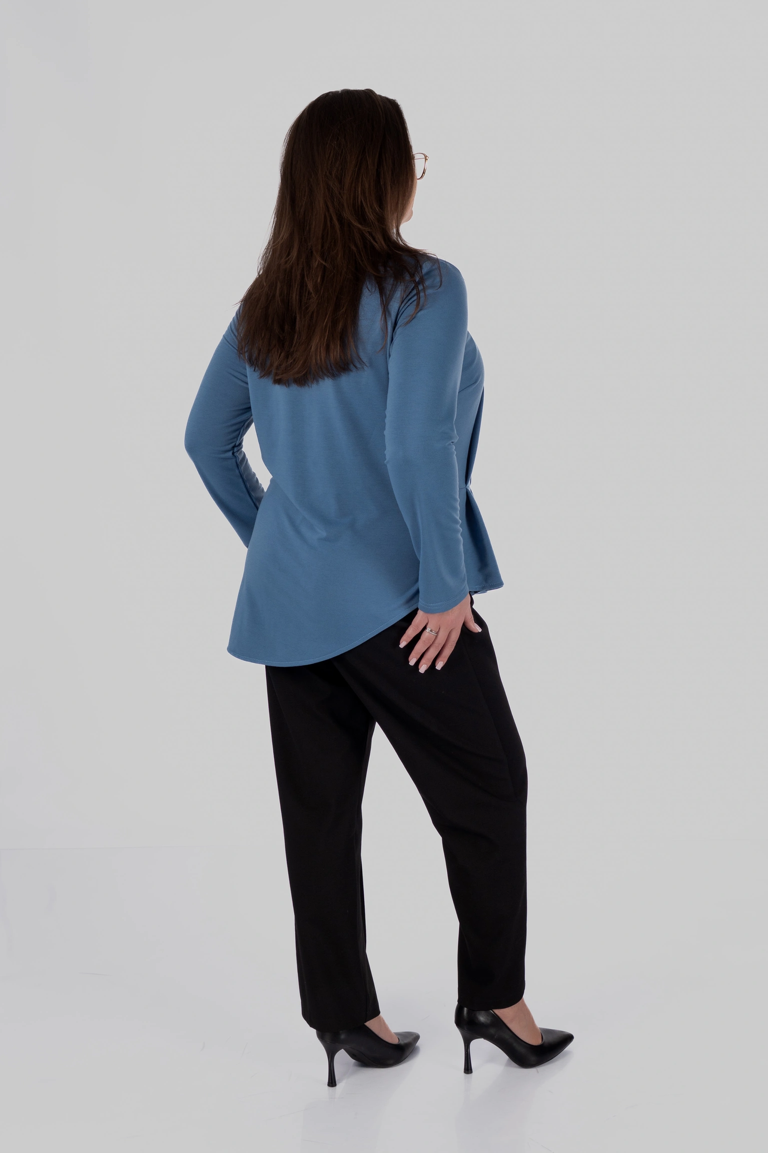 Лонгслів DARIA — це модель, у якій форма працює замість декору. Асиметрична драпіровка створює діагональну лінію, що візуально витягує силует і зміщує акценти, роблячи образ легшим і зібранішим.