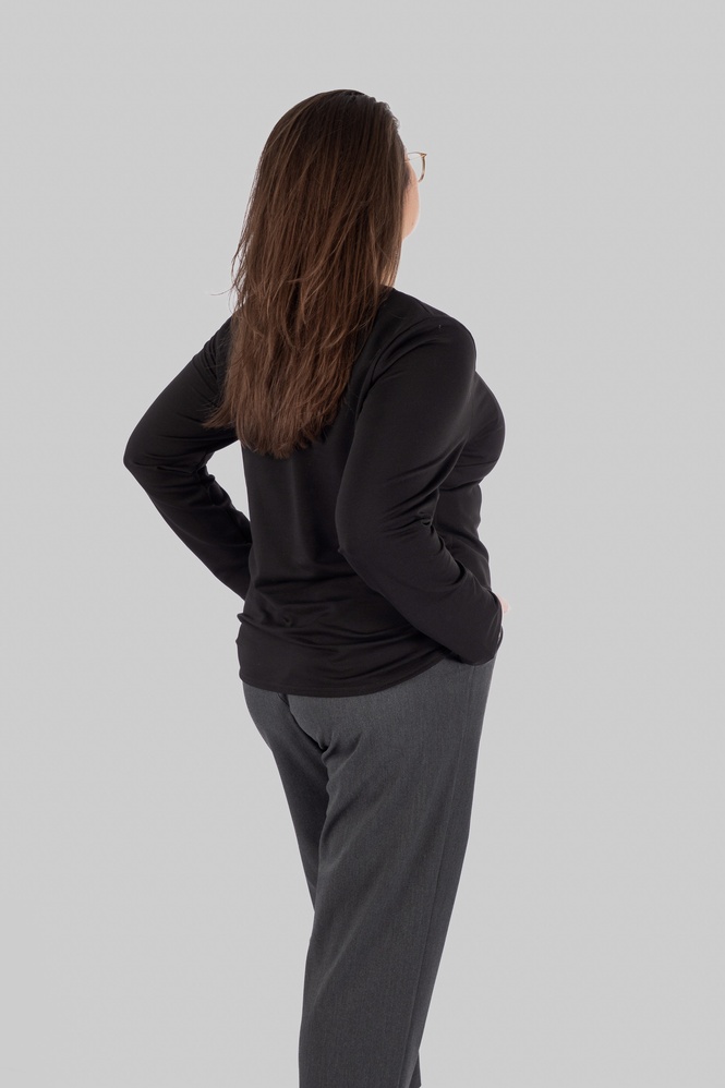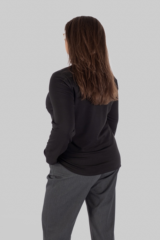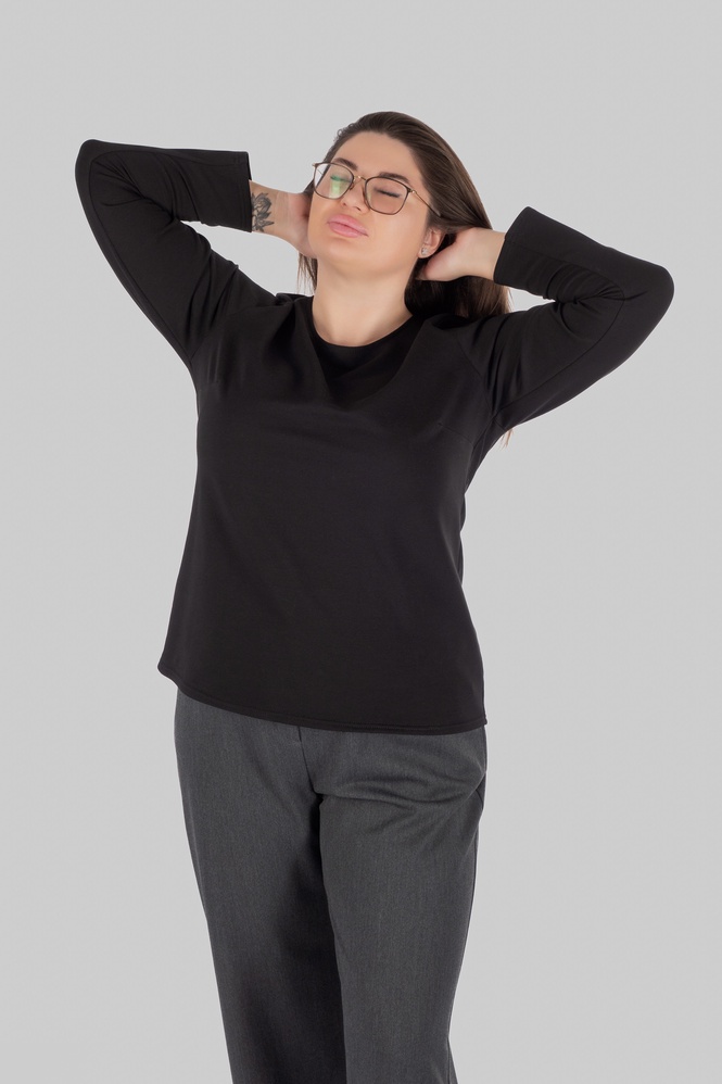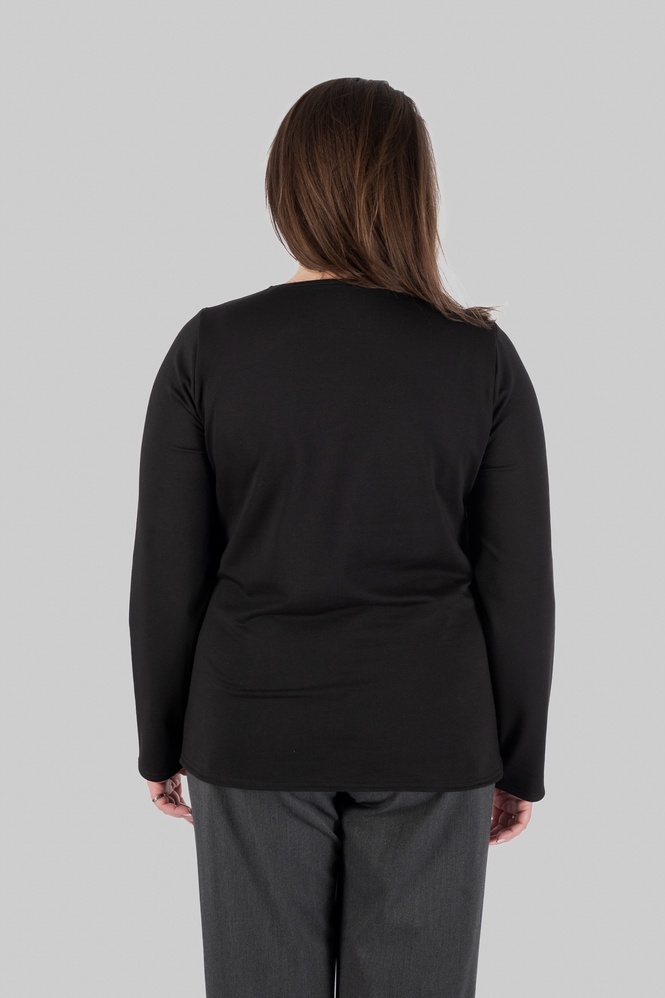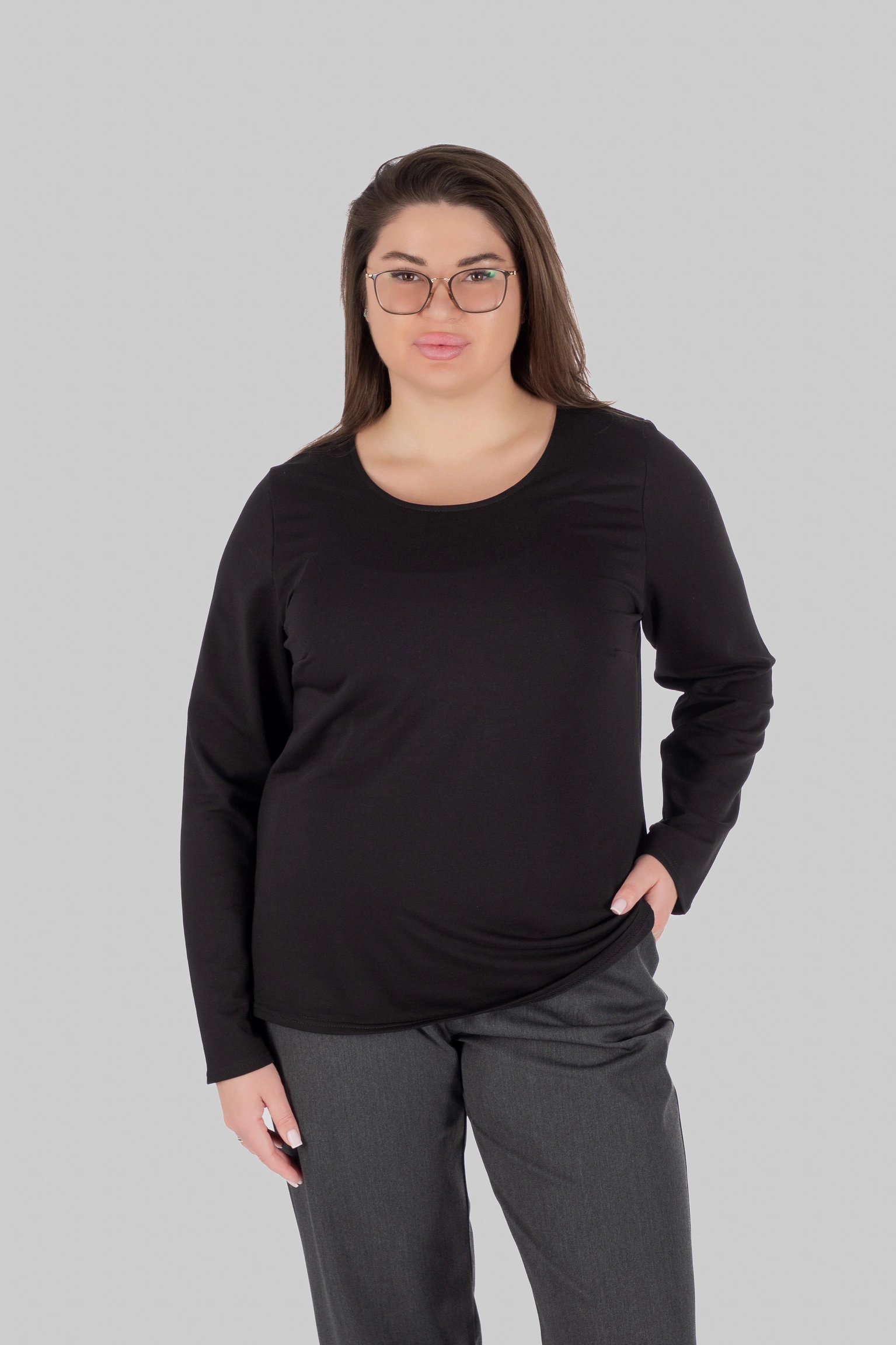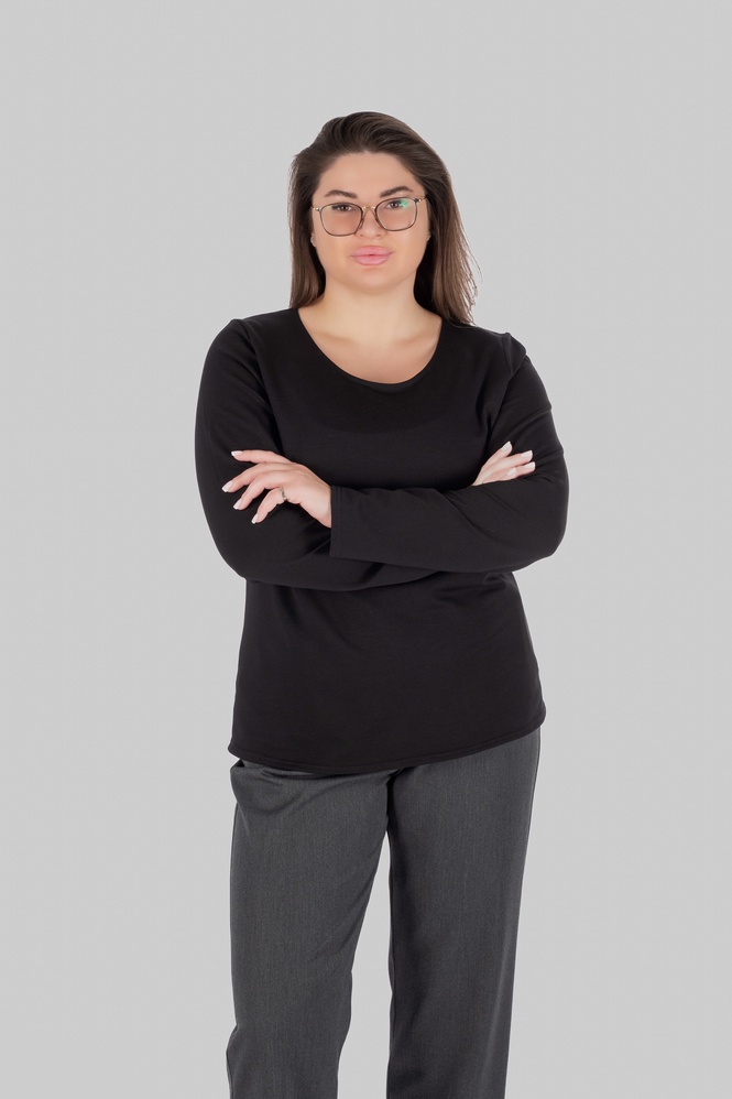 Лонгслів MIRA D — це базова модель у щільному виконанні, яка поєднує універсальність із мʼякшим, відкритішим характером. Середня кругла горловина створює делікатний акцент у верхній частині силуету, зберігаючи стриманість і акуратність образу.