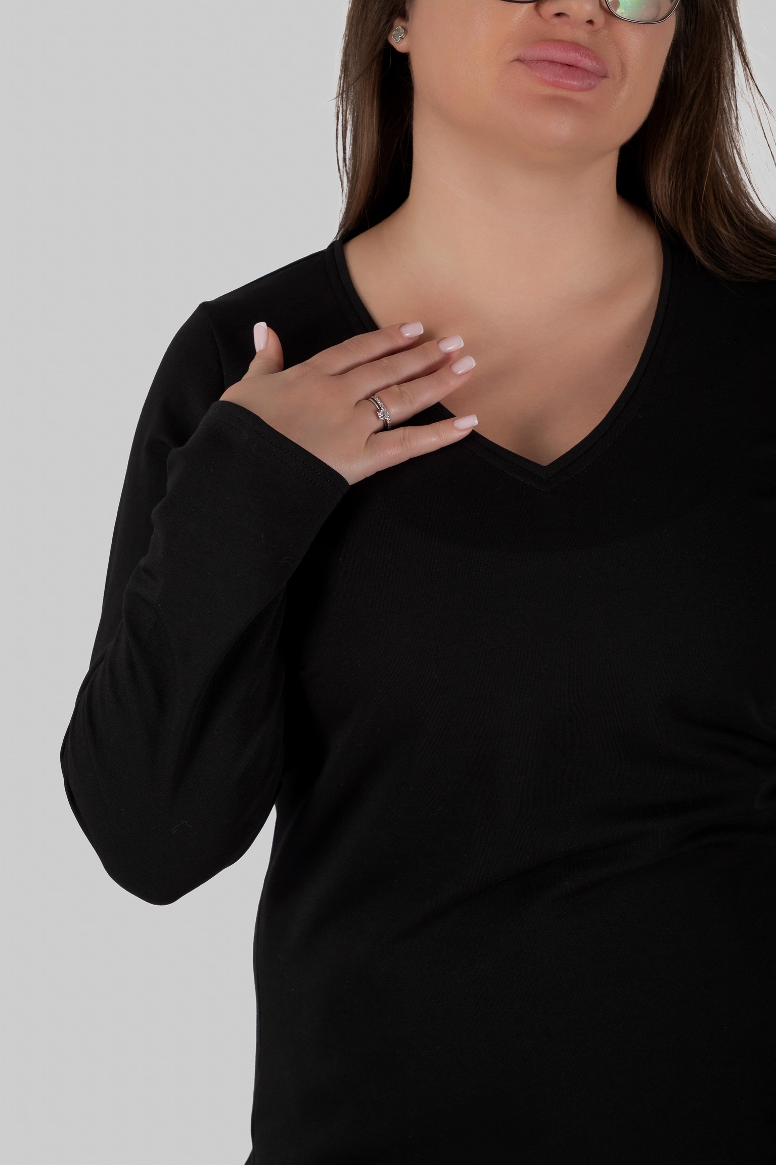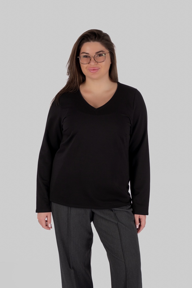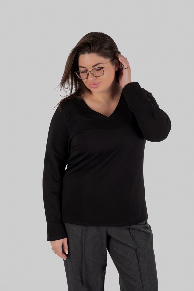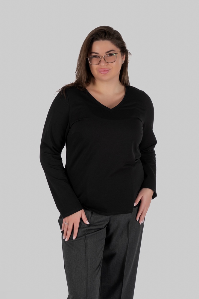 Лонгслів з двонитки з глибоким V-вирізом VIRA D