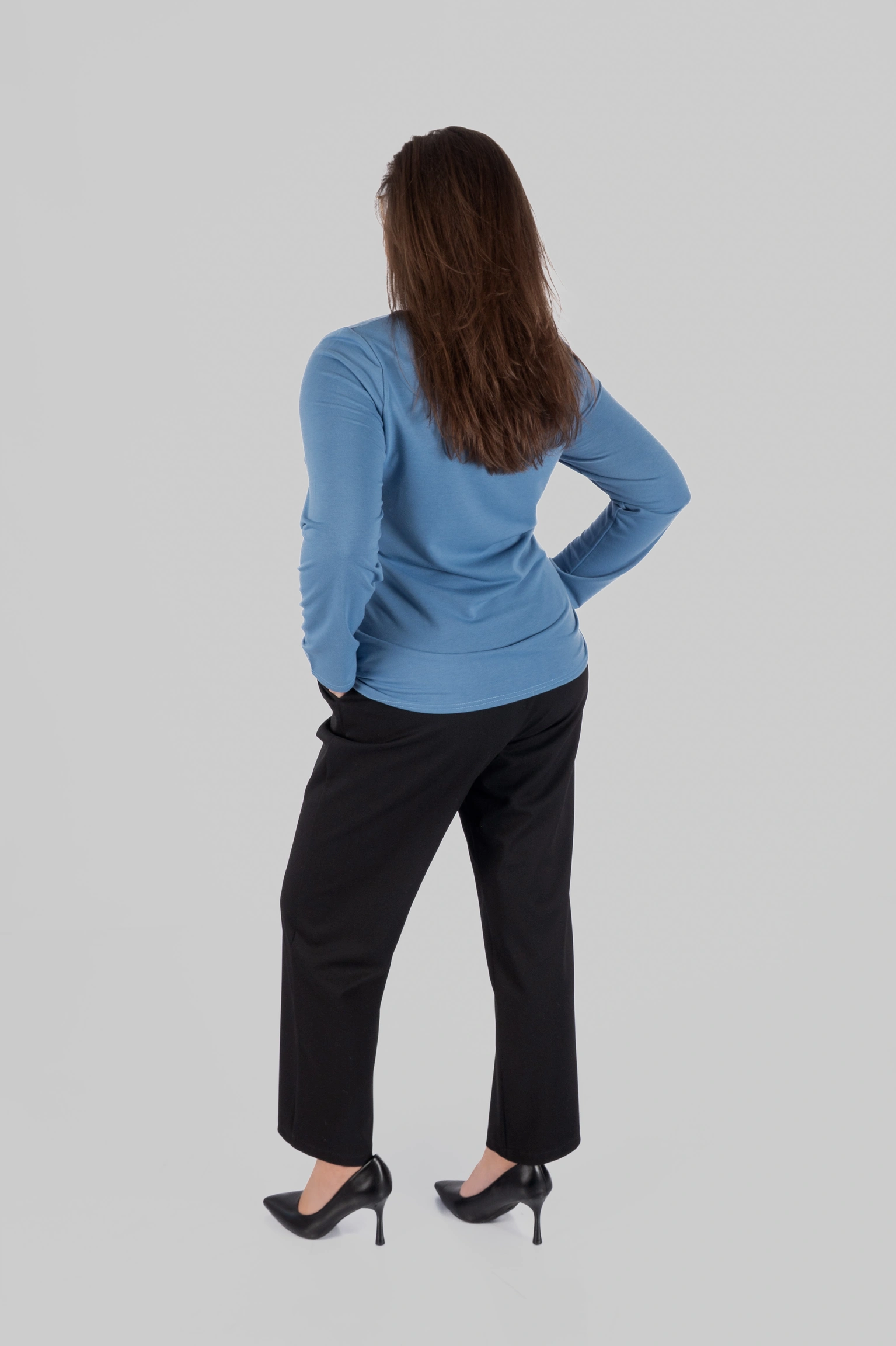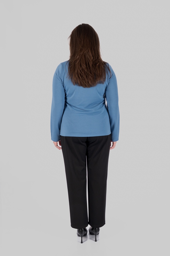 Лонгслів SIRA D — це базова модель у щільному виконанні з чітким архітектурним акцентом. Квадратний виріз формує графічну лінію у верхній частині силуету й додає образу сучасної зібраності.
