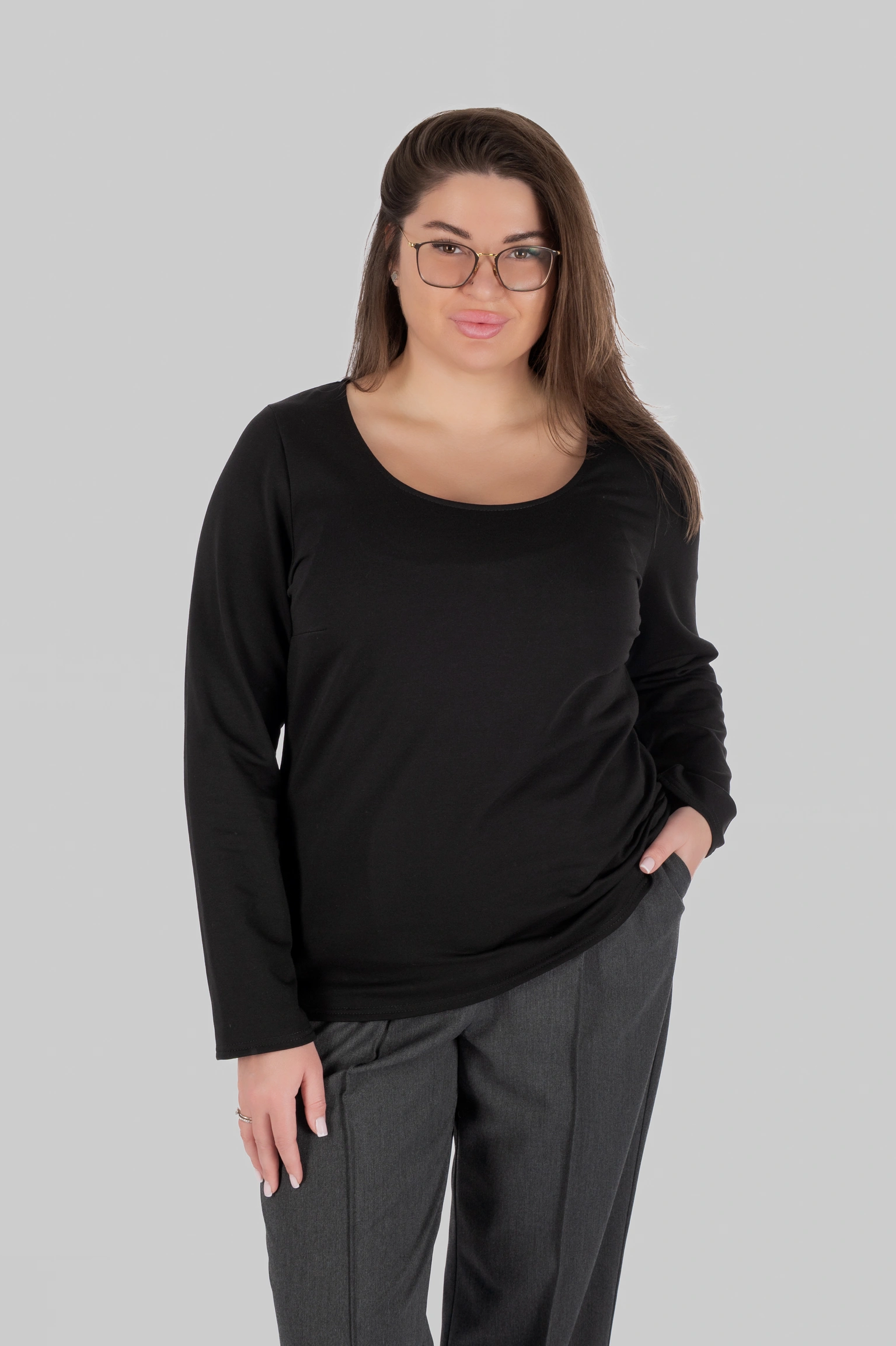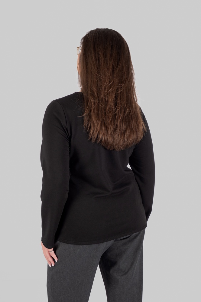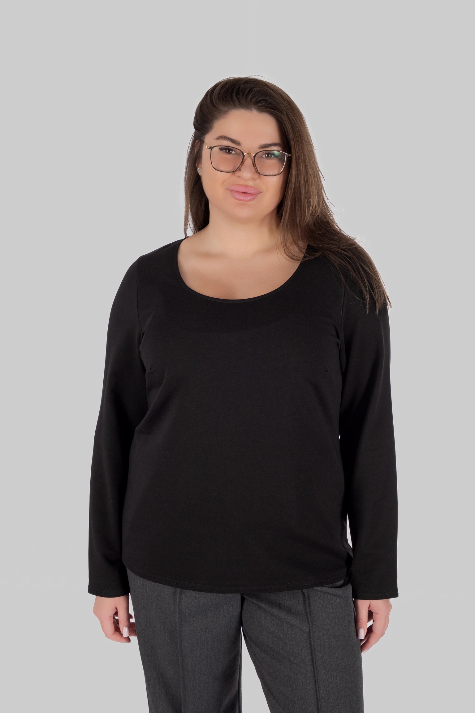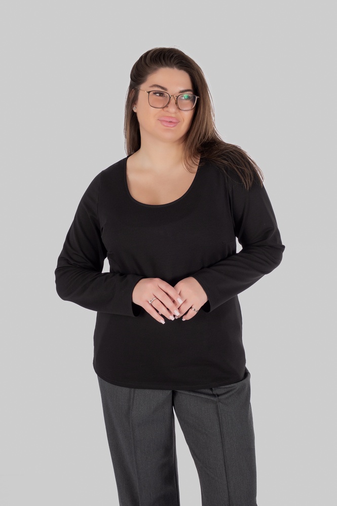 Модель виконана з двохнитки, яка формує зібраний силует і підтримує чіткість ліній протягом дня. Лонгслів виглядає охайно та не втрачає форму при регулярному носінні.