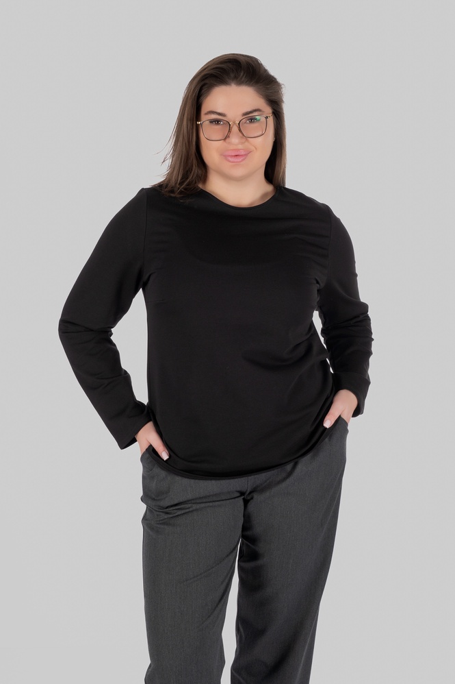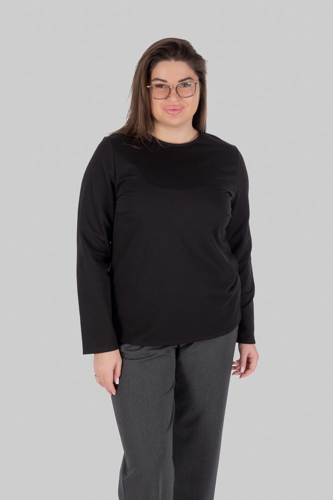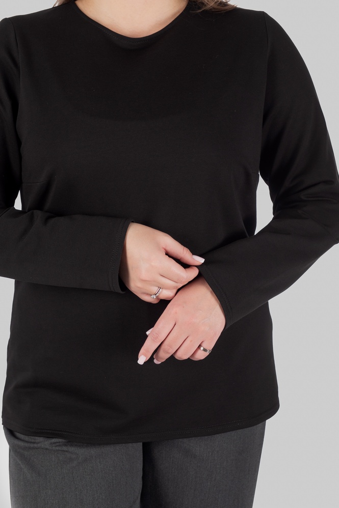 Модель виконана з двохнитки, що надає виробу щільності та формостійкості. Лонгслів добре тримає силует і виглядає зібрано протягом усього дня.