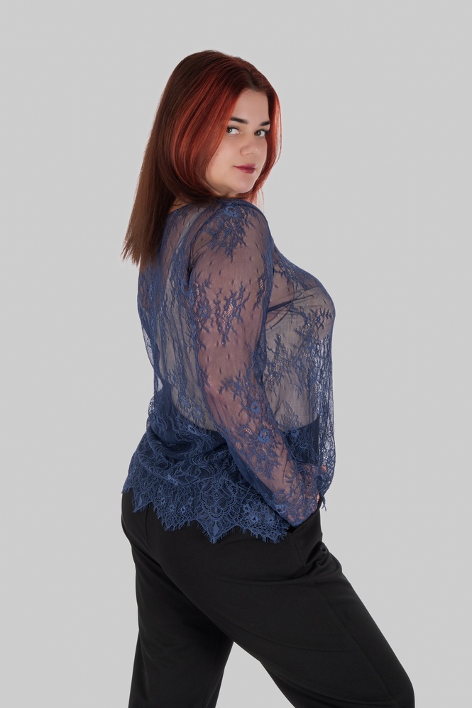 • Крій побудований з урахуванням напрямку візерунка мережива.