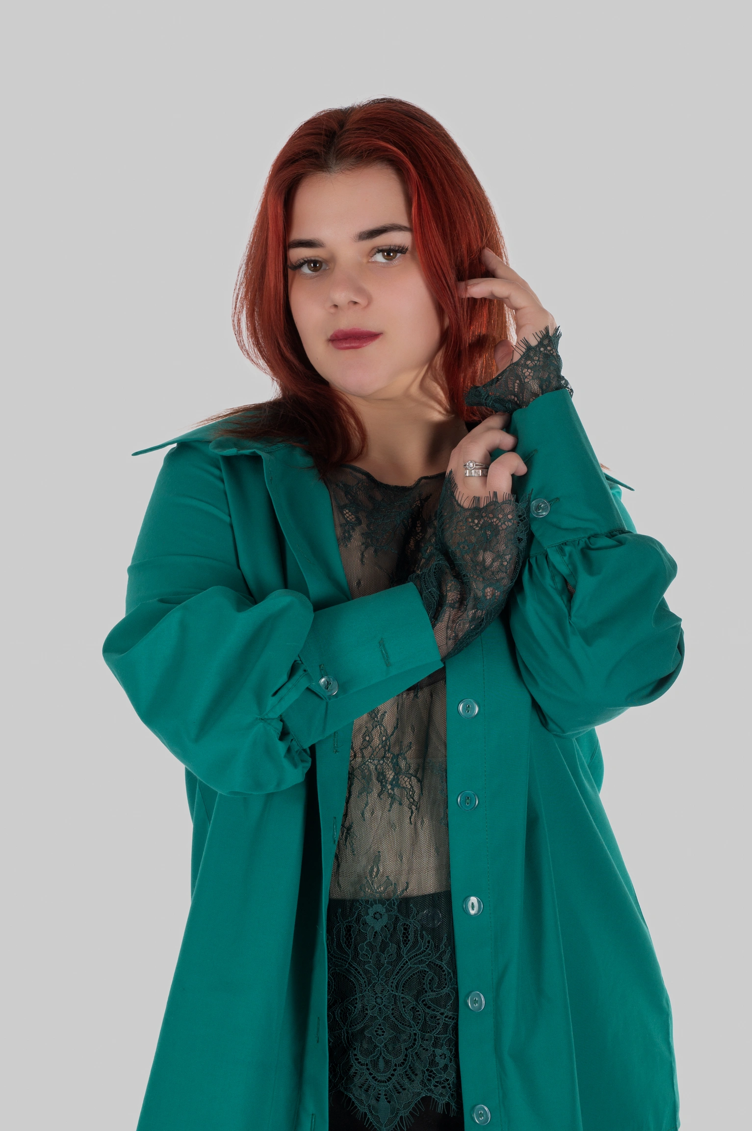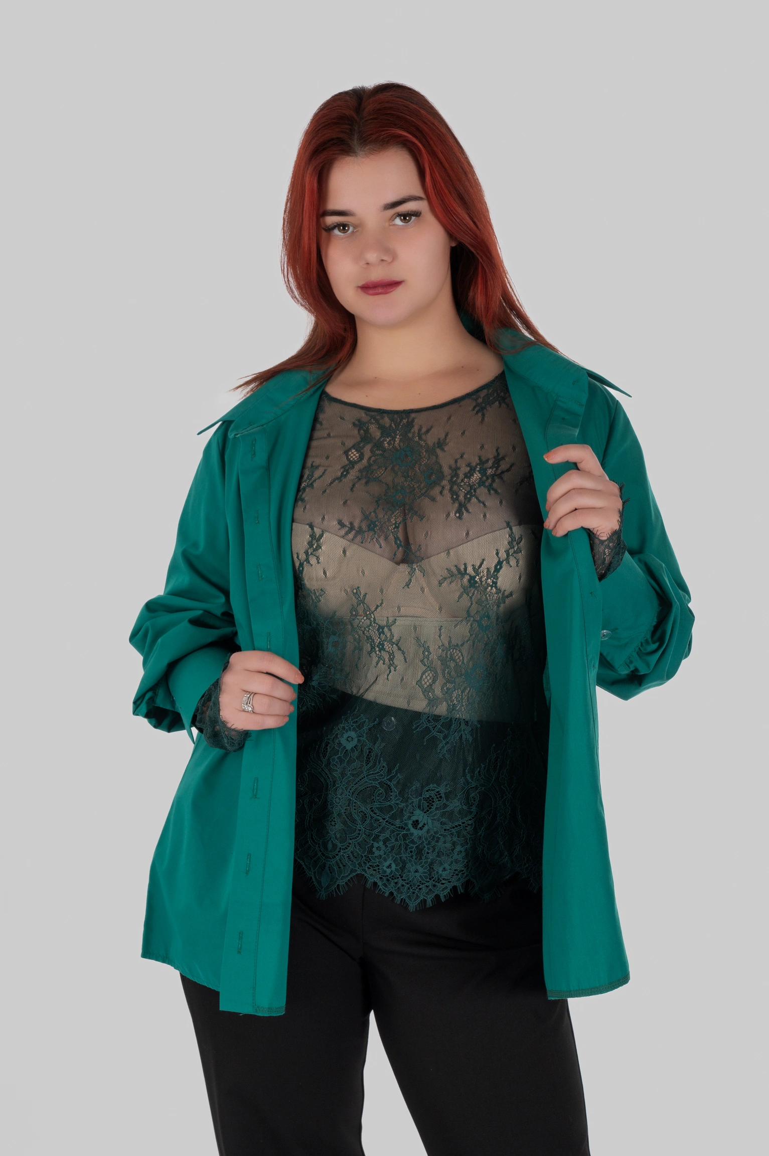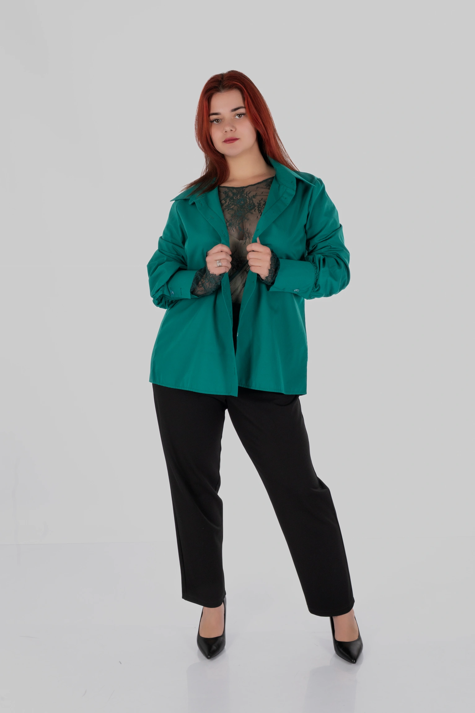 SELENE створена для багатошарових стилізацій: під жакети, сукні, топи з відкритішим верхом, трикотажні моделі або як самостійний верх у поєднанні з базовими низами. Там, де звичайний образ виглядає просто, SELENE додає складність і завершеність.
