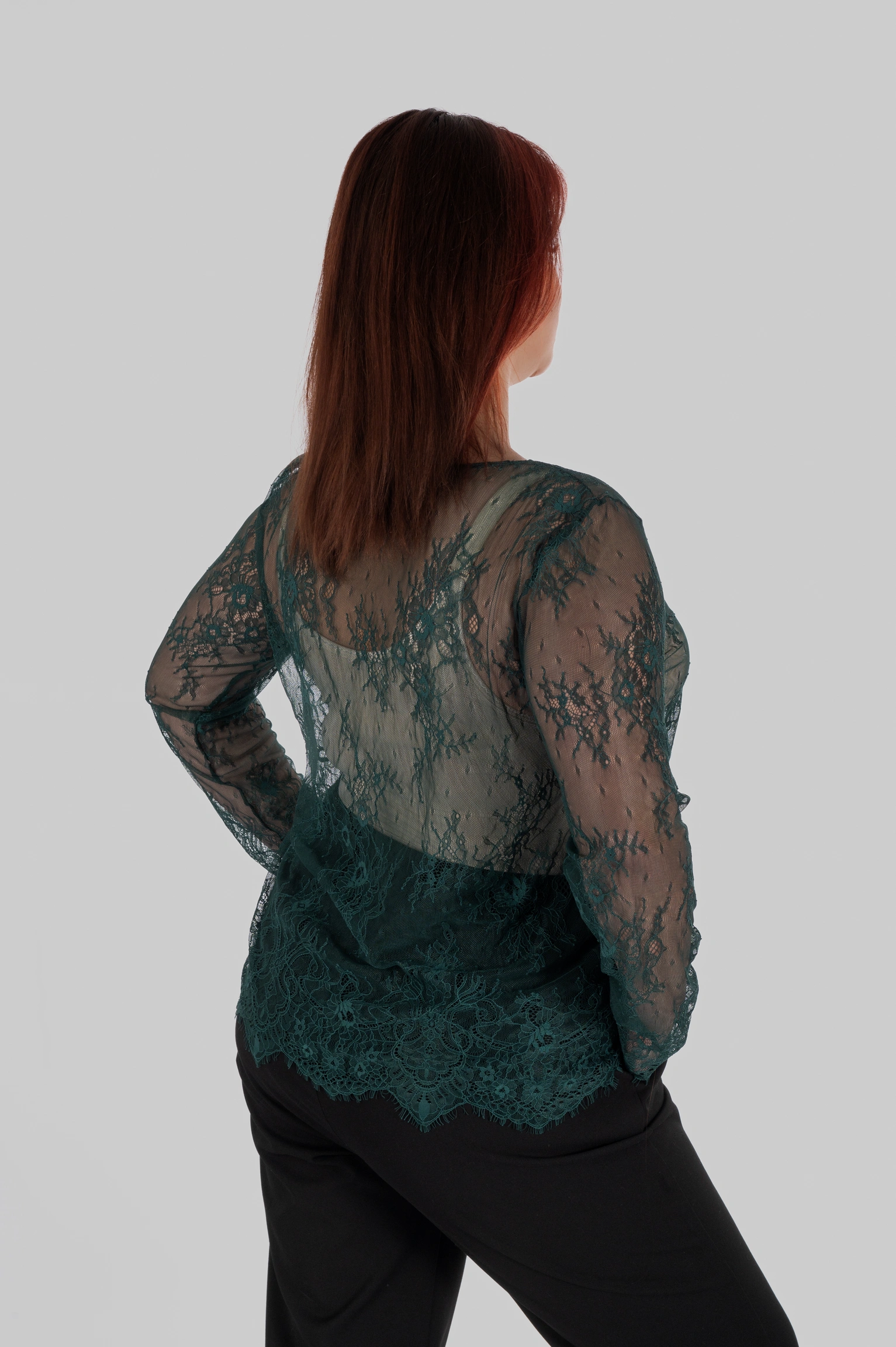 SELENE — це не просто мереживний лонгслів, а інструмент стилізації, який працює на глибину образу. Модель виконана з французького мережива шантильє — одного з найдорожчих і найвишуканіших видів мережива у світовій моді.