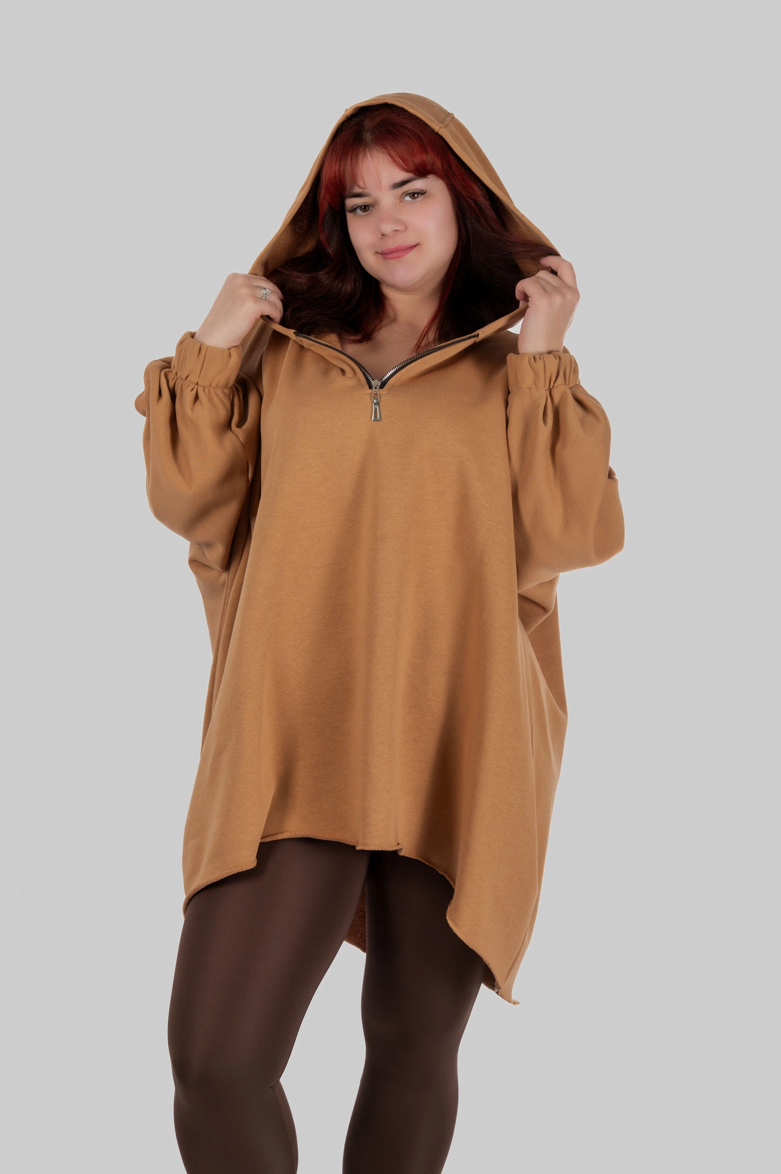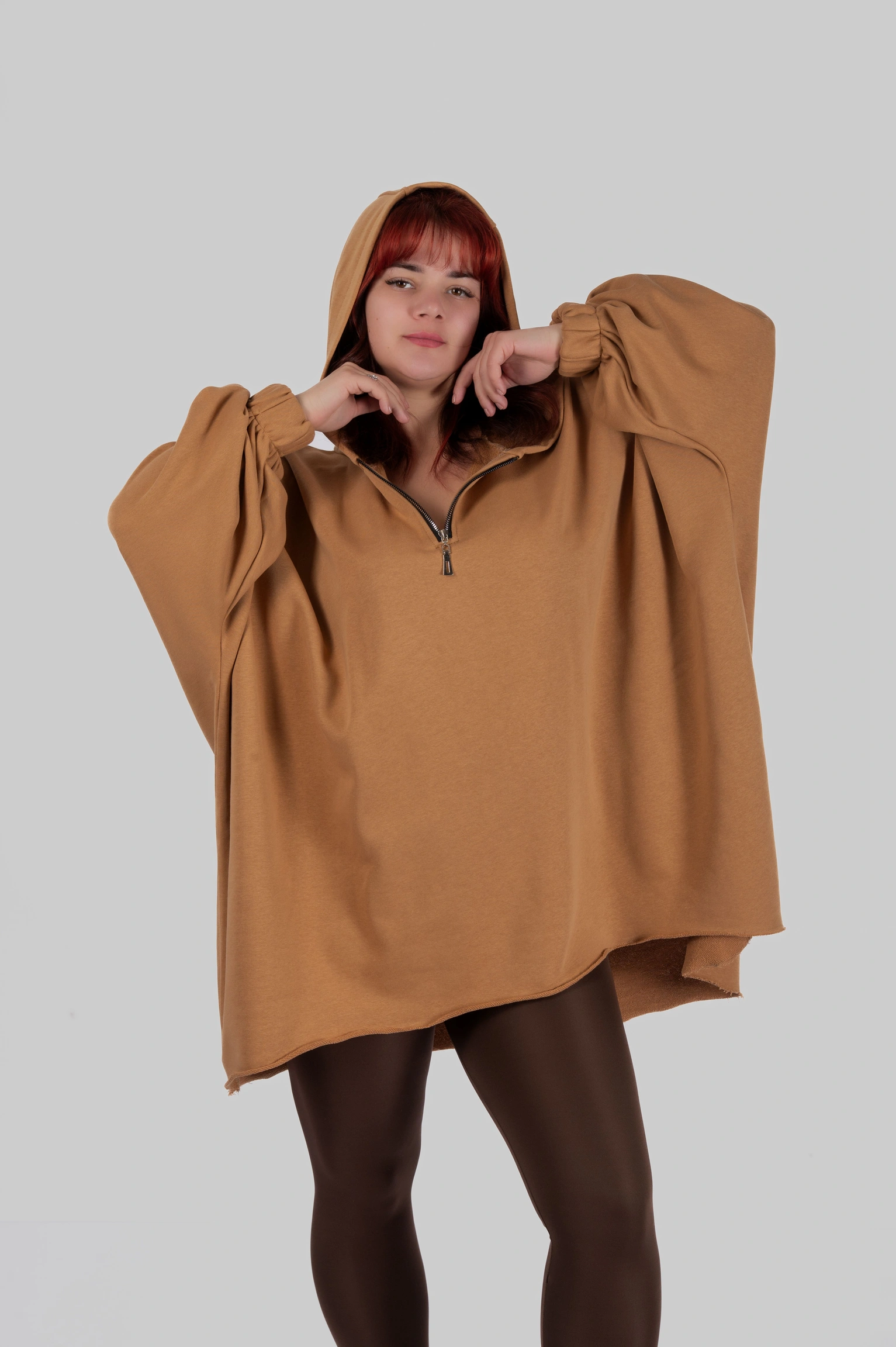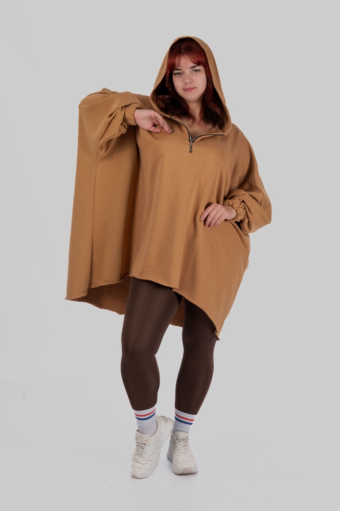SILVA — обʼємна товстовка-пончо, що створює відчуття захищеності з першого дотику. Модель побудована на широкому силуеті з мʼякою лінією плеча та подовженою довжиною.