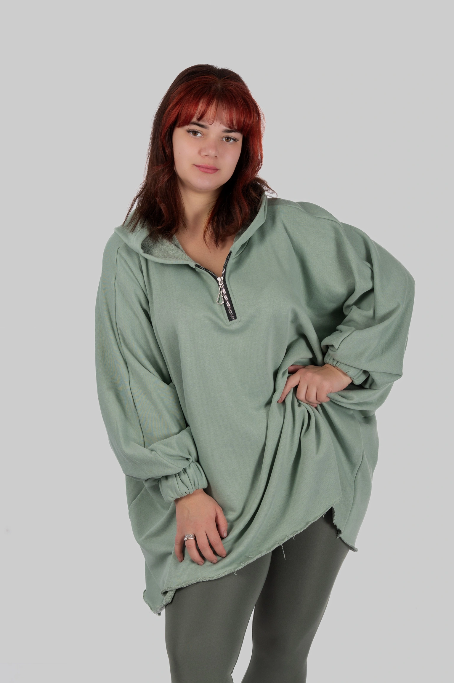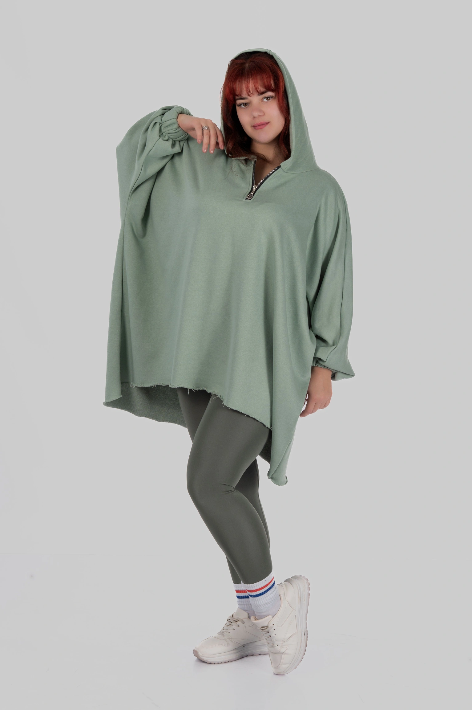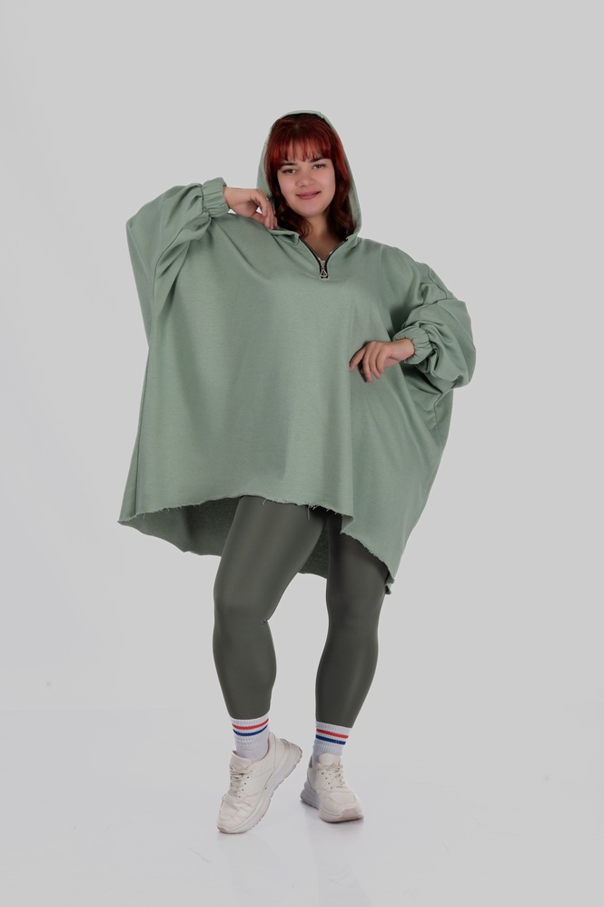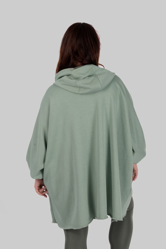SILVA — обʼємна товстовка-пончо, що створює відчуття захищеності з першого дотику. Модель побудована на широкому силуеті з мʼякою лінією плеча та подовженою довжиною.