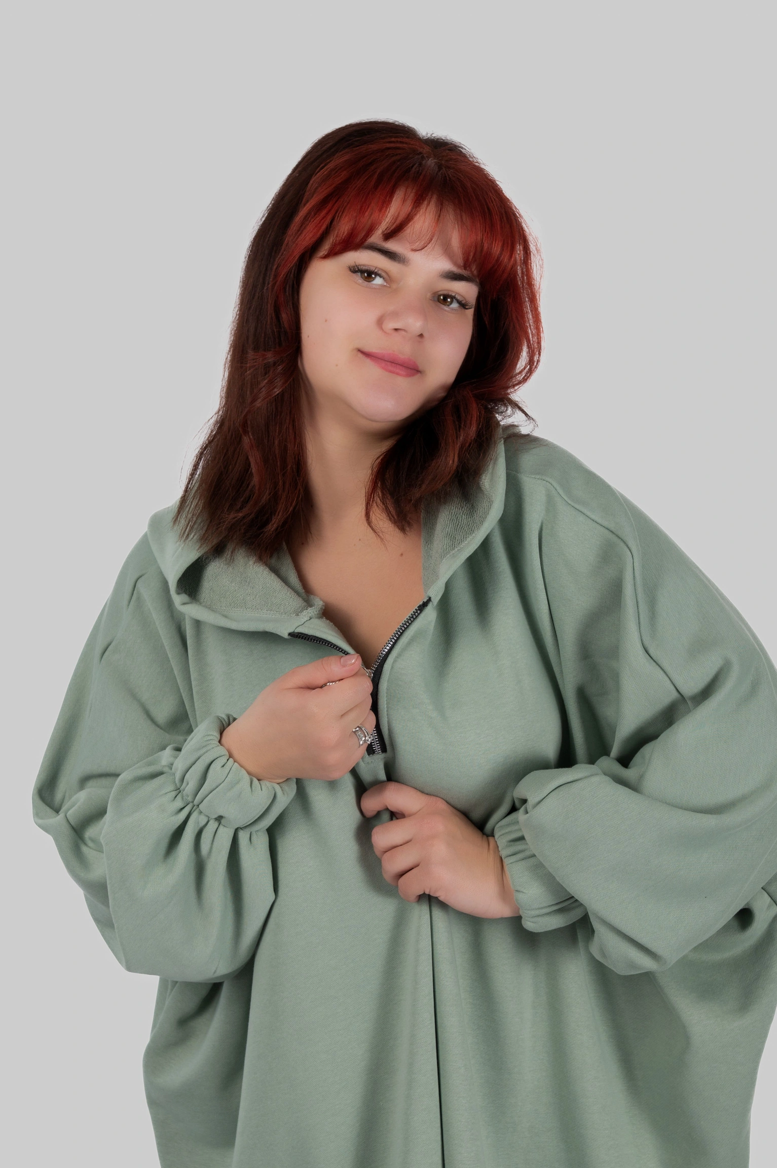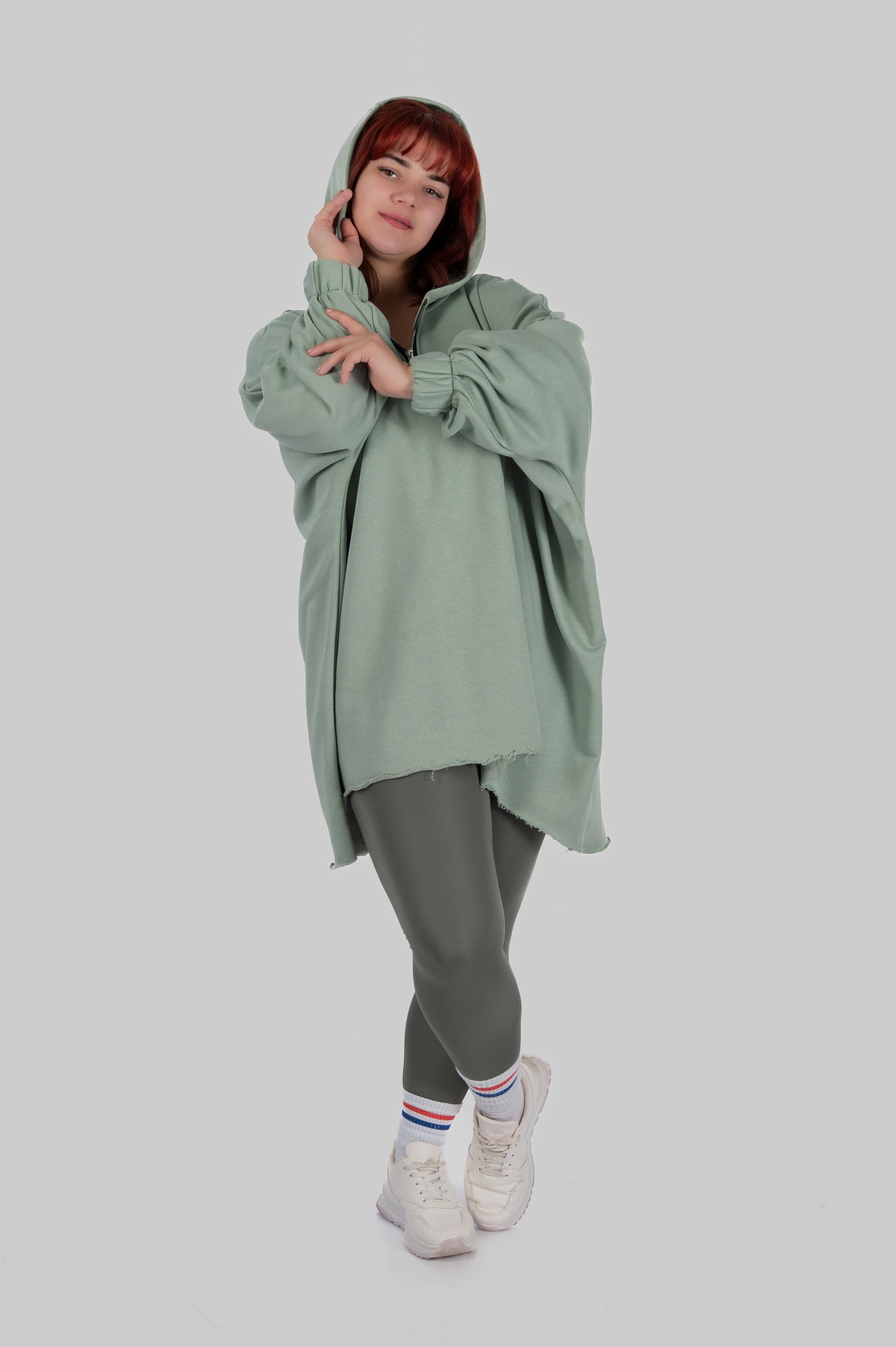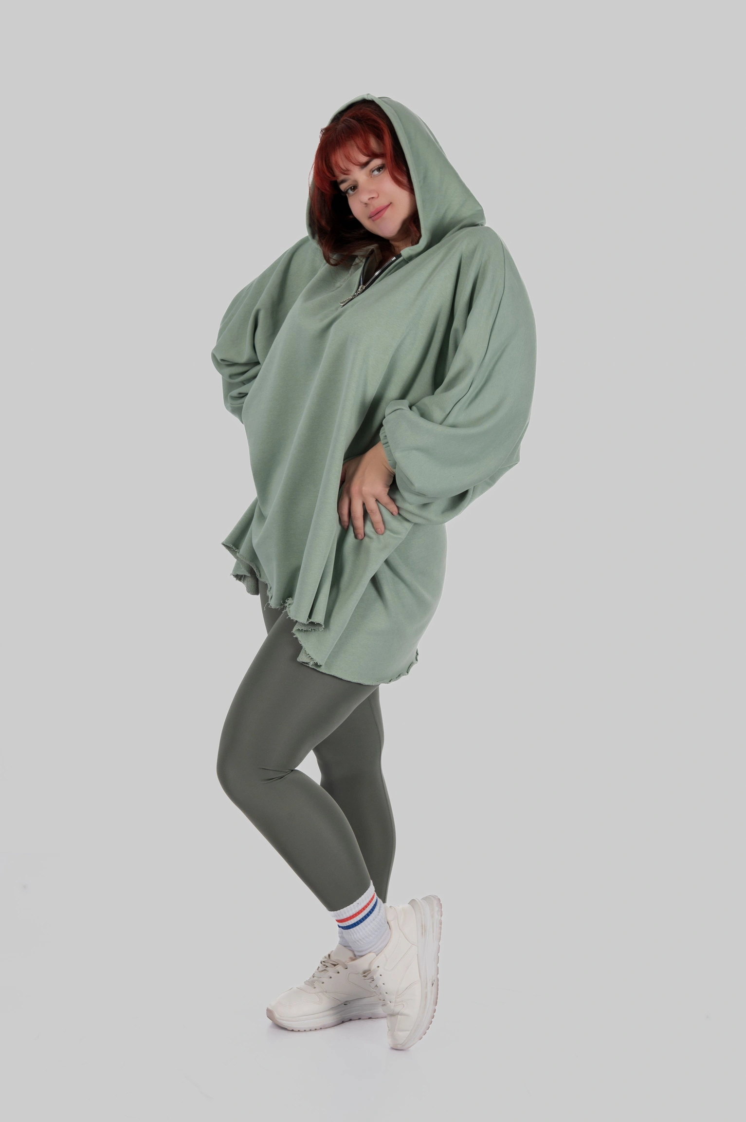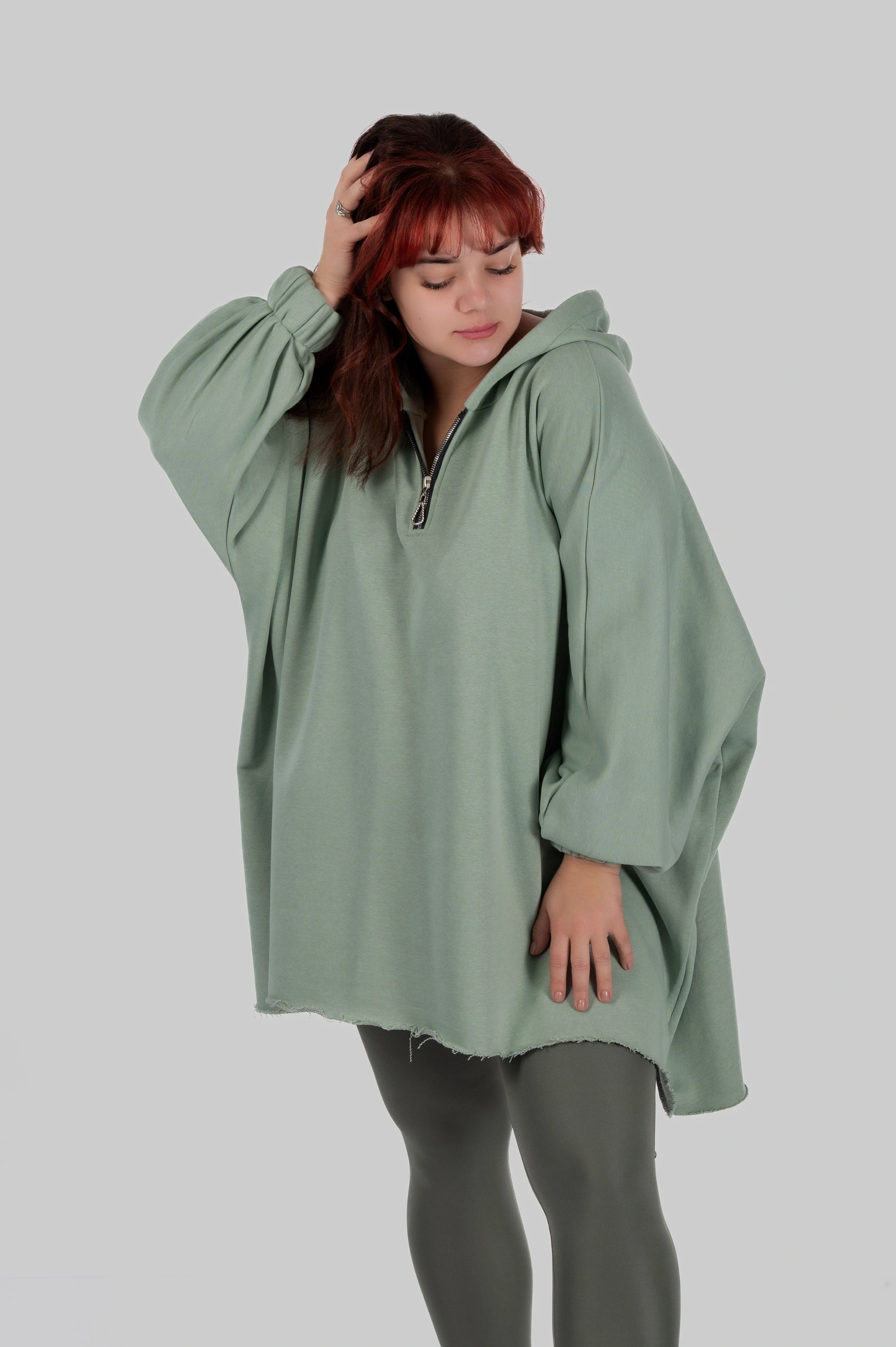 SILVA — обʼємна товстовка-пончо, що створює відчуття захищеності з першого дотику. Модель побудована на широкому силуеті з мʼякою лінією плеча та подовженою довжиною.