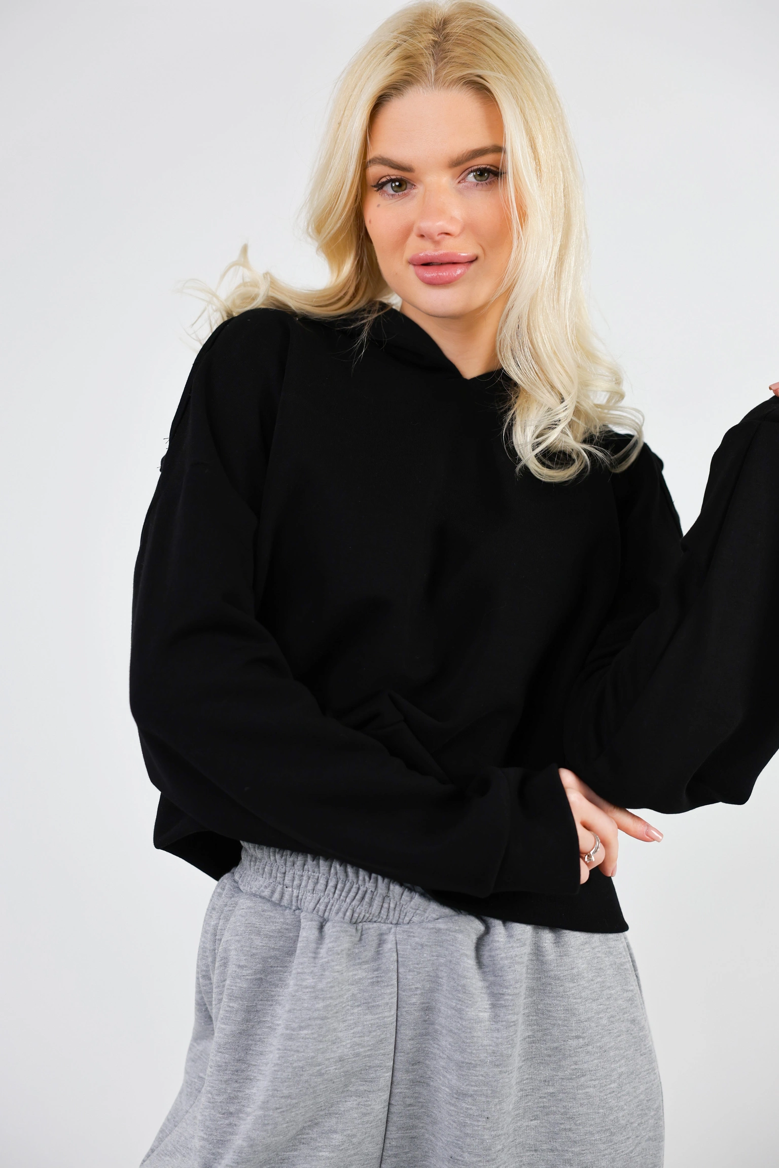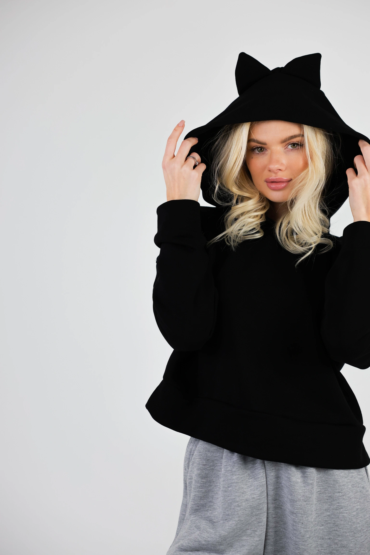 HoodieEars — худі, яке робить образ “з настроєм”.Лаконічна база в чорному кольорі + одна фірмова деталь, яка збирає всі компліменти: капюшон із вушками. Силует оверсайз, тканина м’яка й пружна, тому худі комфортно сідає та тримає форму.