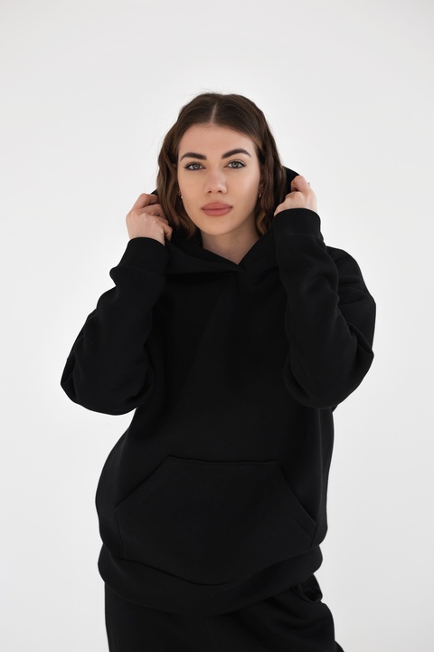 Спортивний костюм тринитка з начосом з карманом кенгуру EnergyLine (Чорний)
