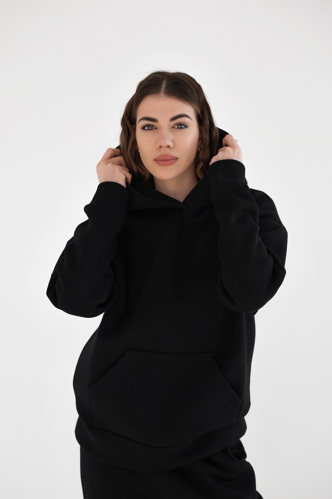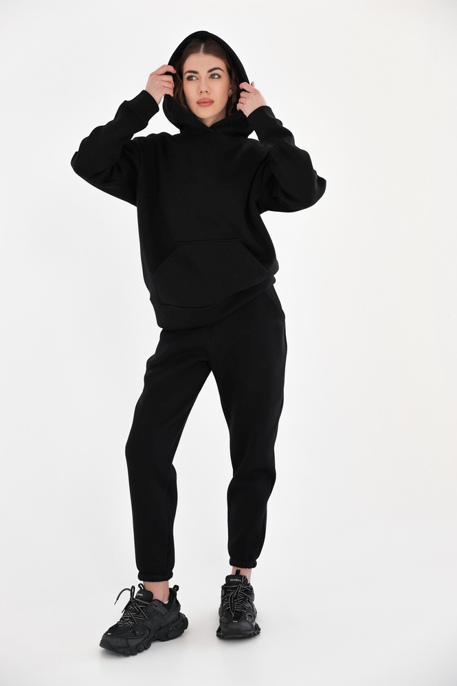 🔹 Фасон: худі вільного крою з подвійним капюшоном і кишенею "кенгуру" + зручні джогери з еластичним поясом і манжетами.