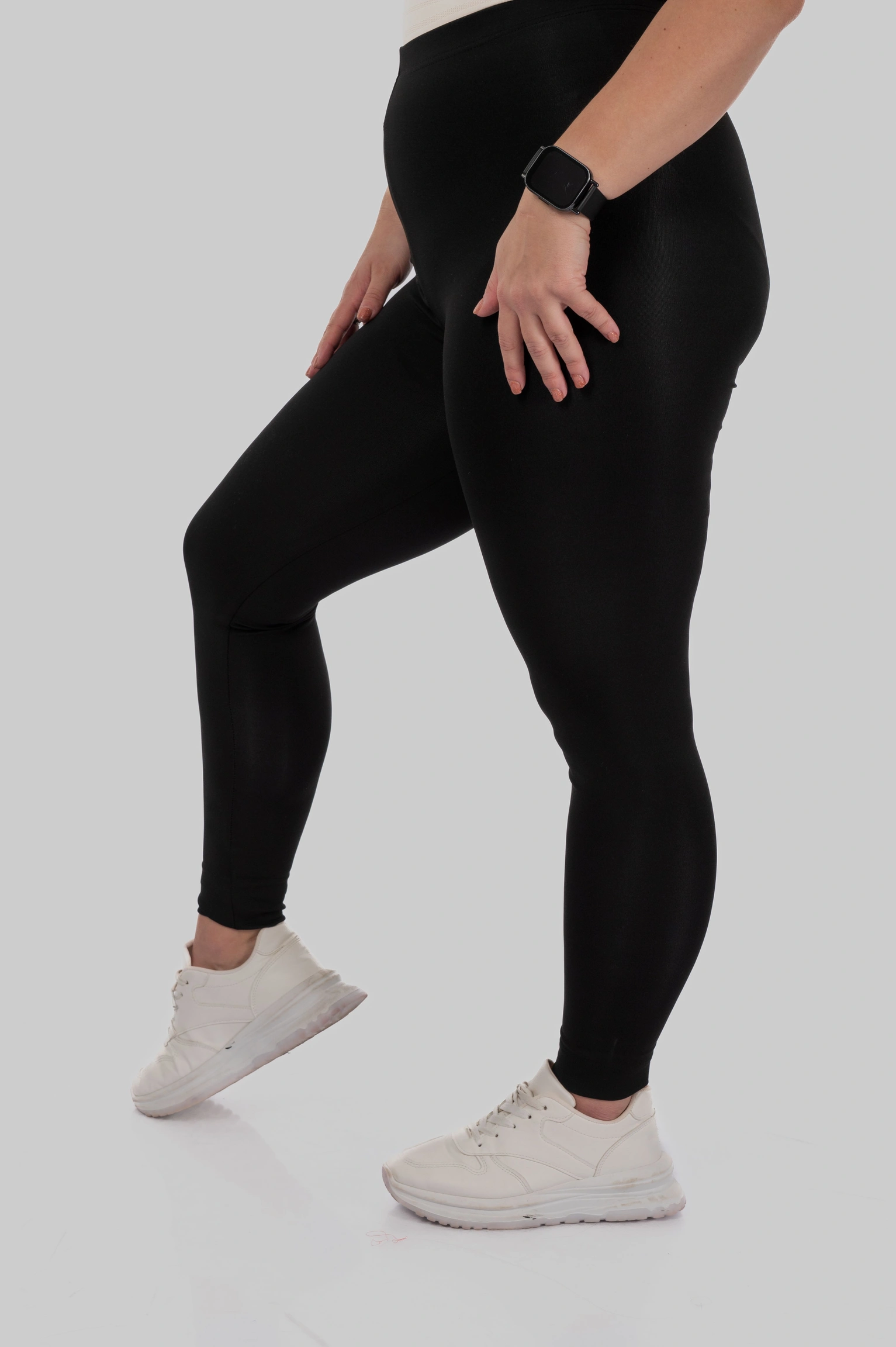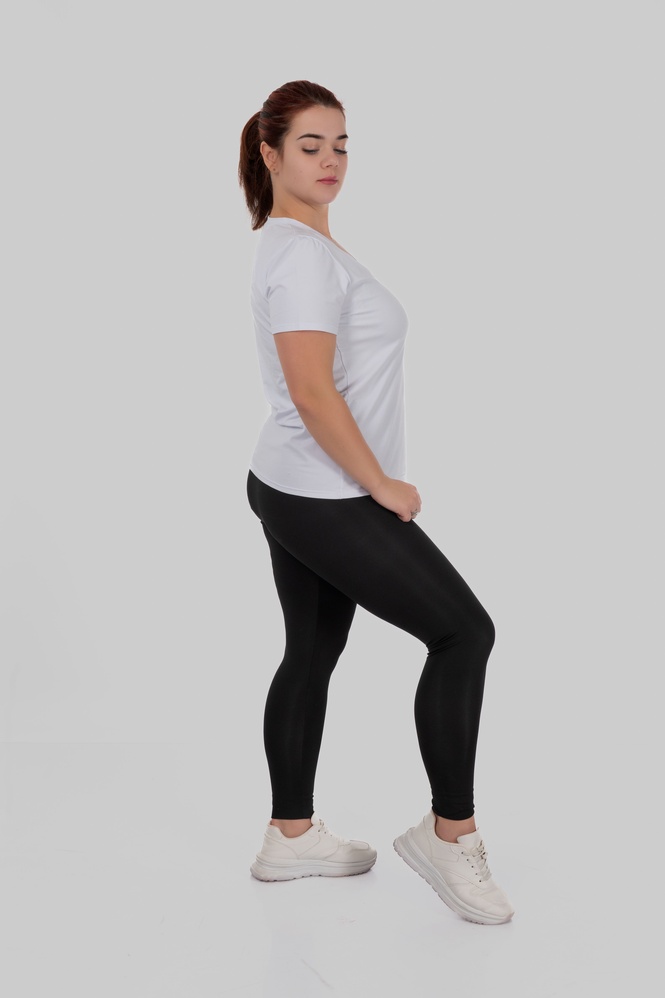 Вони не просто облягають — вони формують. Завдяки щільному турецькому матовому біфлексу 200 г/м² тканина м’яко стягує, вирівнює лінію стегон та сідниць і створює акуратний, підтягнутий вигляд без дискомфорту.