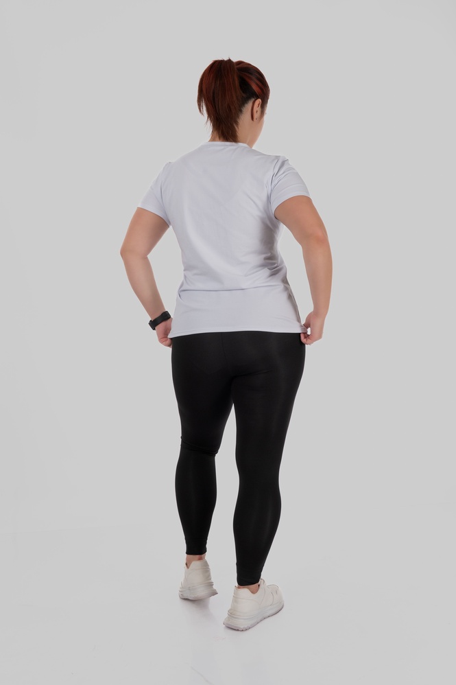 Матеріал розтягується у всіх напрямках (4-way stretch), повторює кожен рух і не сковує тіло. Легінси щільно прилягають, не просвічують, не сповзають і тримають форму навіть після активного носіння.