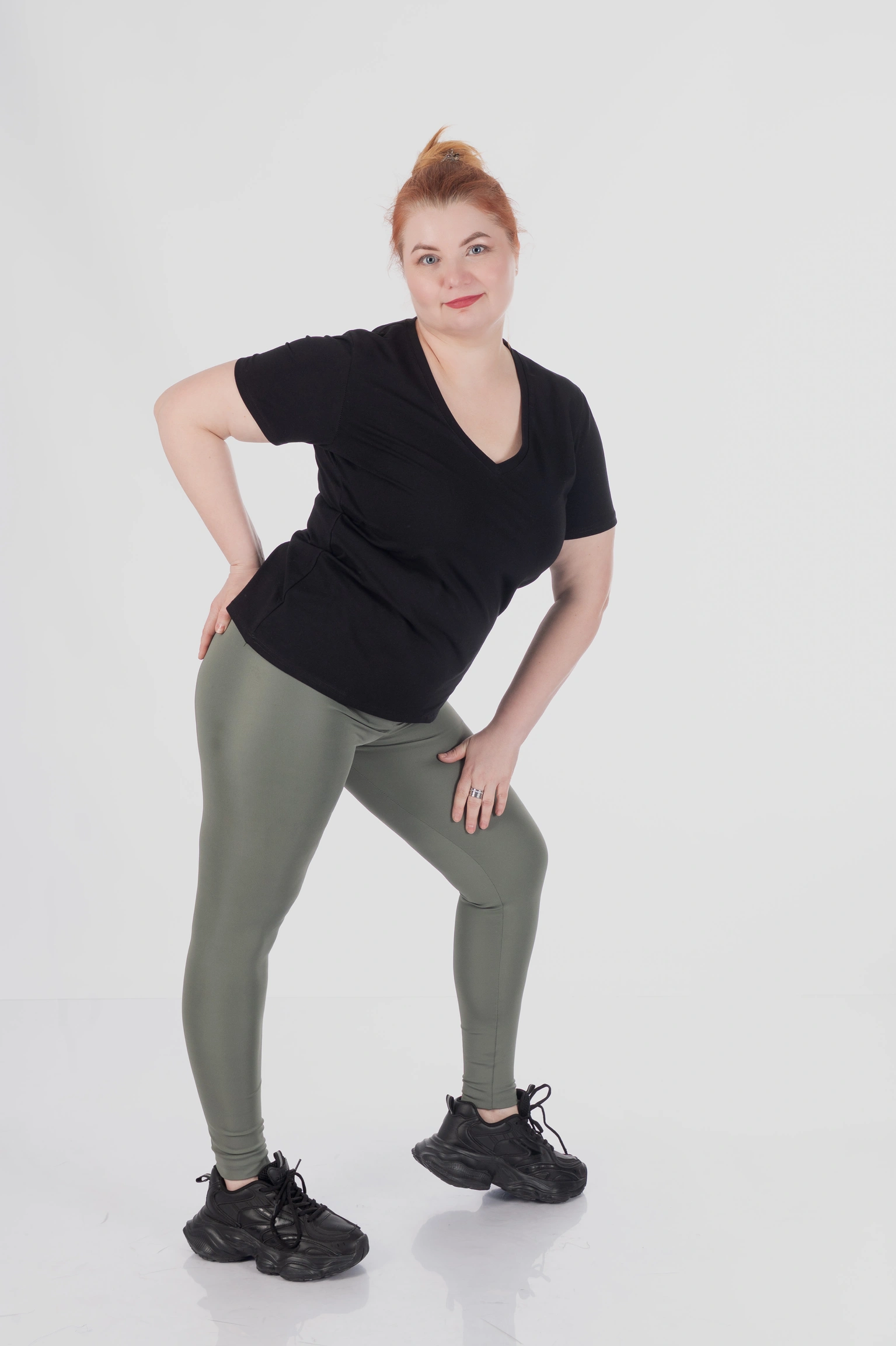 Вони не просто облягають — вони формують. Завдяки щільному турецькому матовому біфлексу 200 г/м² тканина м’яко стягує, вирівнює лінію стегон та сідниць і створює акуратний, підтягнутий вигляд без дискомфорту.