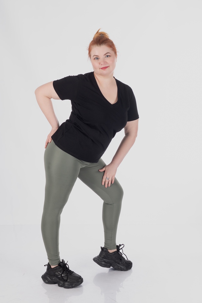 Матеріал розтягується у всіх напрямках (4-way stretch), повторює кожен рух і не сковує тіло. Легінси щільно прилягають, не просвічують, не сповзають і тримають форму навіть після активного носіння.