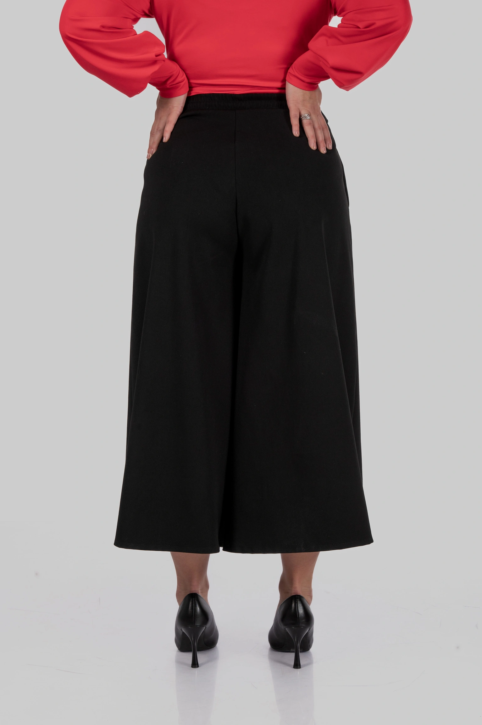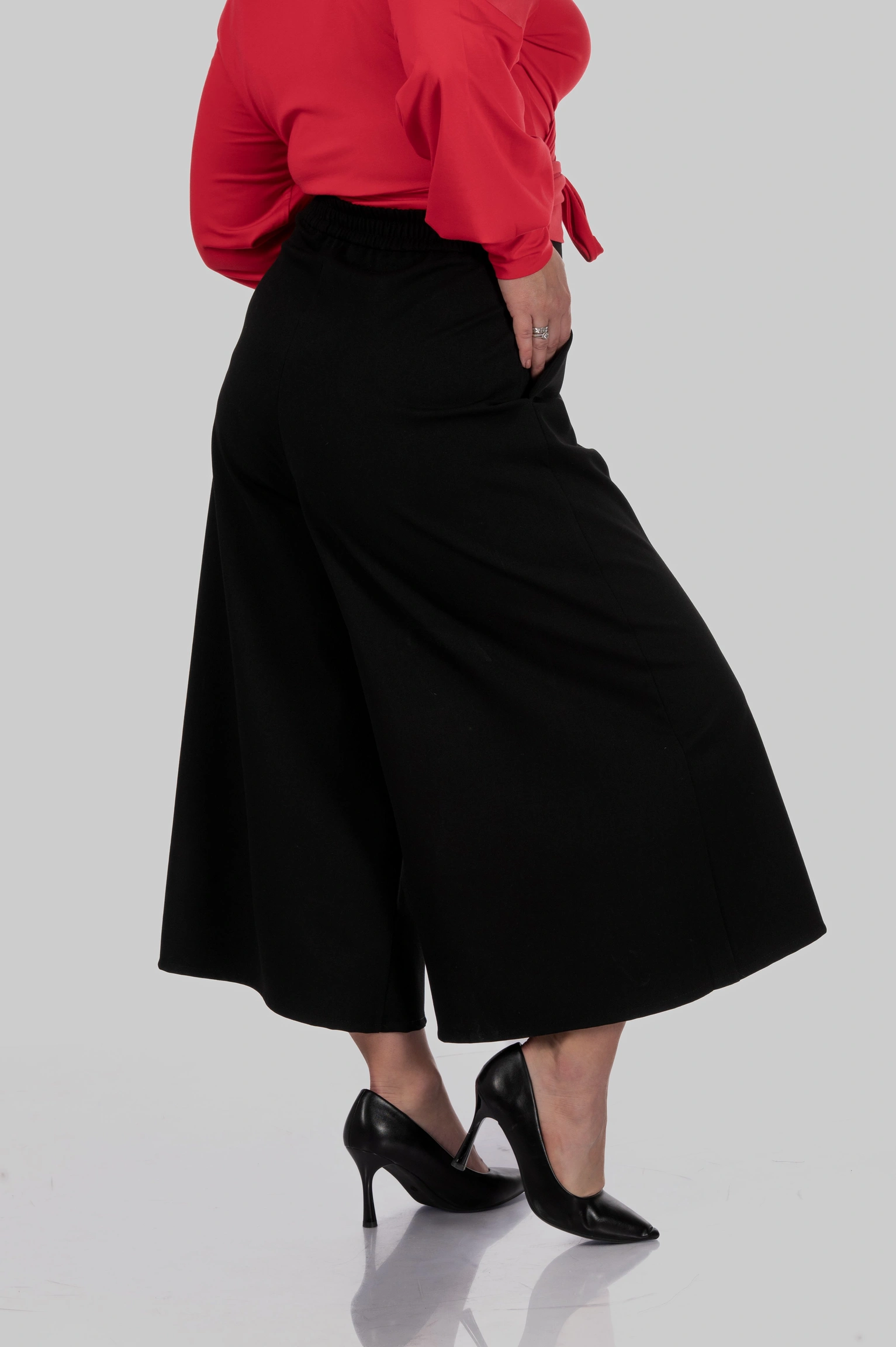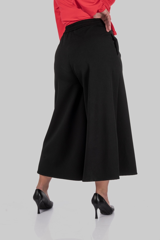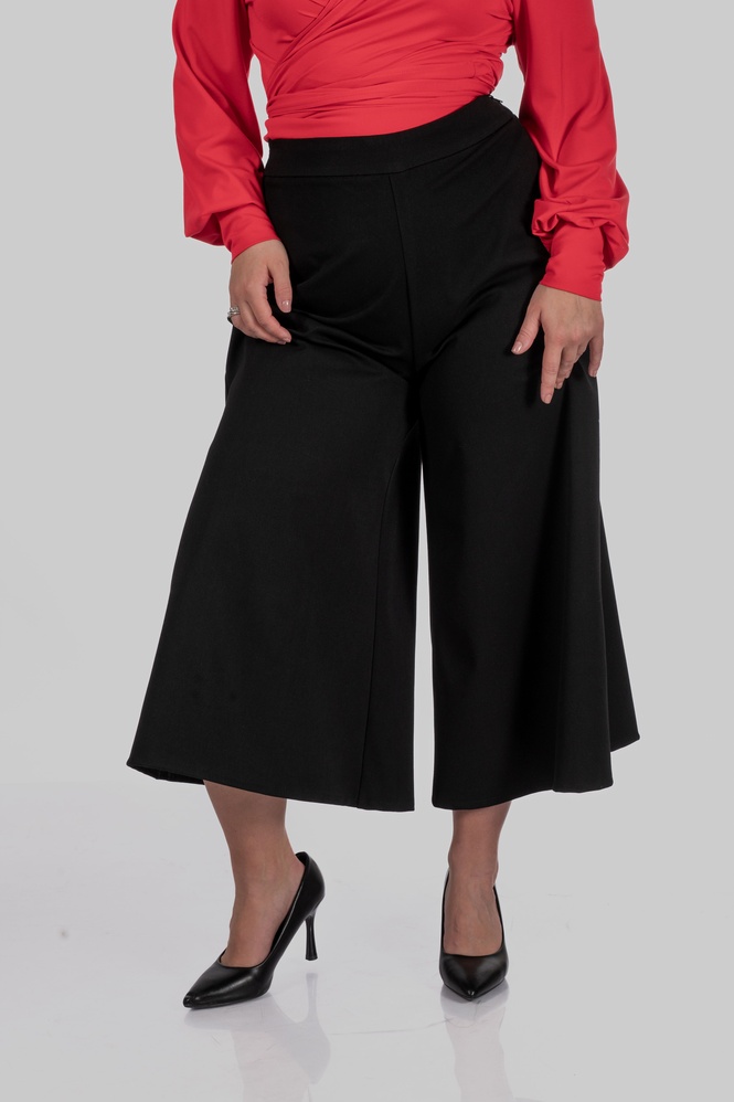 Кюлоти мають вільний крій і високу посадку, що дозволяє комфортно адаптувати їх під різні типи фігур. Орієнтуйтесь на обхват талії та стегон.