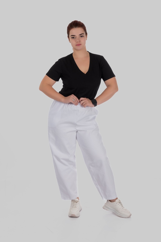 Це універсальна модель, яка поєднує комфорт натуральної тканини, продуманий крій і сучасний силует. Саме такі штани стають основою літнього гардероба.