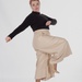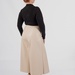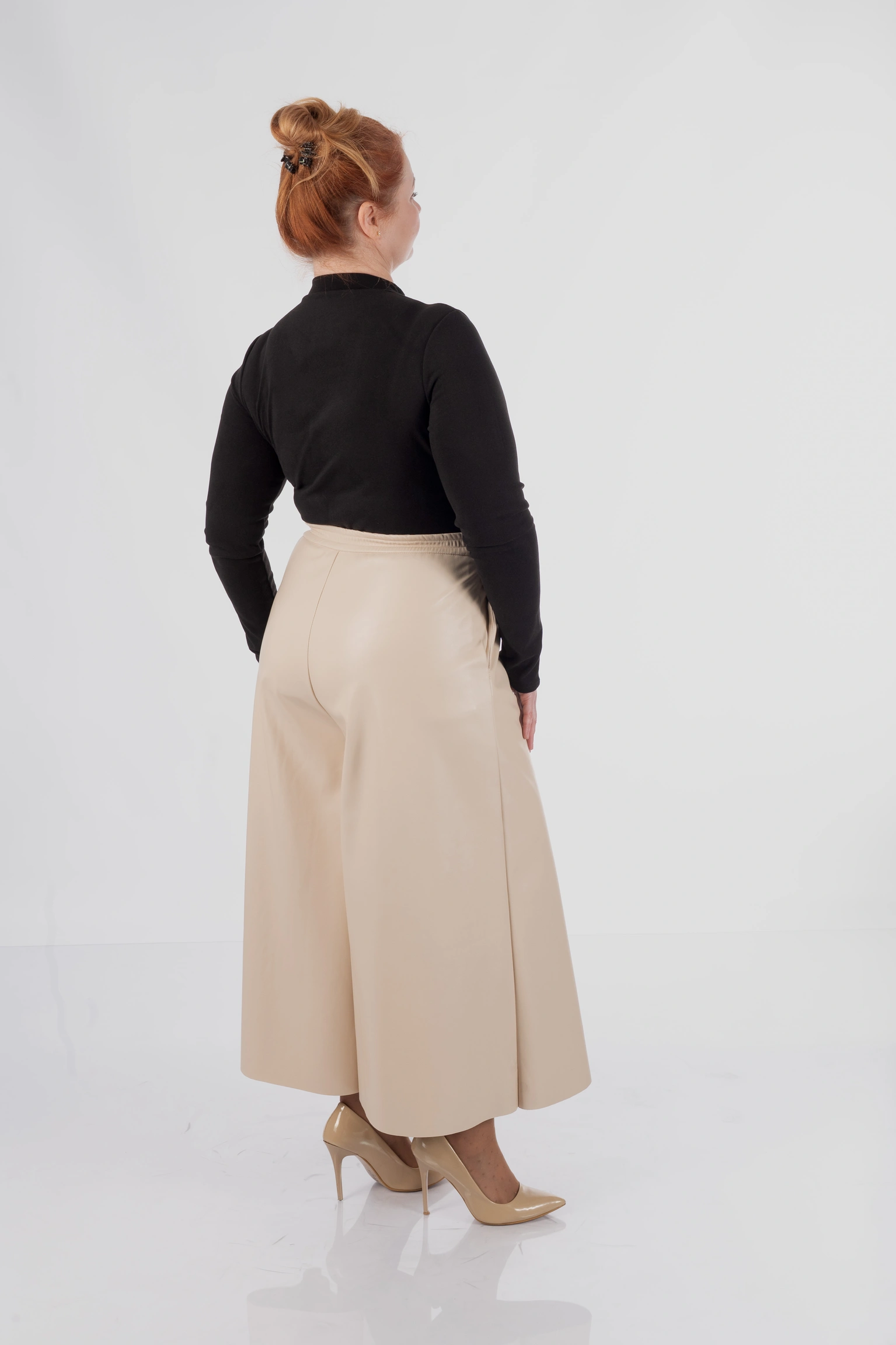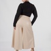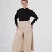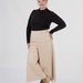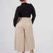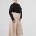 Довжина — міді. Саме вона робить модель універсальною: кюлоти добре працюють із кросівками, лоферами, ботильйонами та більш акцентним взуттям. Правильне розширення донизу не додає зайвого об’єму і дозволяє моделі виглядати сучасно.