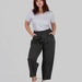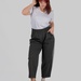У plus size штанах найважливіше — як вони поводяться в зоні живота, стегон і паху. Саме тут IRIS працюють особливо вдало. Фасон mom із запасом у стегнах і вираженим звуженням донизу дає достатньо простору там, де він потрібен, тому модель не обтягує фігуру, але й не виглядає мішкувато.