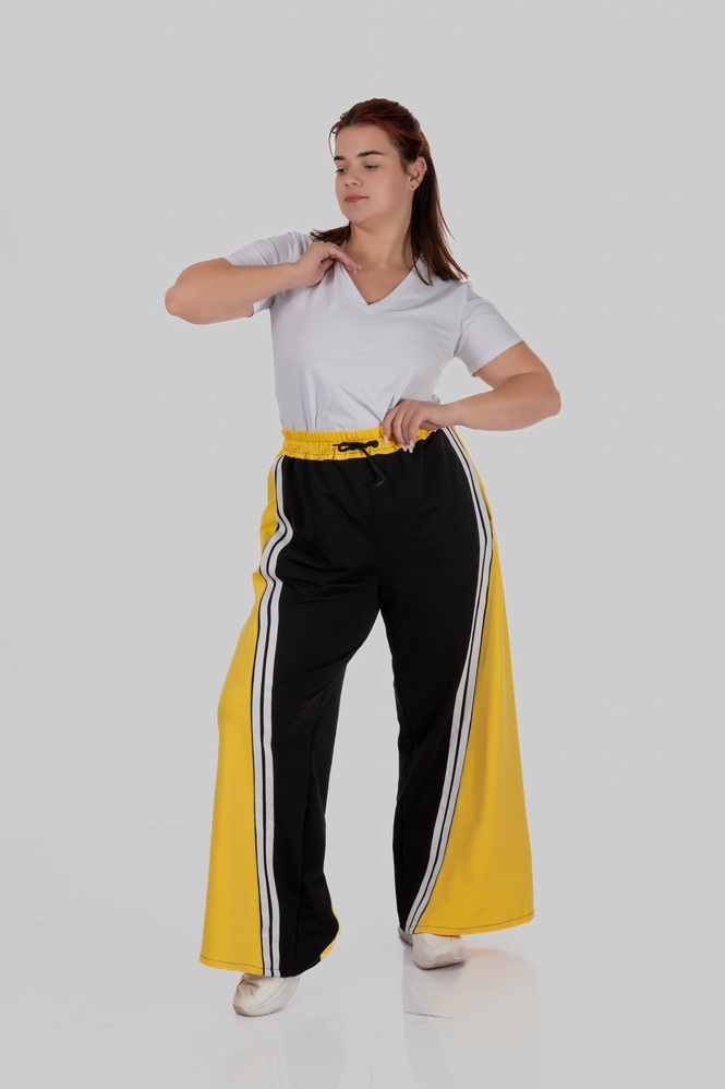 Жіночі штани з контрастними вставками та лампасами плюс сайз Sabina