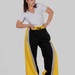 Контрастні елементи працюють як візуальний інструмент корекції фігури — вони витягують ноги і додають динаміки образу.