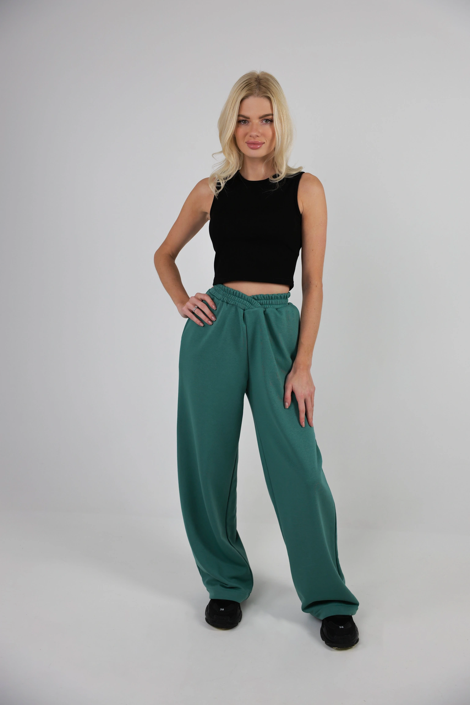 Тканина — двонитка без начосу: приємна до тіла, дихає, тримає форму й виглядає охайно навіть у “динамічному” темпі. Це не “піжамні штани”, а повноцінна база, яку легко зібрати в образ.