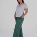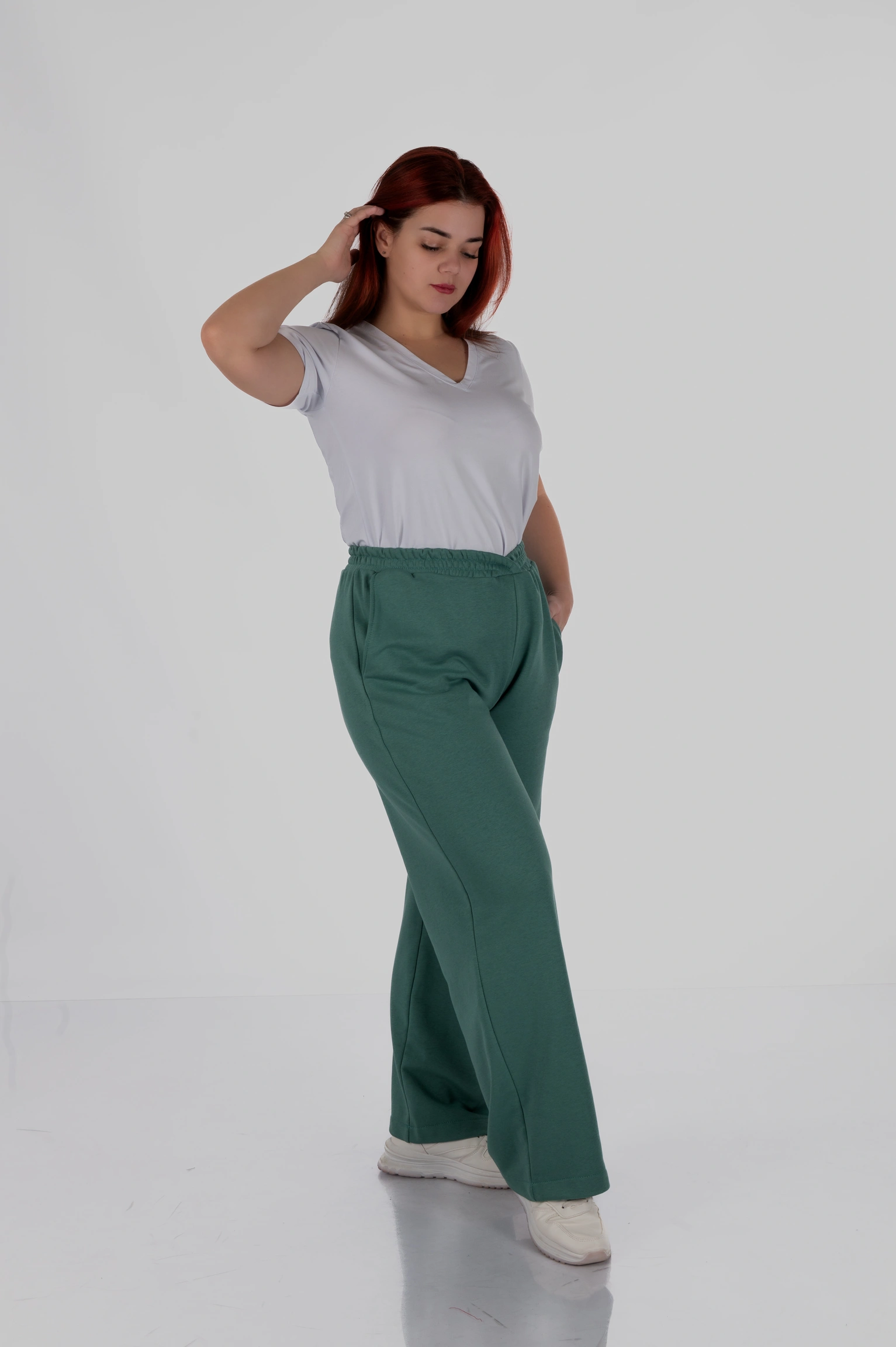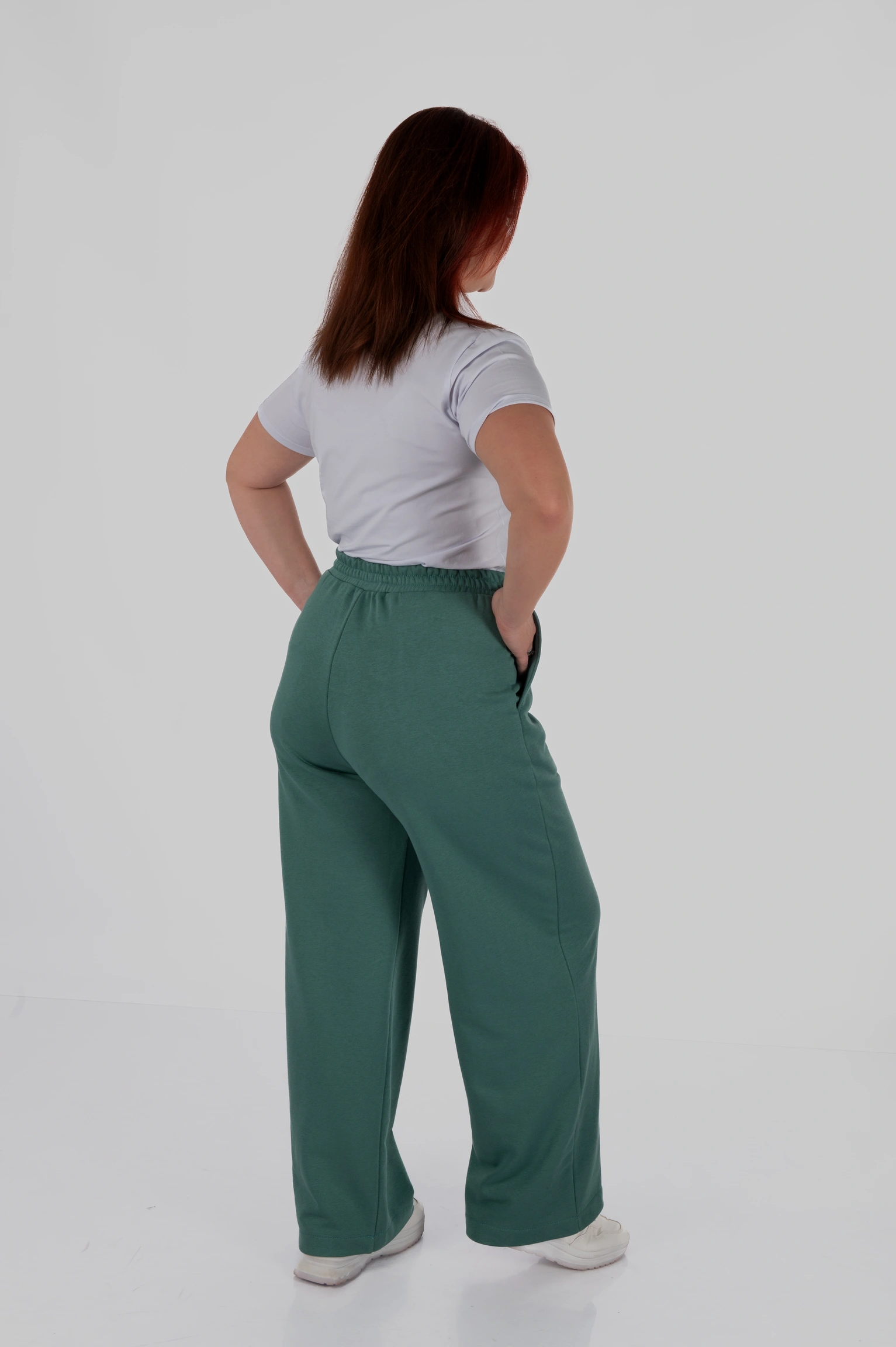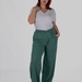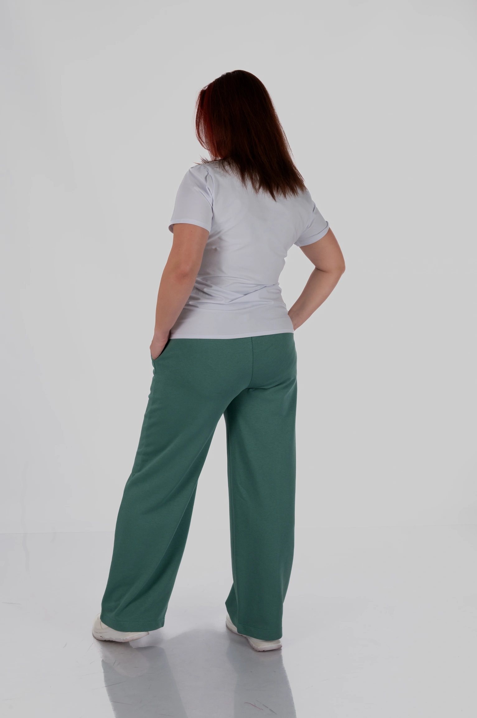 Посадка у моделі комфортно висока. Пояс еластичний і добре адаптується до фігури, не створює жорсткого тиску в зоні живота та не сповзає під час руху. Це особливо важливо для plus size фігури, де правильна посадка визначає, наскільки річ буде зручною протягом дня.