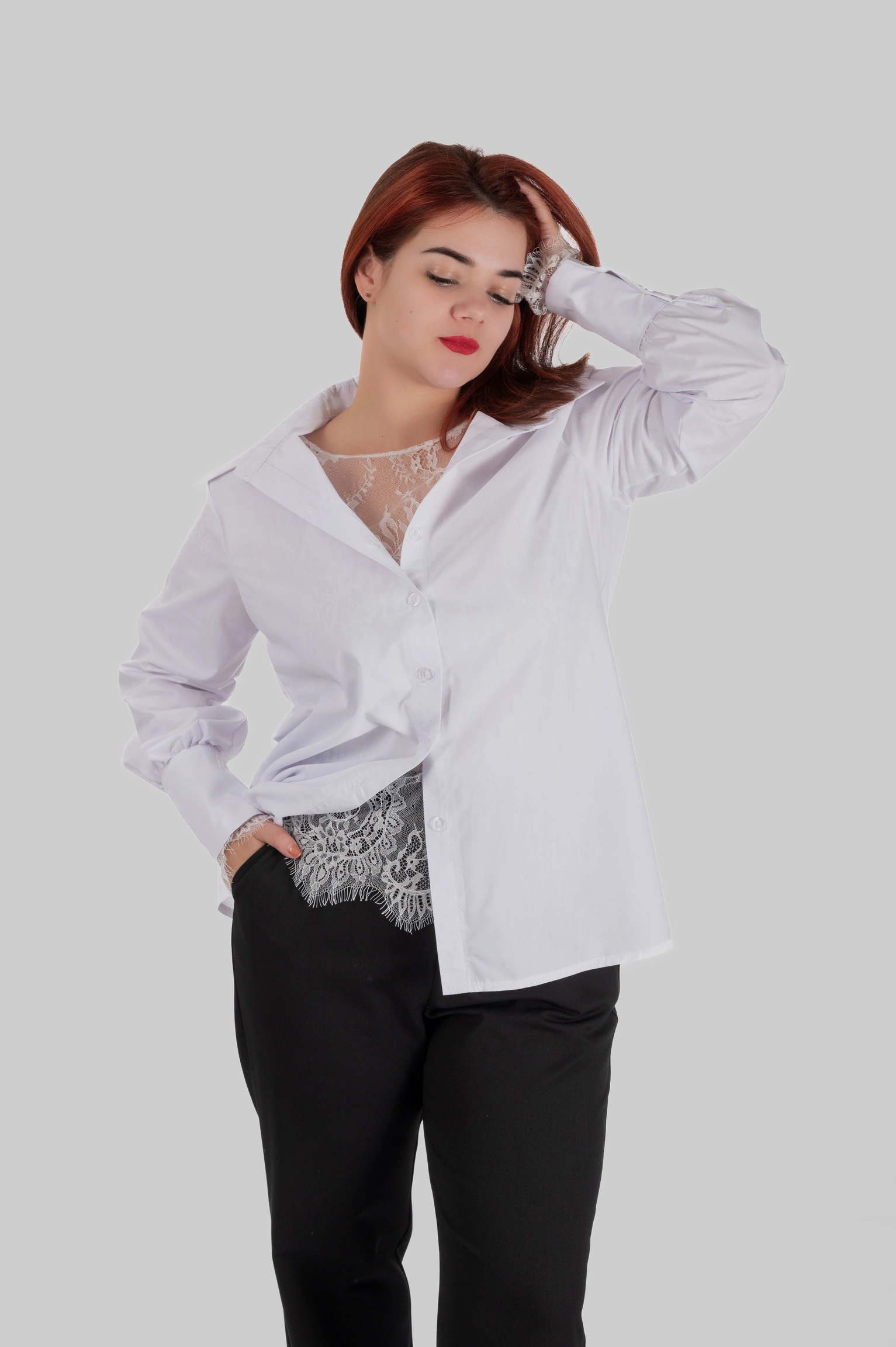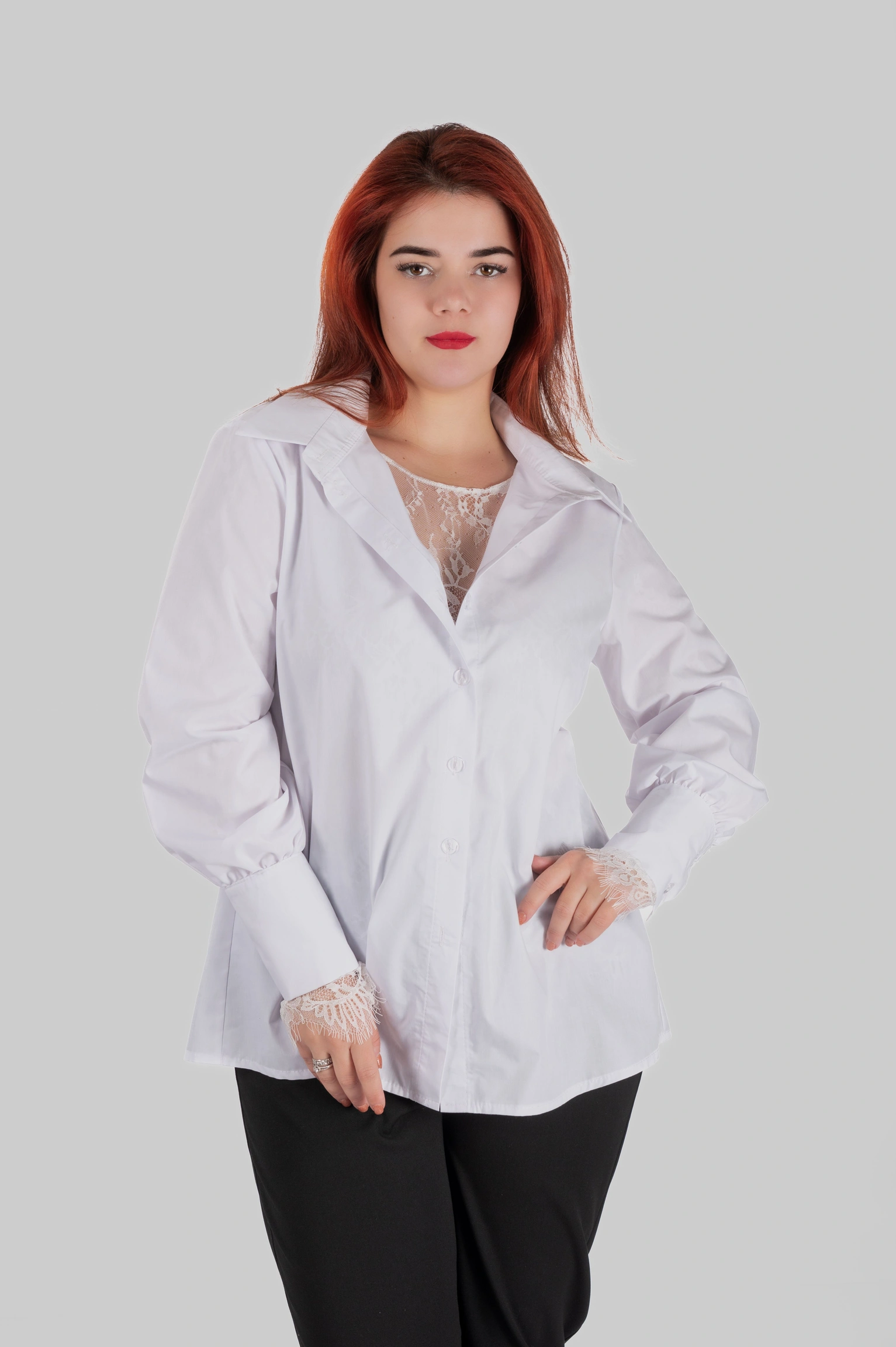 Фішка CLIO — подовжені манжети на ґудзику. Вони виглядають особливо елегантно, коли рукав трохи підкочений або коли сорочку носять поверх лонгсліва/топа — зап’ястя відкривається красиво й додає образу “дорогого” акценту без прикрас.