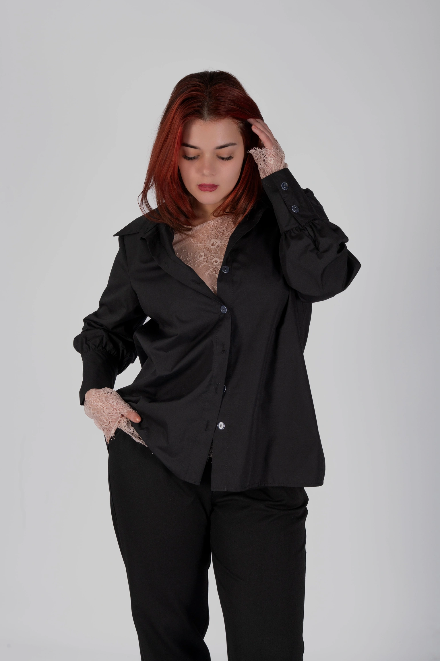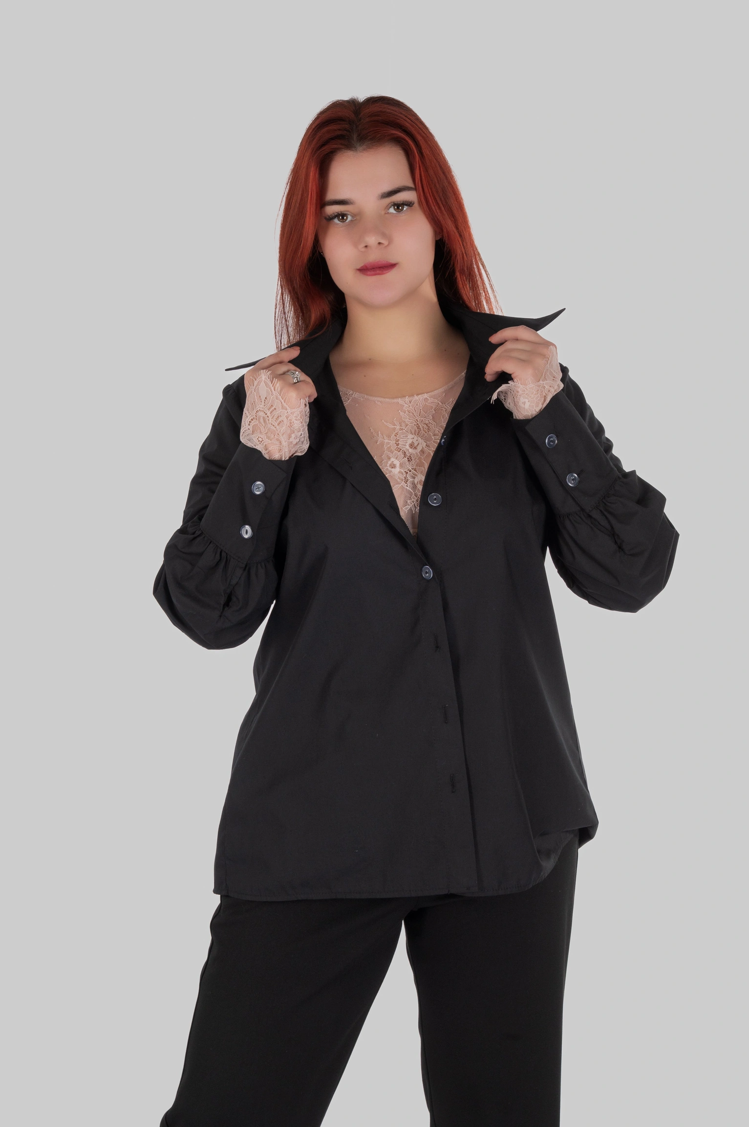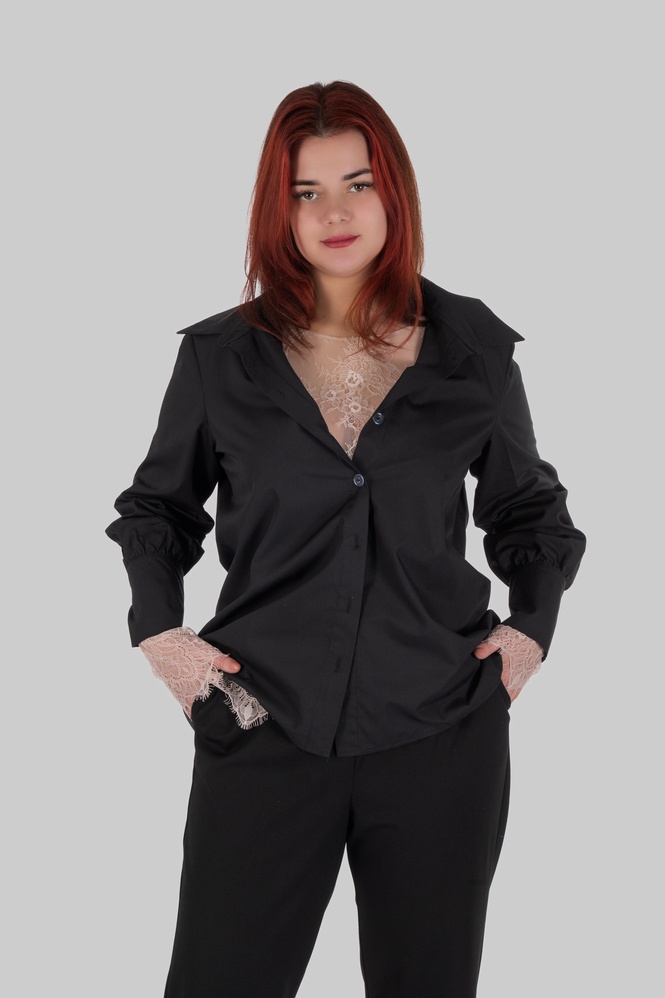 Фішка CLIO — подовжені манжети на ґудзику. Вони виглядають особливо елегантно, коли рукав трохи підкочений або коли сорочку носять поверх лонгсліва/топа — зап’ястя відкривається красиво й додає образу “дорогого” акценту без прикрас.
