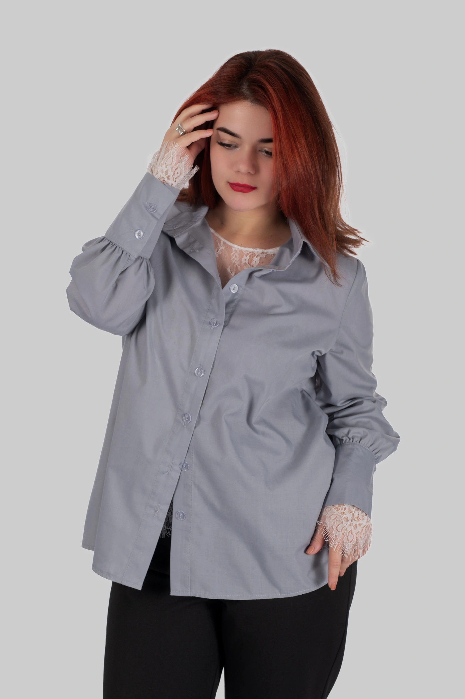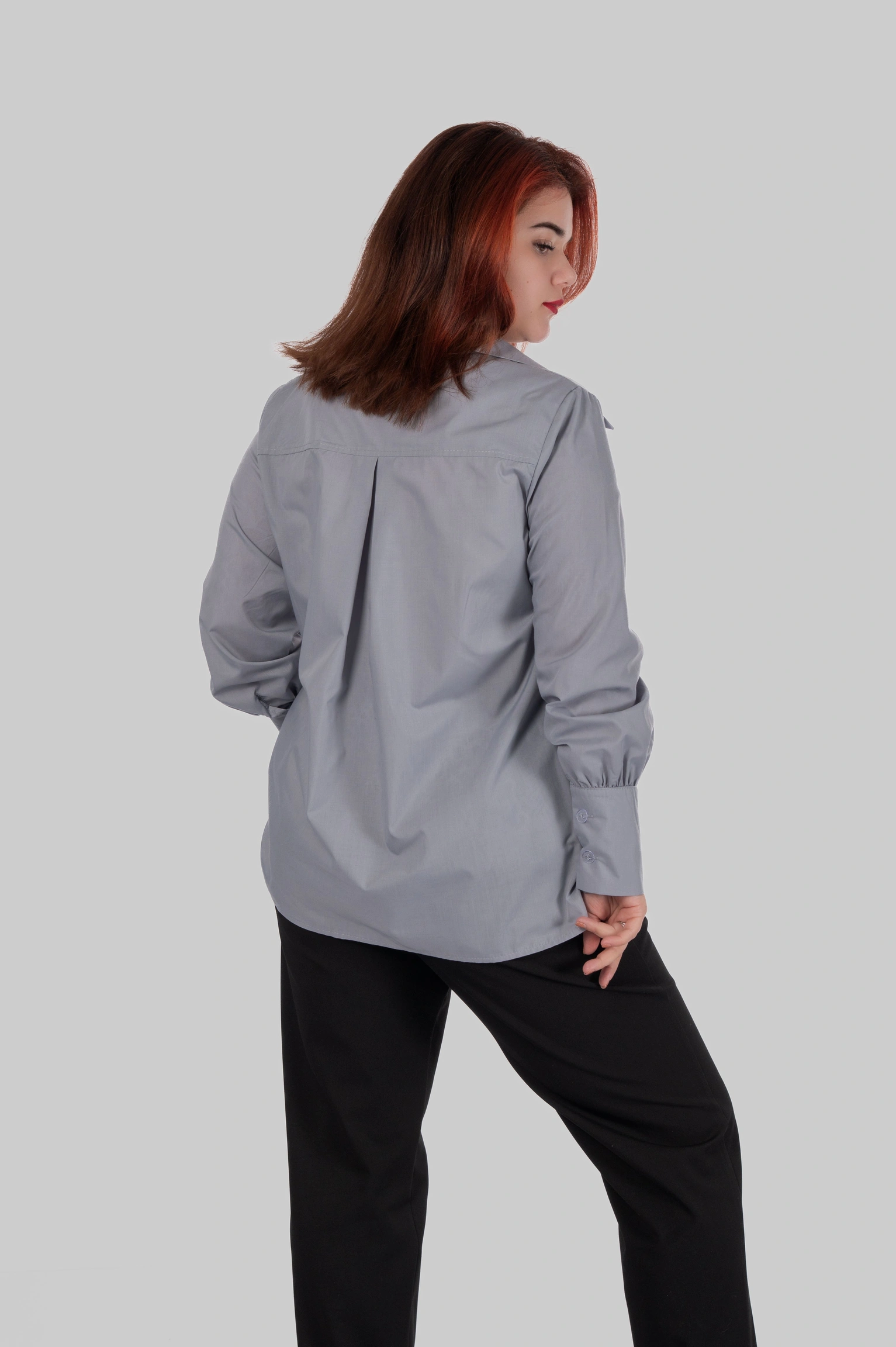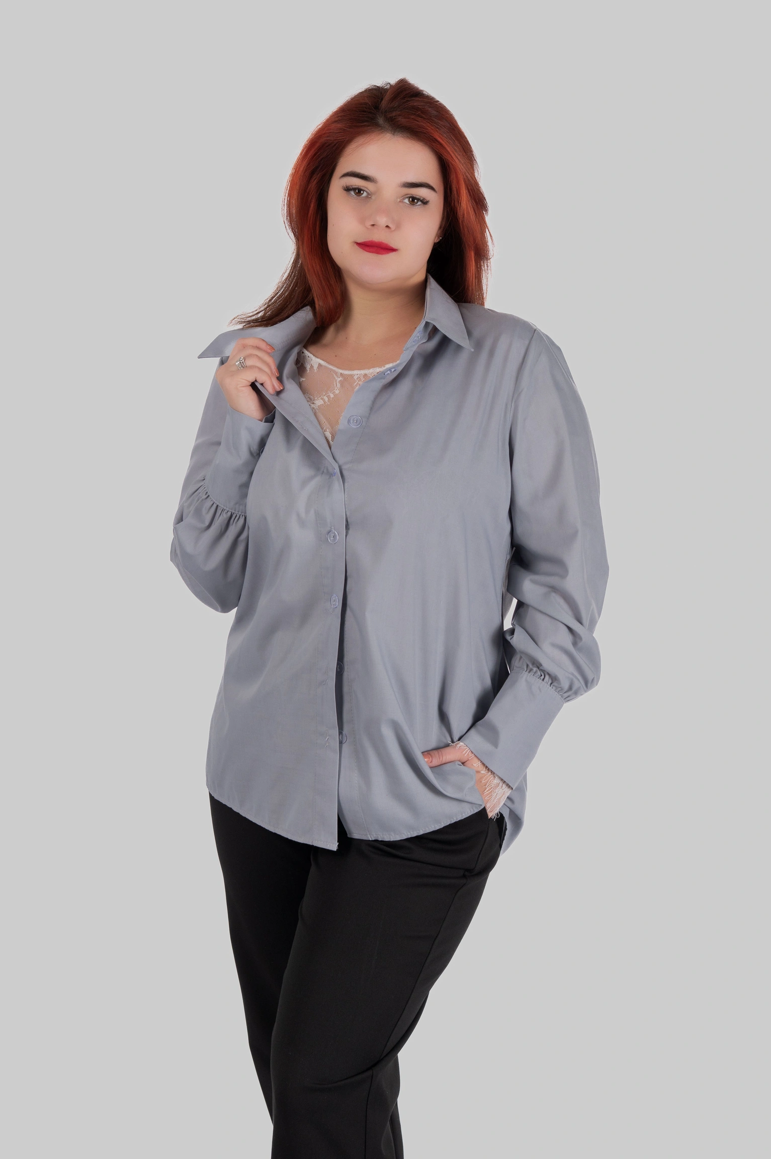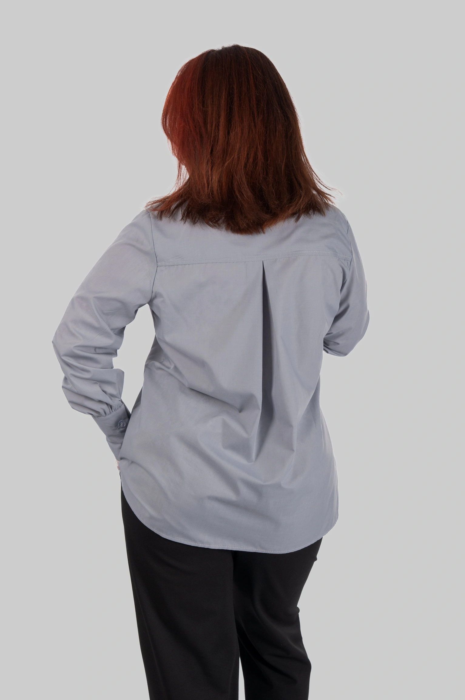 Тканина — бавовняний поплін (100% бавовна, Туреччина). Поплін має приємну гладку поверхню, добре пропускає повітря та тримає форму — сорочка виглядає зібрано навіть у простих комплектах. Еластичності немає, тому посадка має бути комфортною по грудях і плечах.
