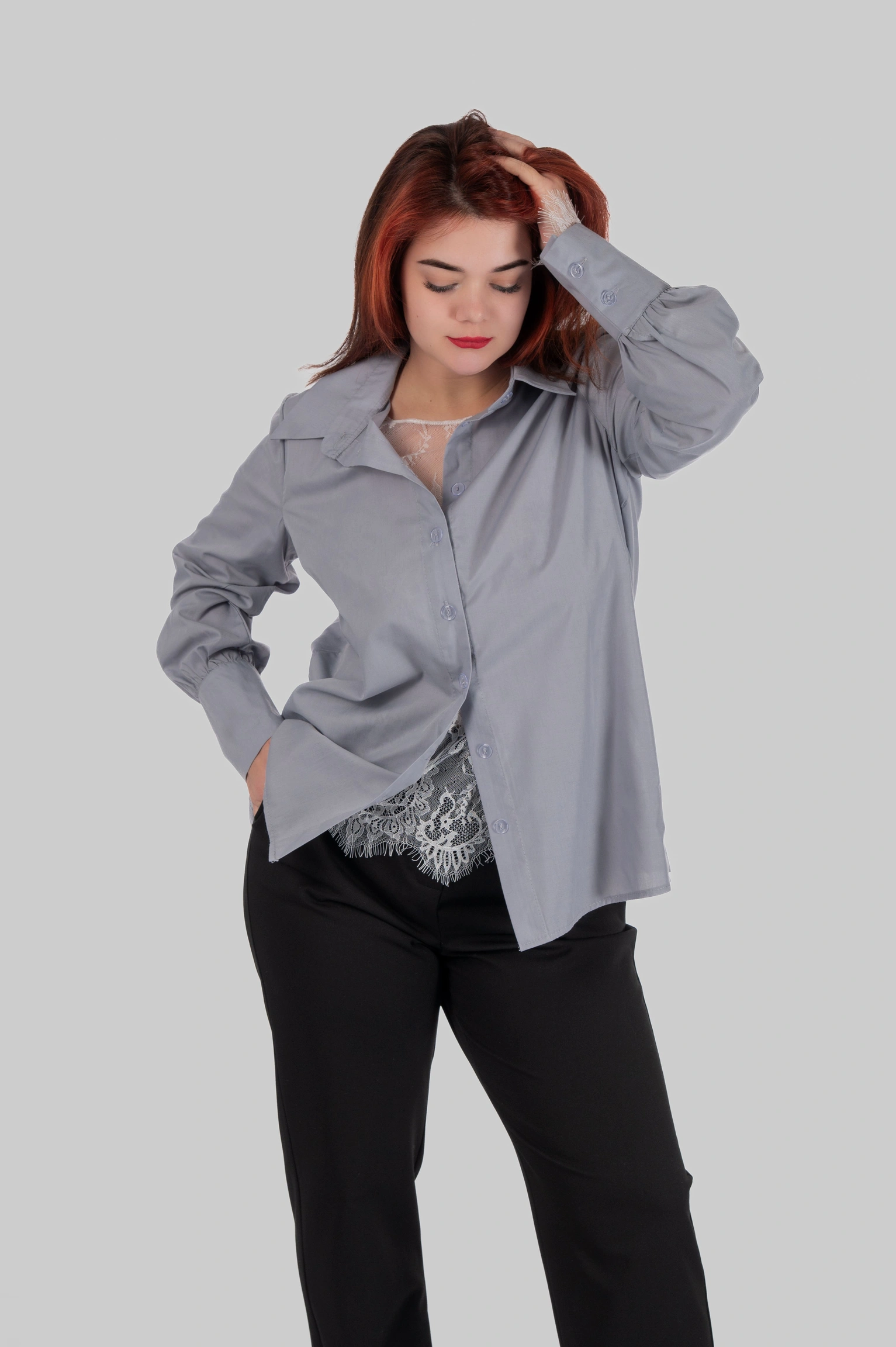 Фішка CLIO — подовжені манжети на ґудзику. Вони виглядають особливо елегантно, коли рукав трохи підкочений або коли сорочку носять поверх лонгсліва/топа — зап’ястя відкривається красиво й додає образу “дорогого” акценту без прикрас.