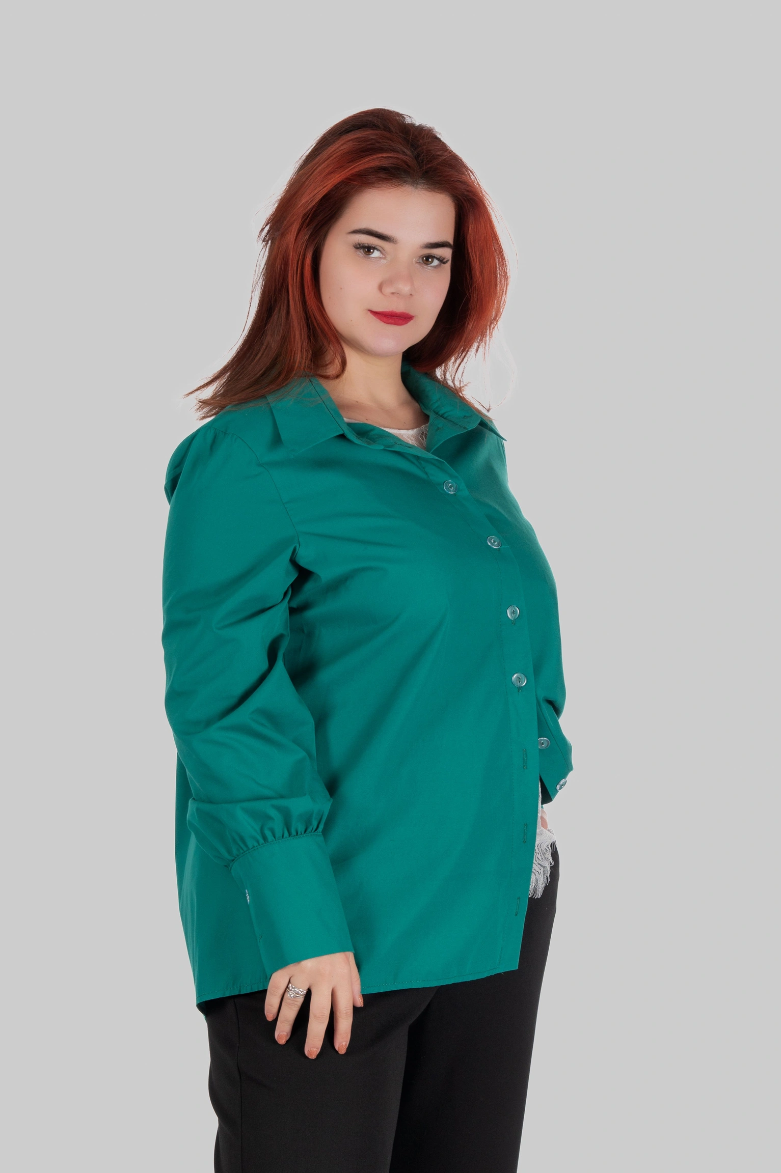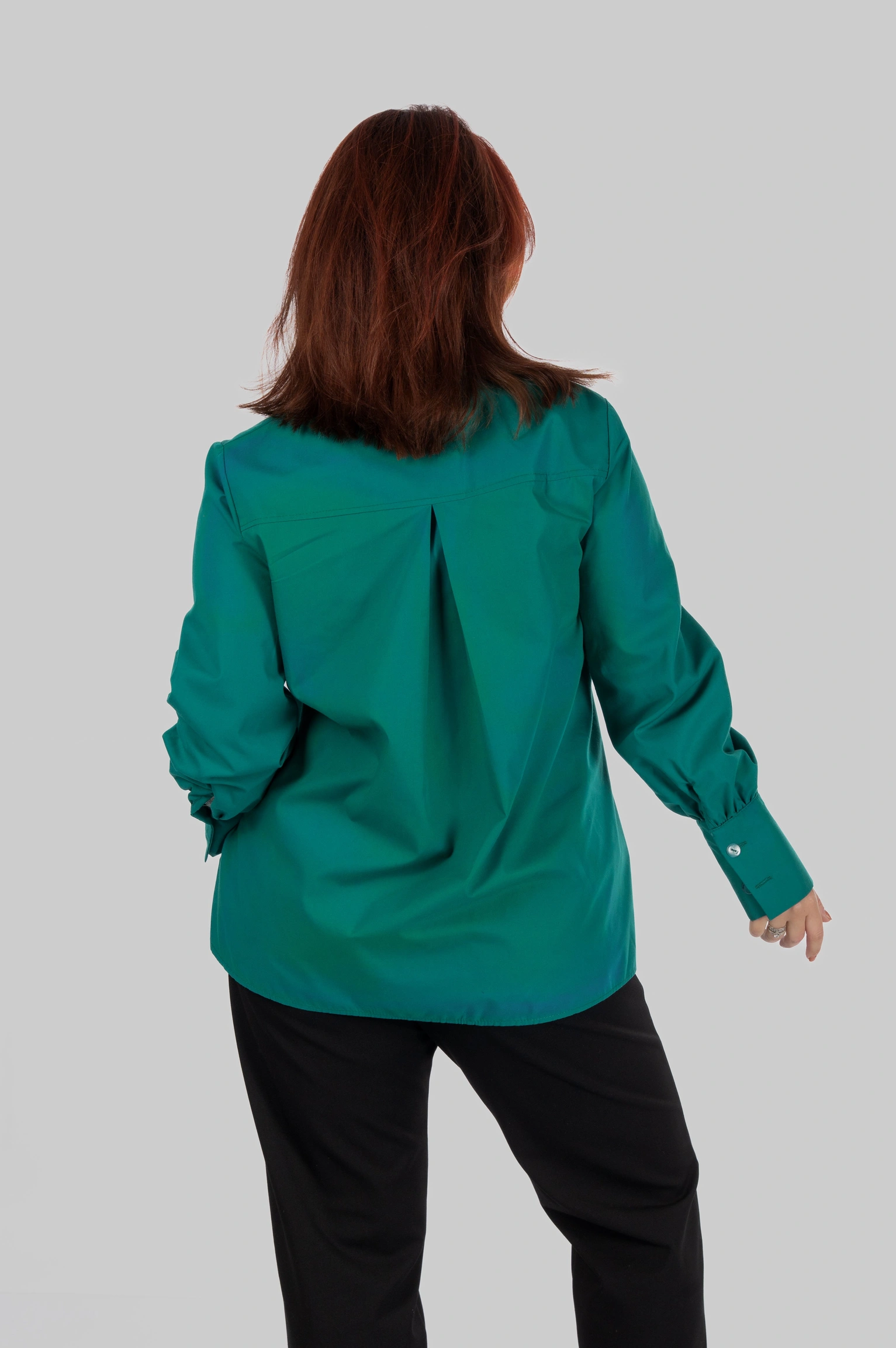 Тканина — бавовняний поплін (100% бавовна, Туреччина). Поплін має приємну гладку поверхню, добре пропускає повітря та тримає форму — сорочка виглядає зібрано навіть у простих комплектах. Еластичності немає, тому посадка має бути комфортною по грудях і плечах.
