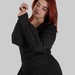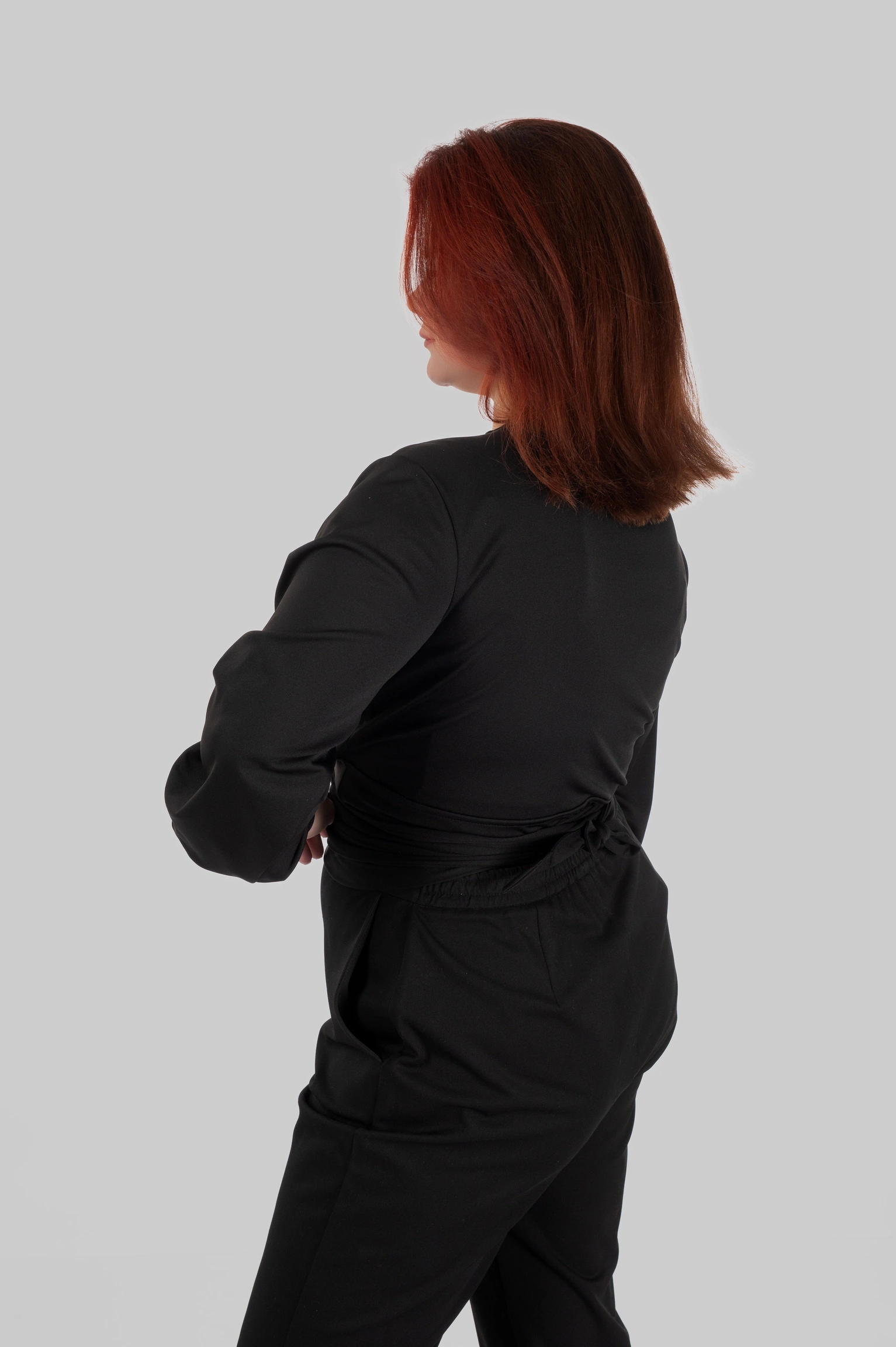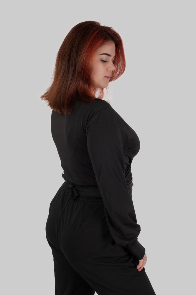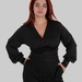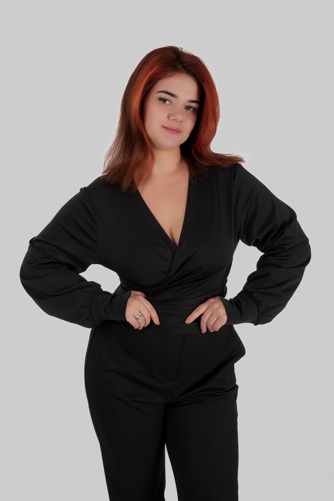 Конструкція запаху дозволяє легко регулювати посадку і адаптувати блузу під різні пропорції фігури.