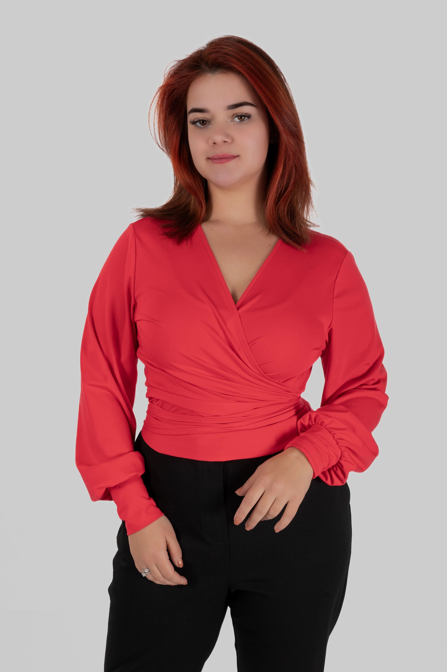 Блуза на запах з глибоким V-вирізом з еластичного трикотажу MOANA