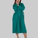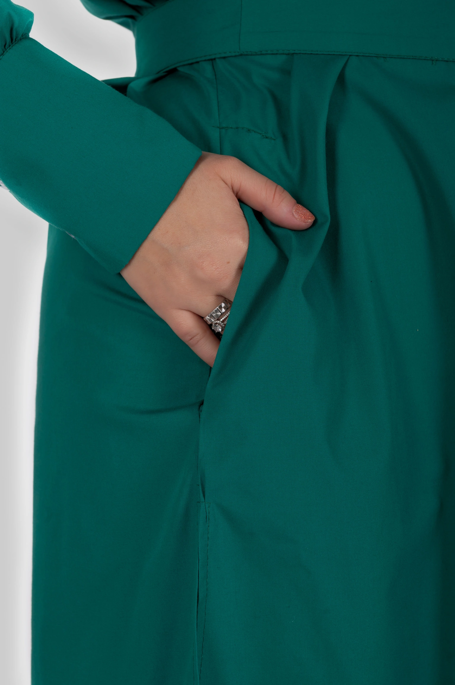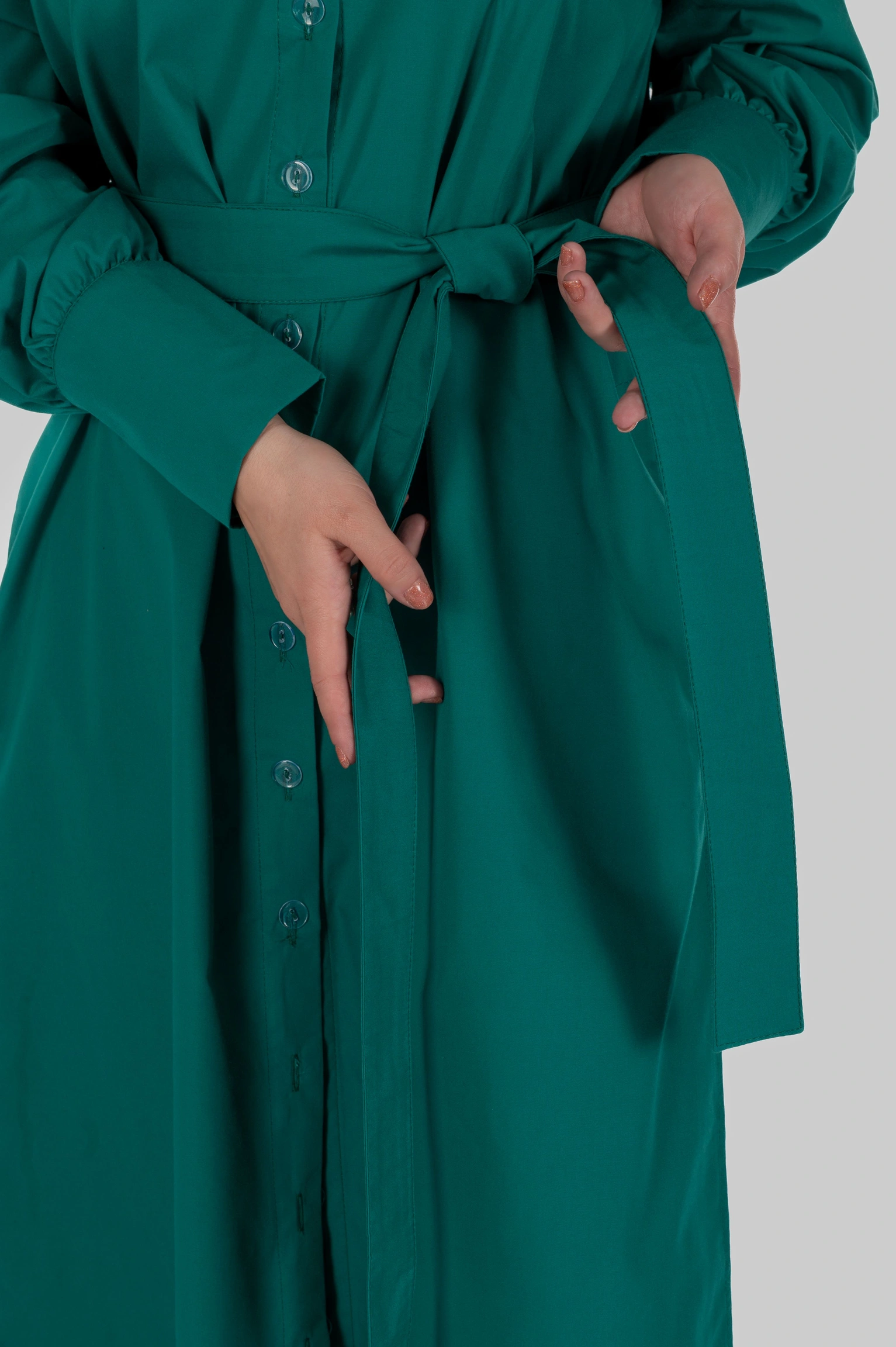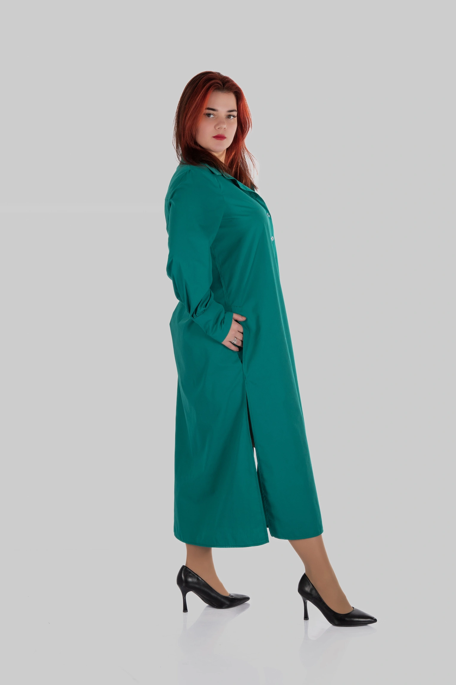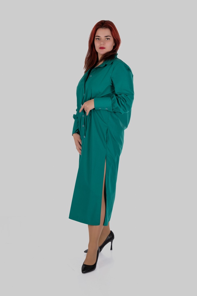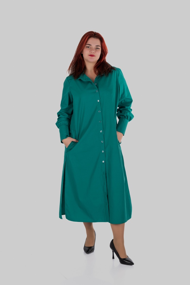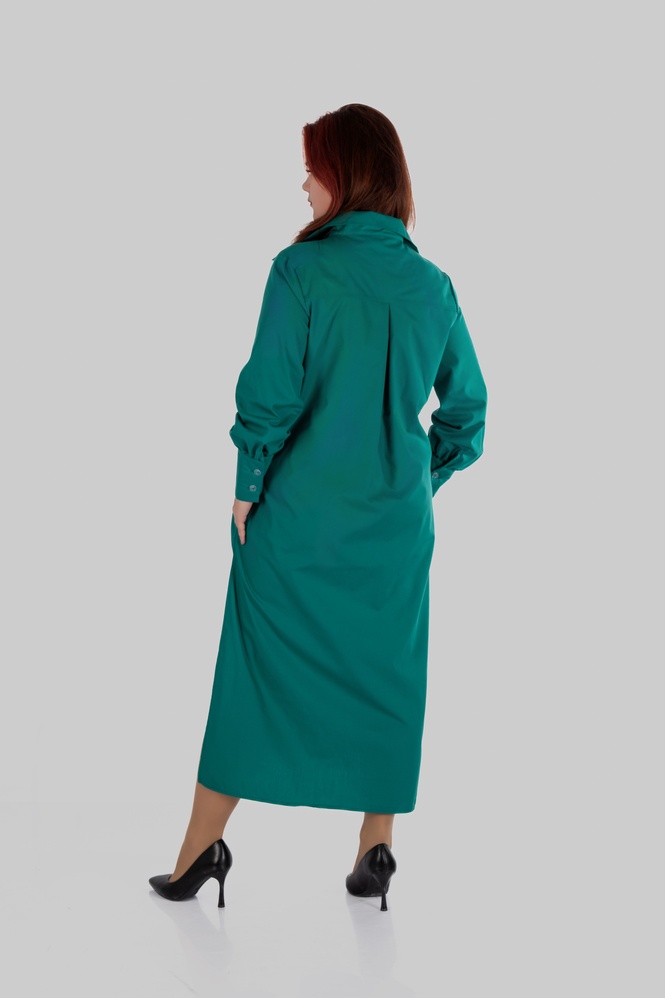Модель має класичний сорочковий комір з виразною формою. Його можна носити у класичному вигляді або піднімати, створюючи більш структурований акцент біля обличчя. Така деталь додає образу характеру і дозволяє стилізувати сукню по-різному.