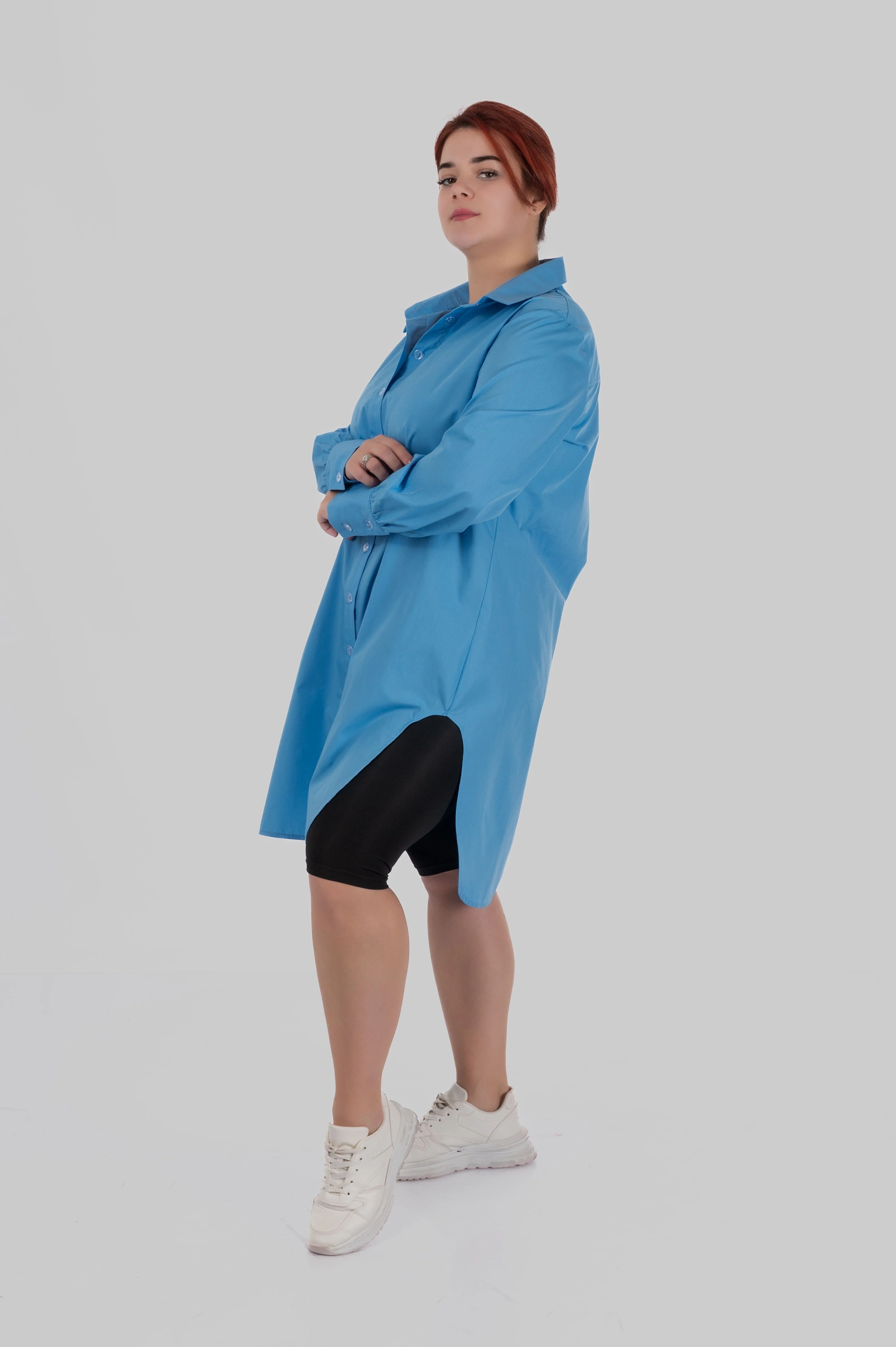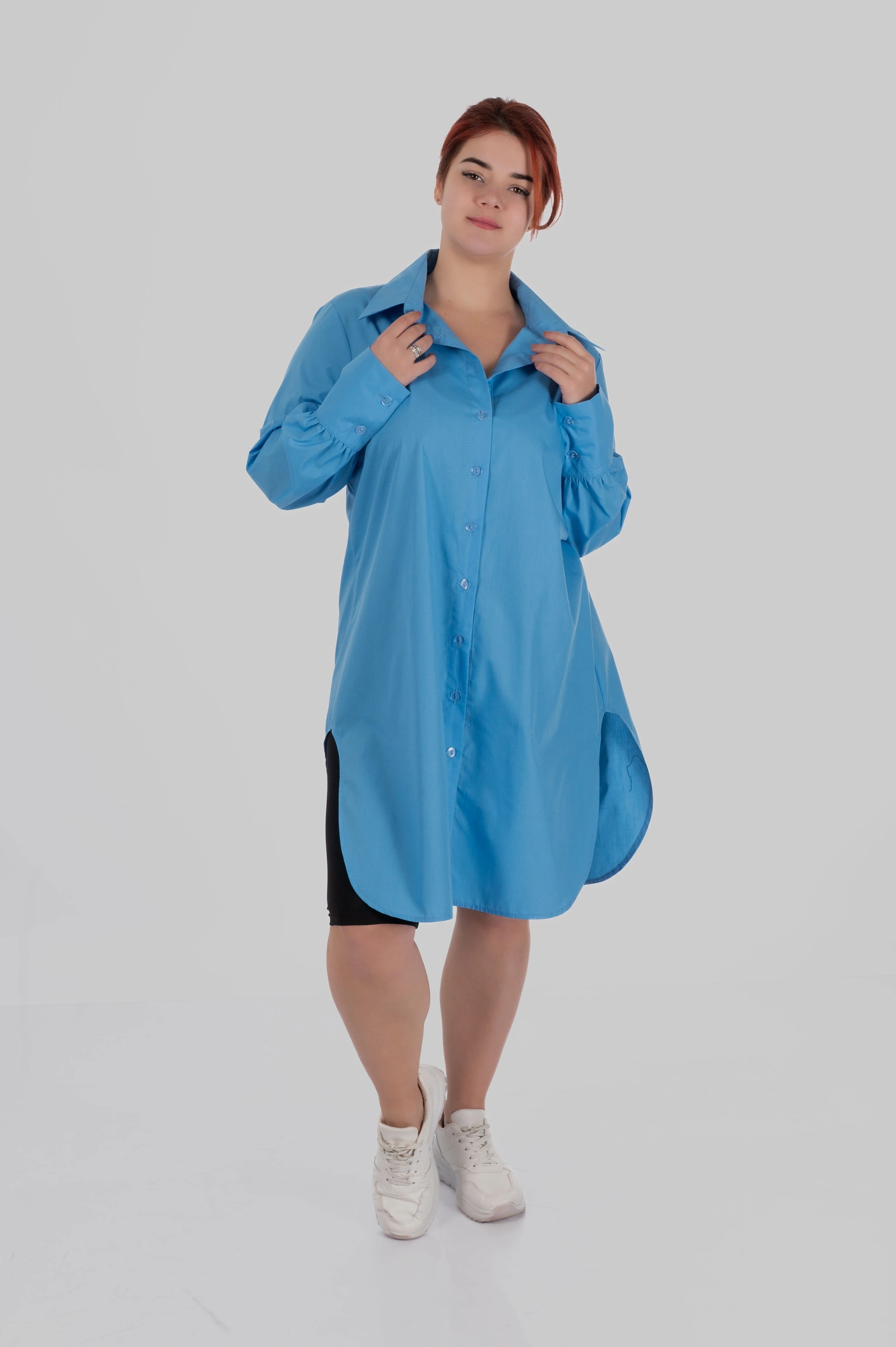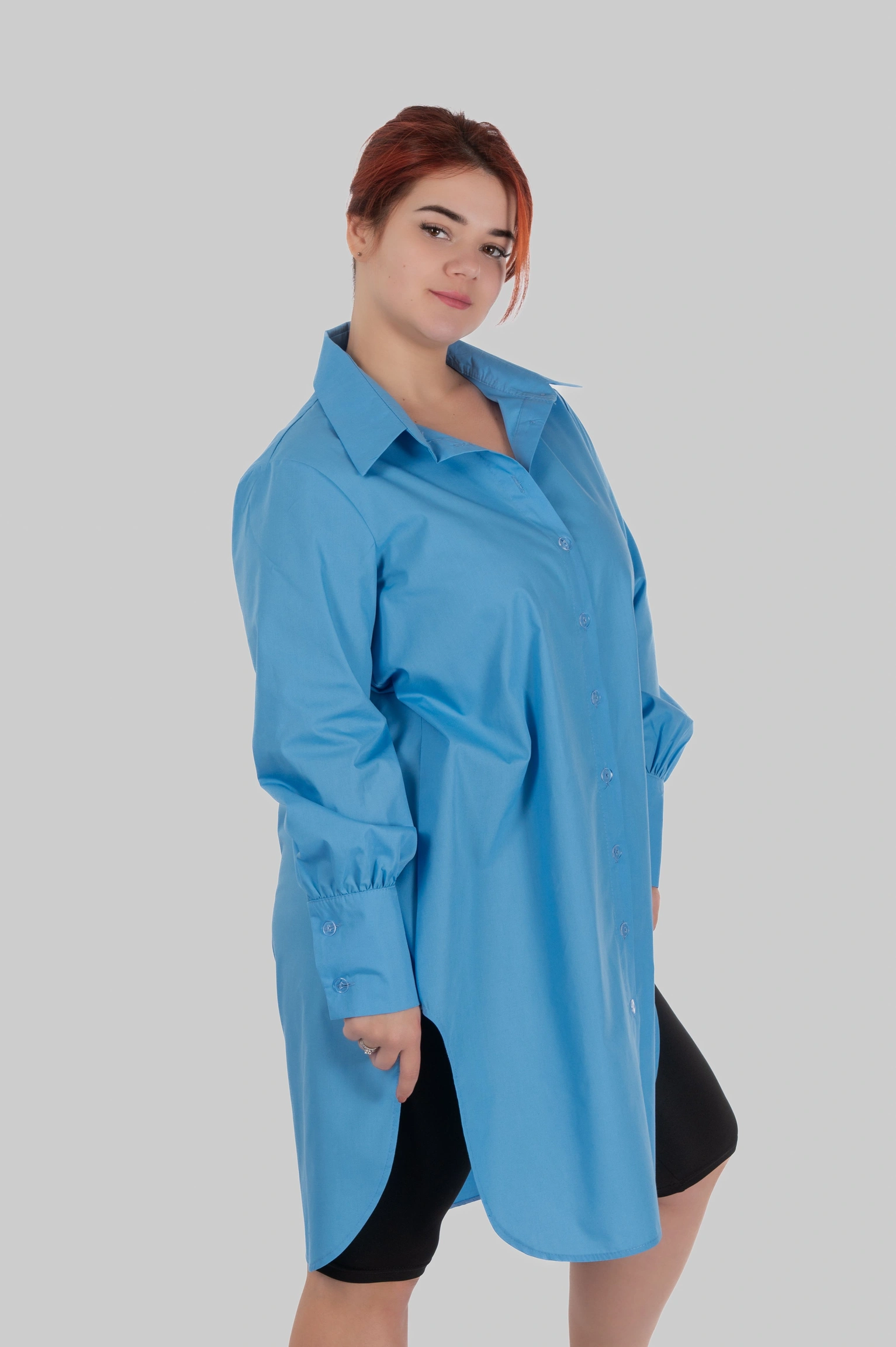 SOLA — подовжена сорочка довжини до коліна з глибокими боковими розрізами. Вона створена для стилізацій “в один рух”: вдягнула — і вже виглядаєш зібрано, сучасно й виразно.