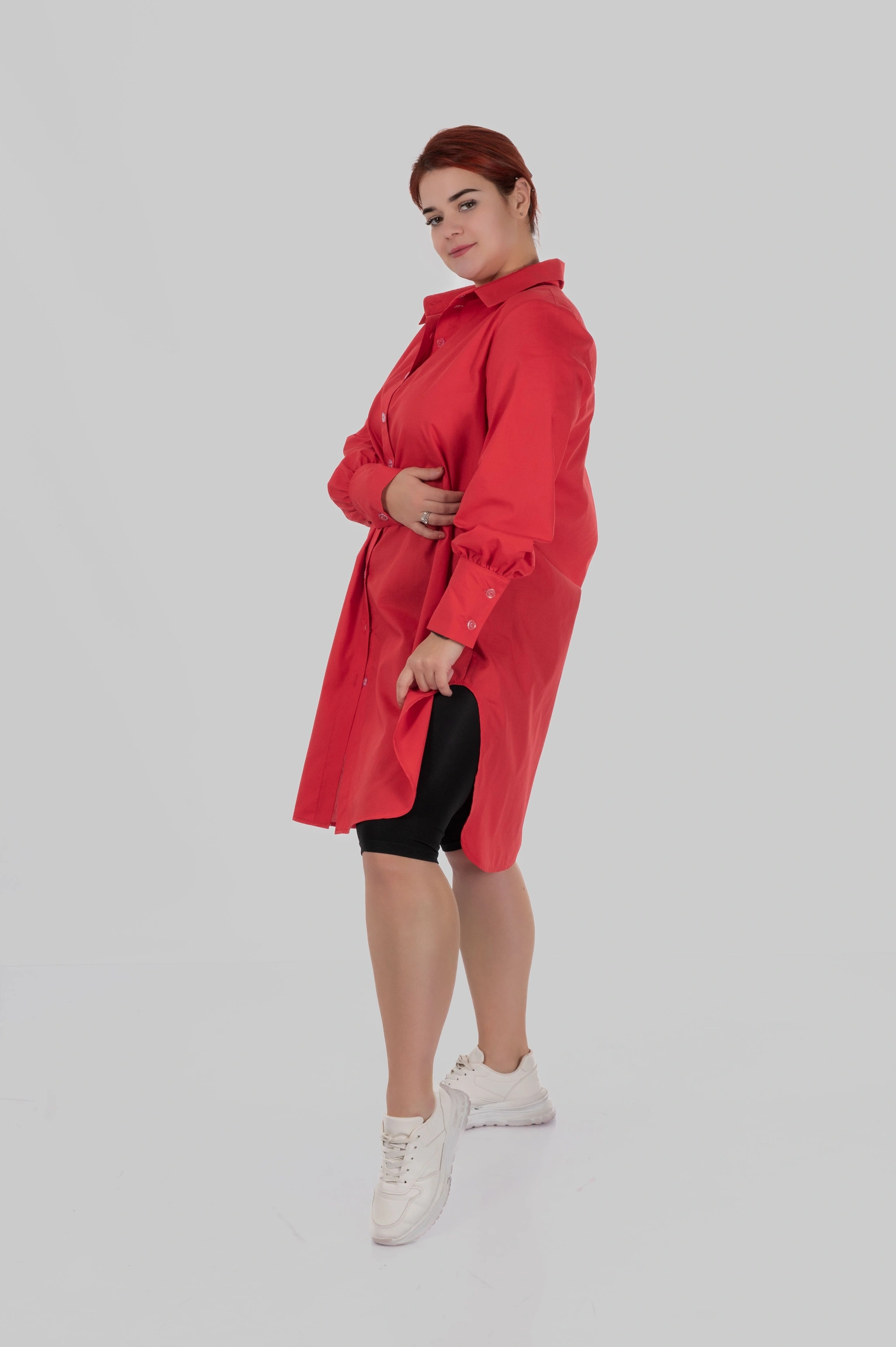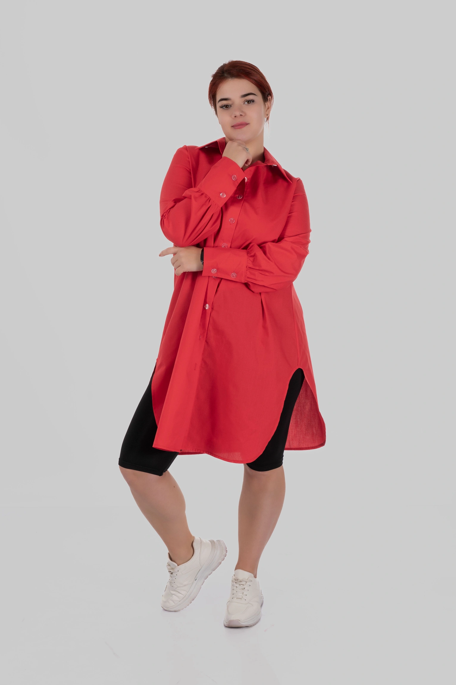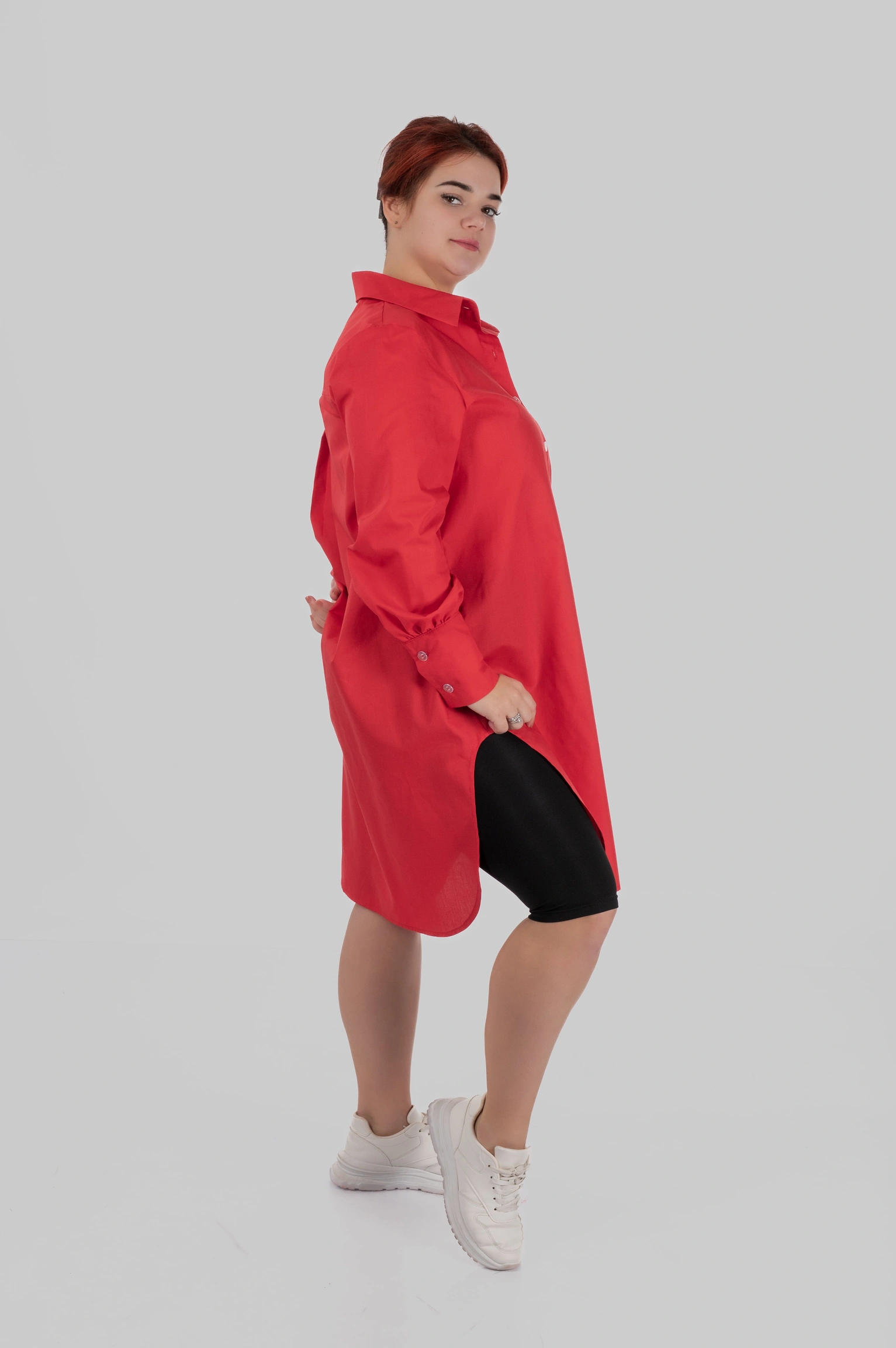 SOLA — подовжена сорочка довжини до коліна з глибокими боковими розрізами. Вона створена для стилізацій “в один рух”: вдягнула — і вже виглядаєш зібрано, сучасно й виразно.