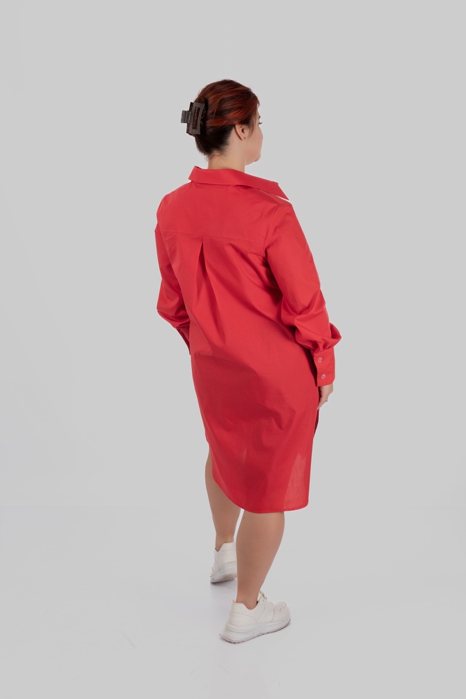 • Подовжена довжина до коліна — працює як база для образу “сорочка-спідниця”.