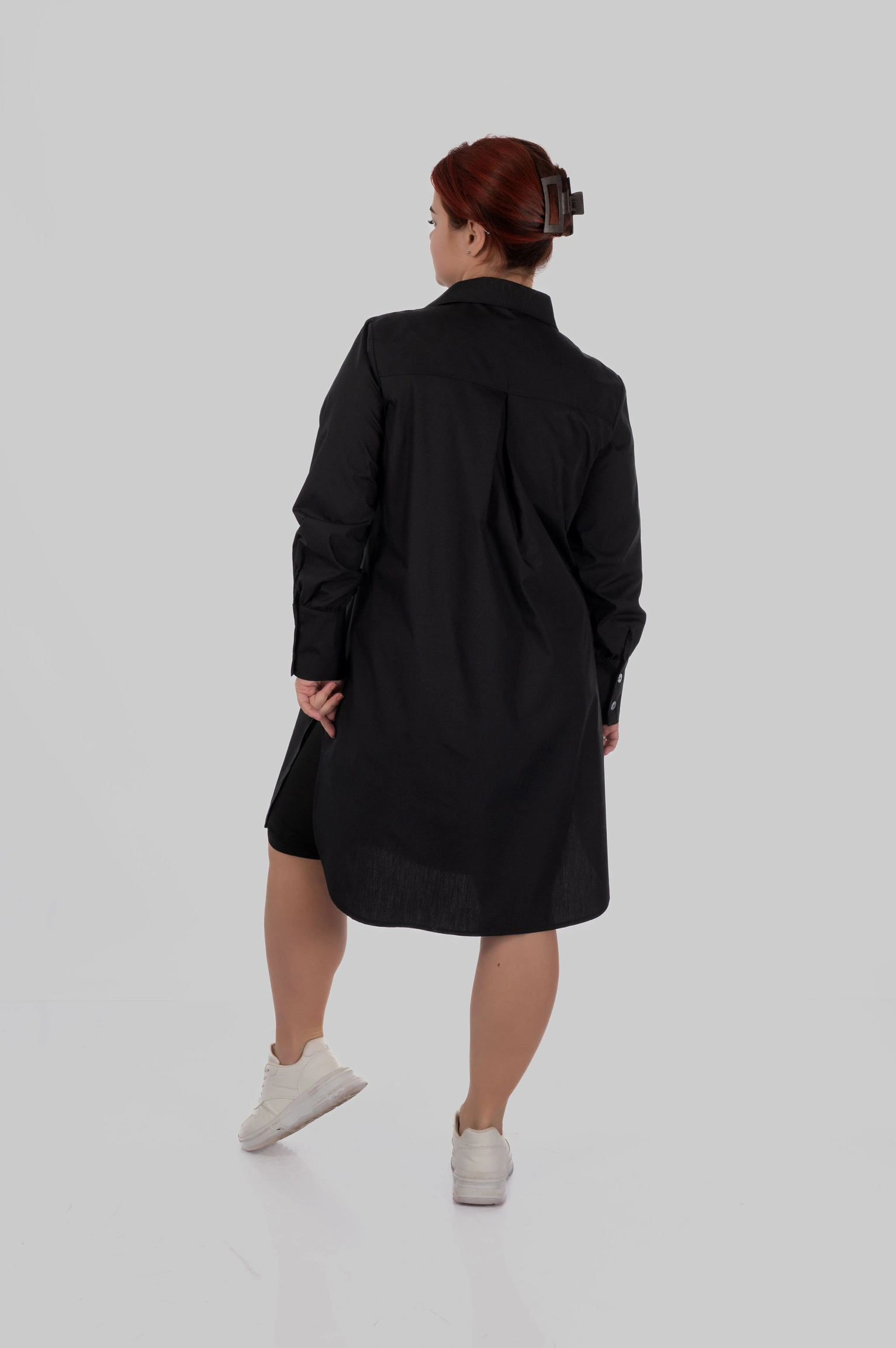 SOLA — подовжена сорочка довжини до коліна з глибокими боковими розрізами. Вона створена для стилізацій “в один рух”: вдягнула — і вже виглядаєш зібрано, сучасно й виразно.